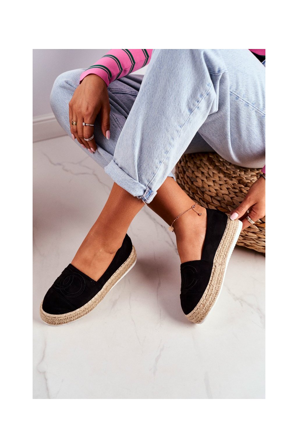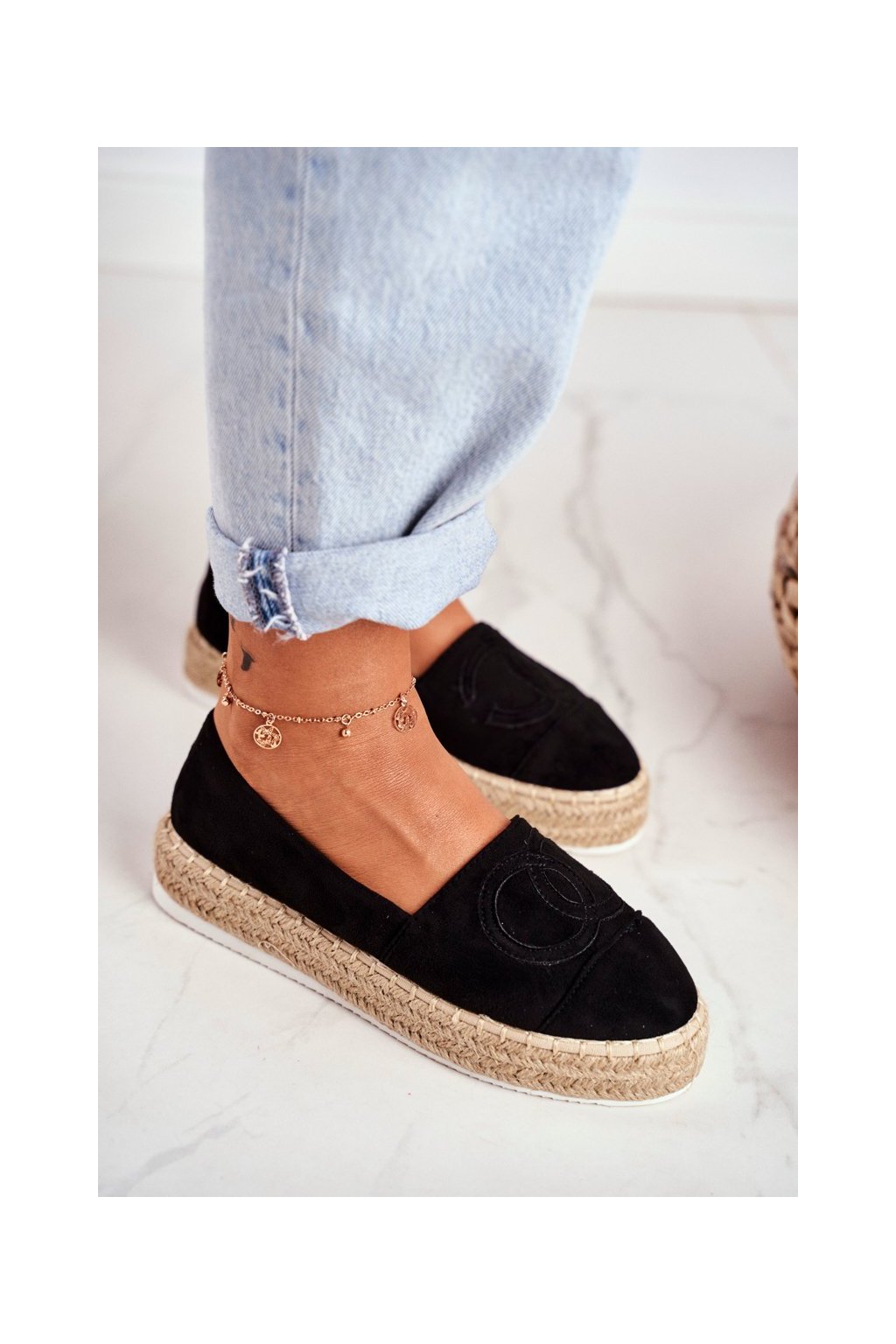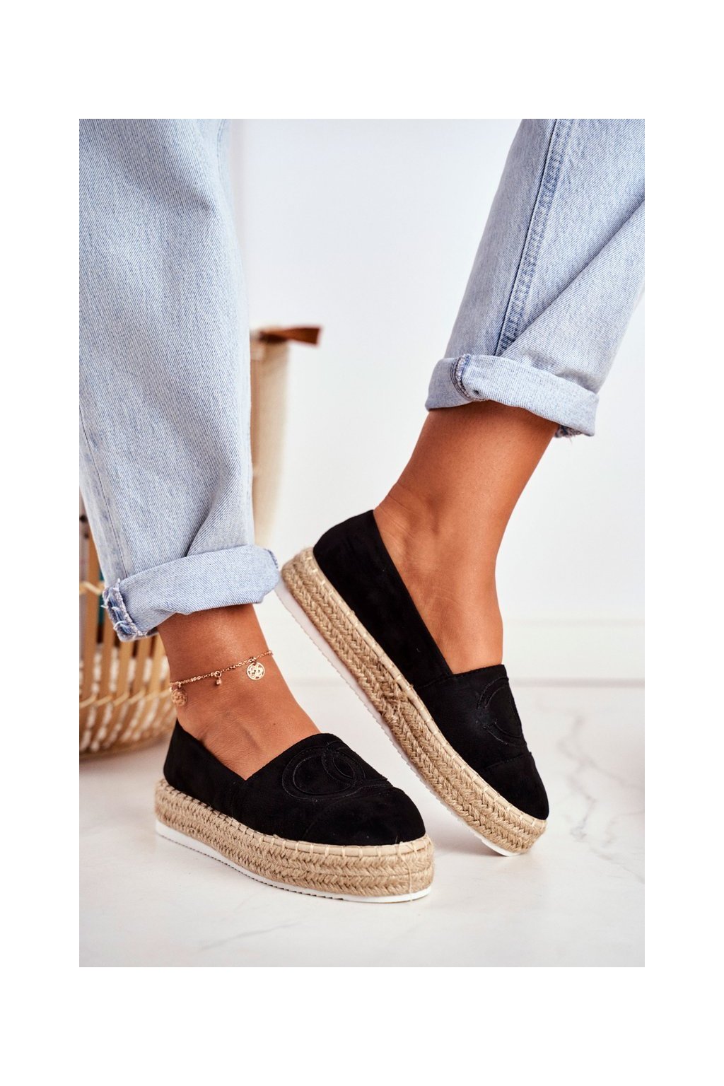 Čierne dámske espadrylky Febi NJSK T341P s ozdobnou silnou podrážkou