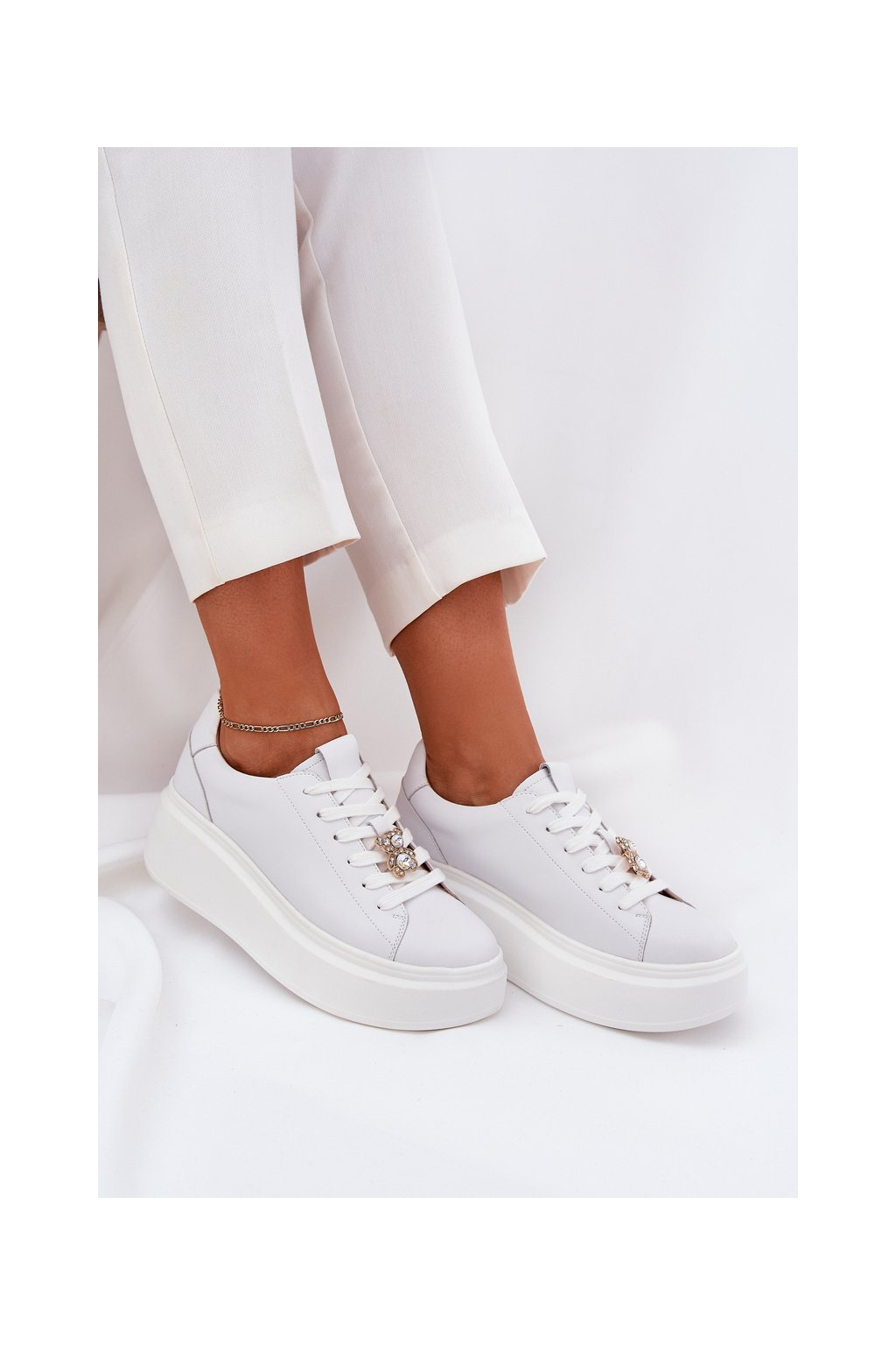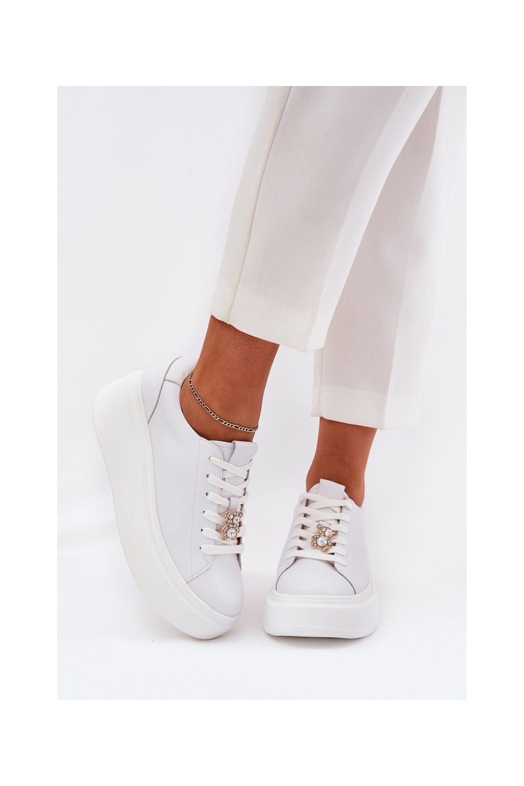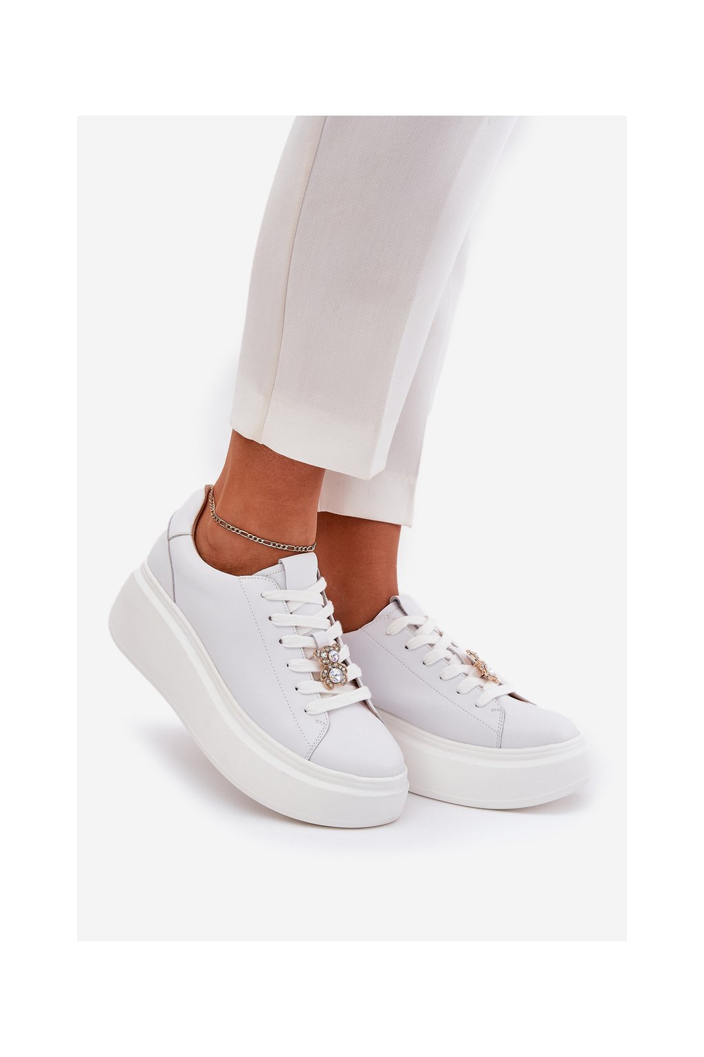 Dámske kožené tenisky na platforme Vinceza kód 39922 BIAŁY SKÓRA