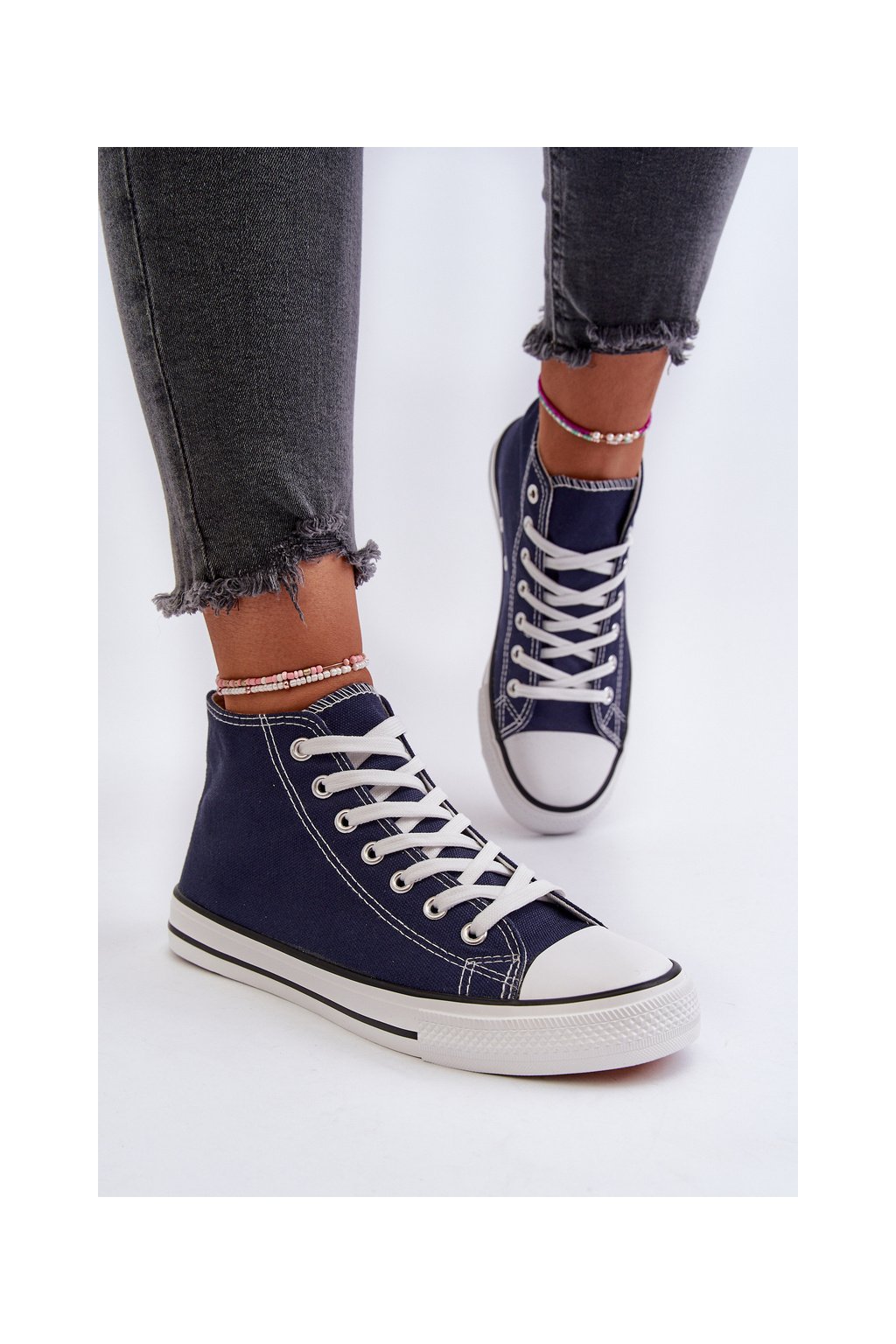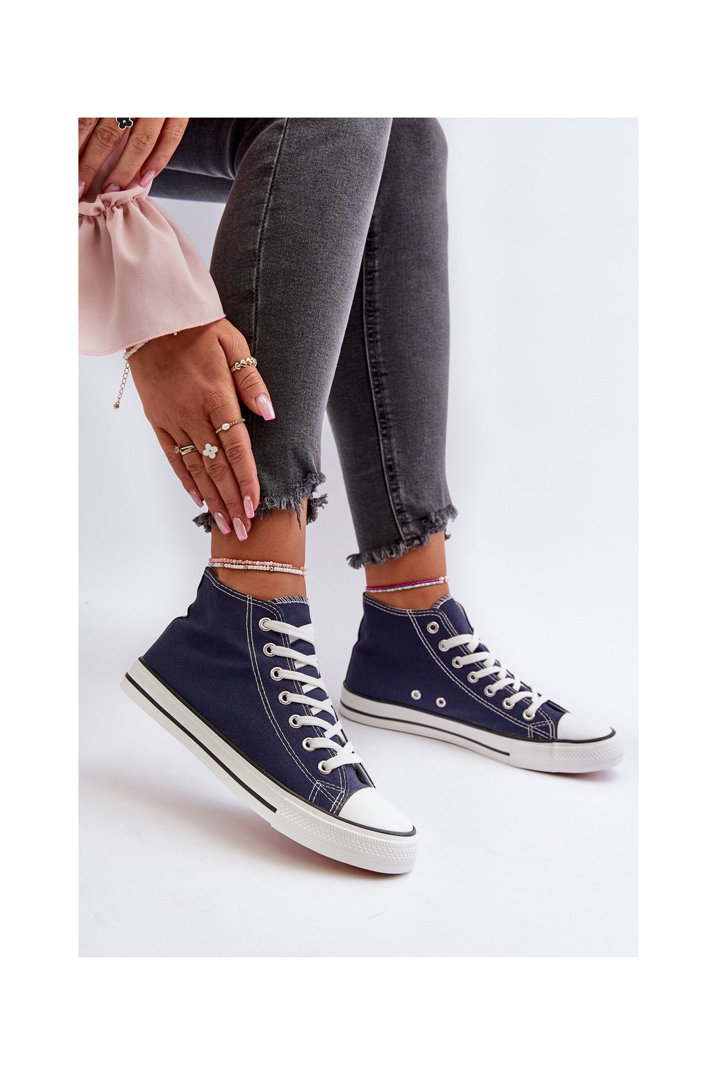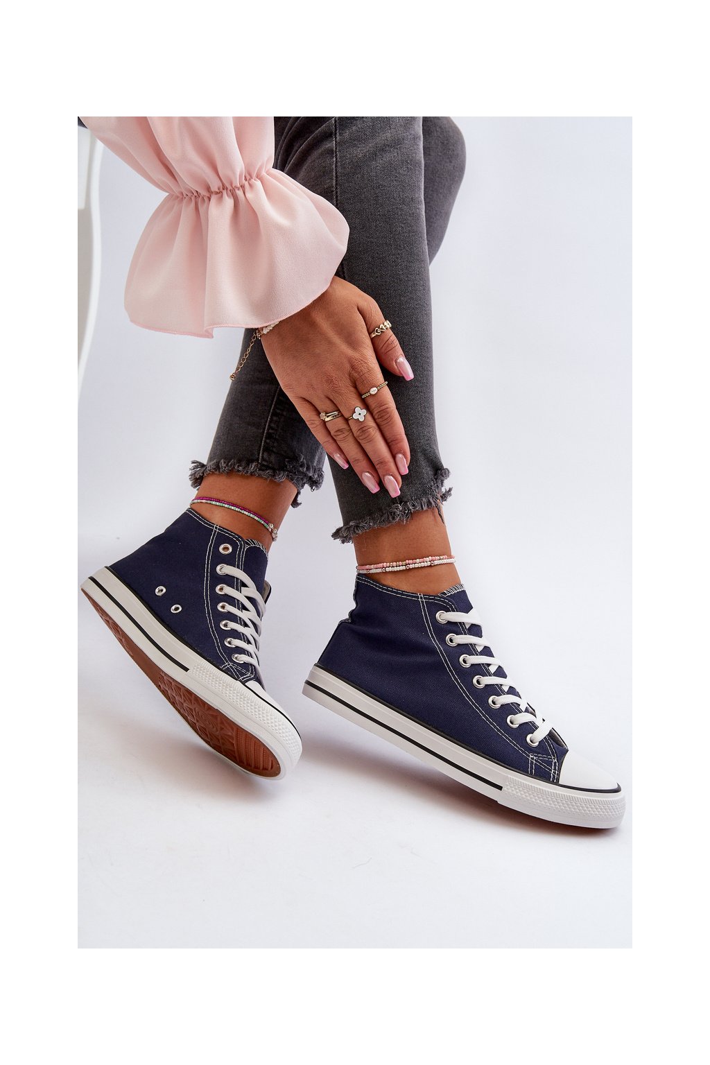 Dámske modré textilné tenisky na rovnej podrážke B-807 NAVY
