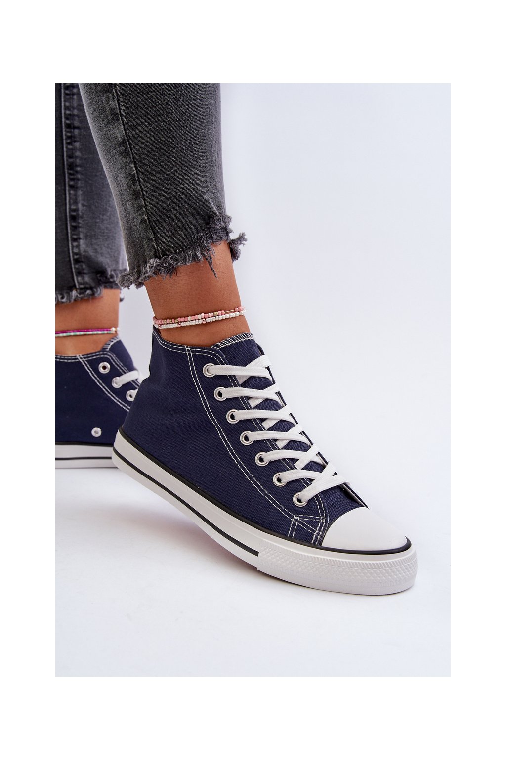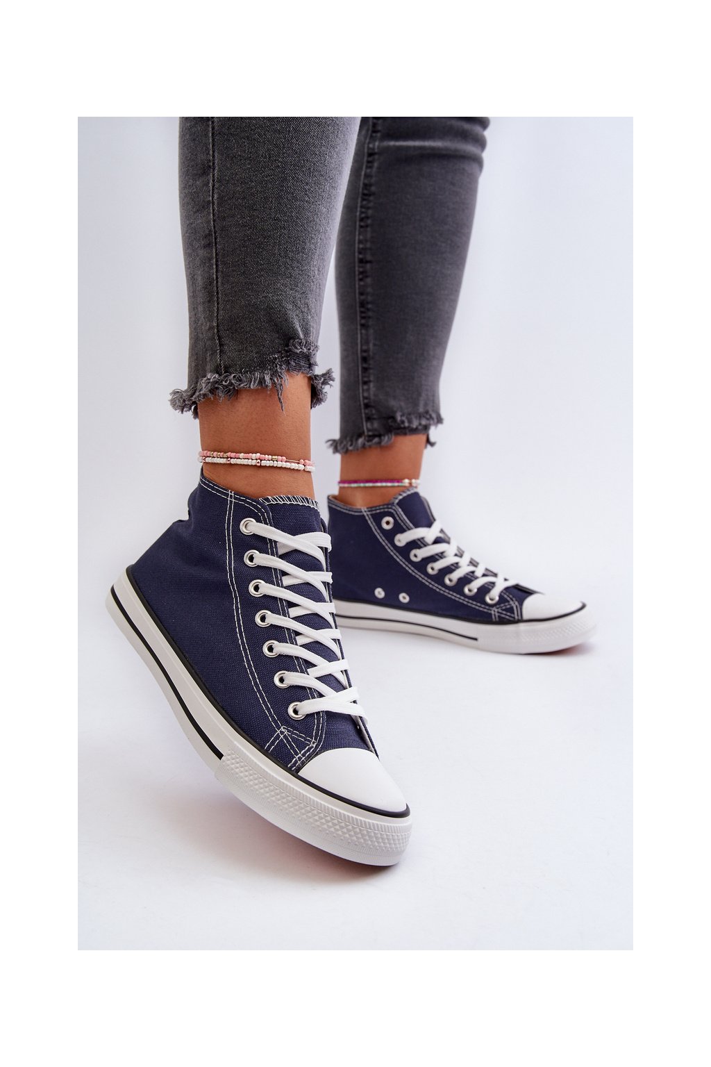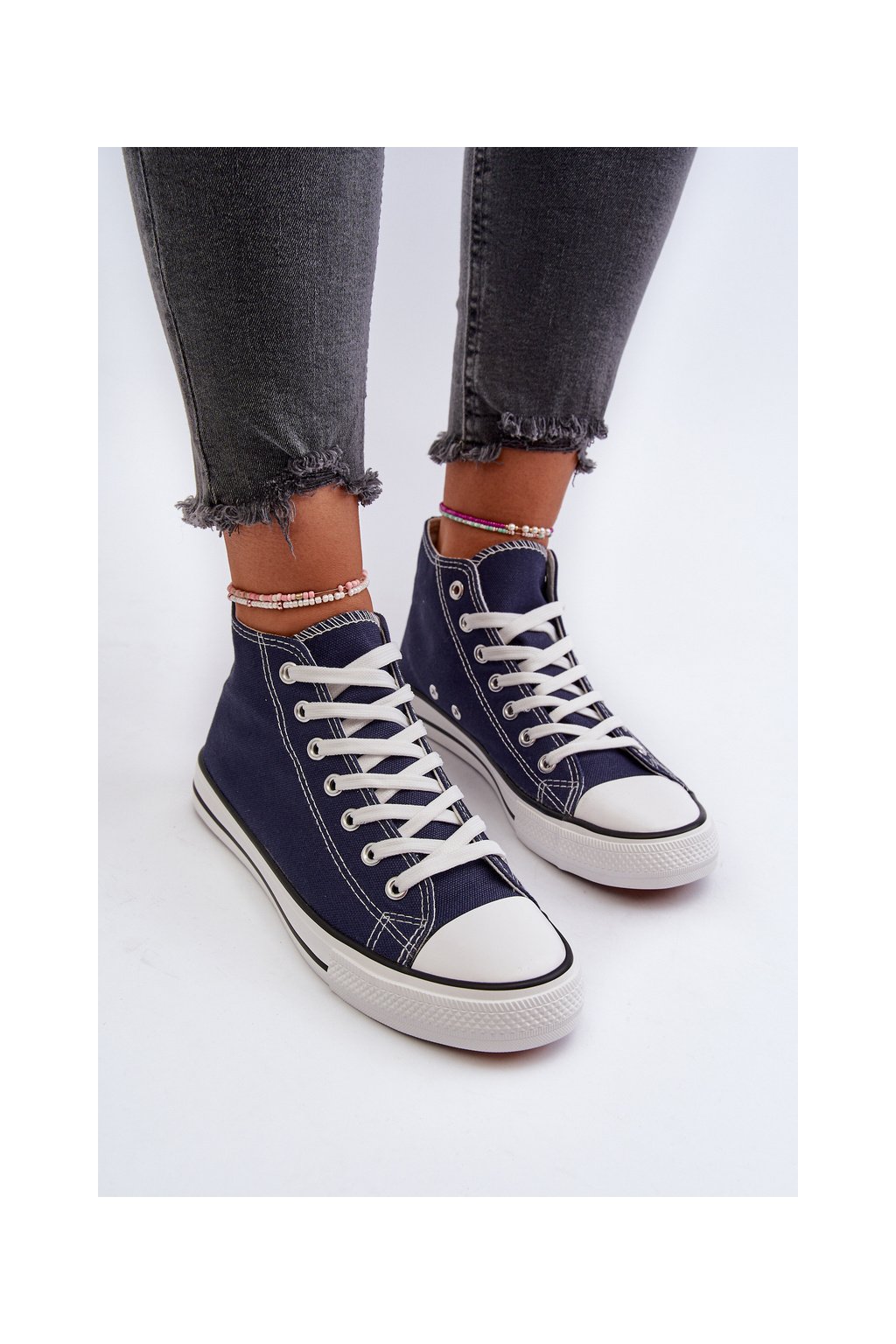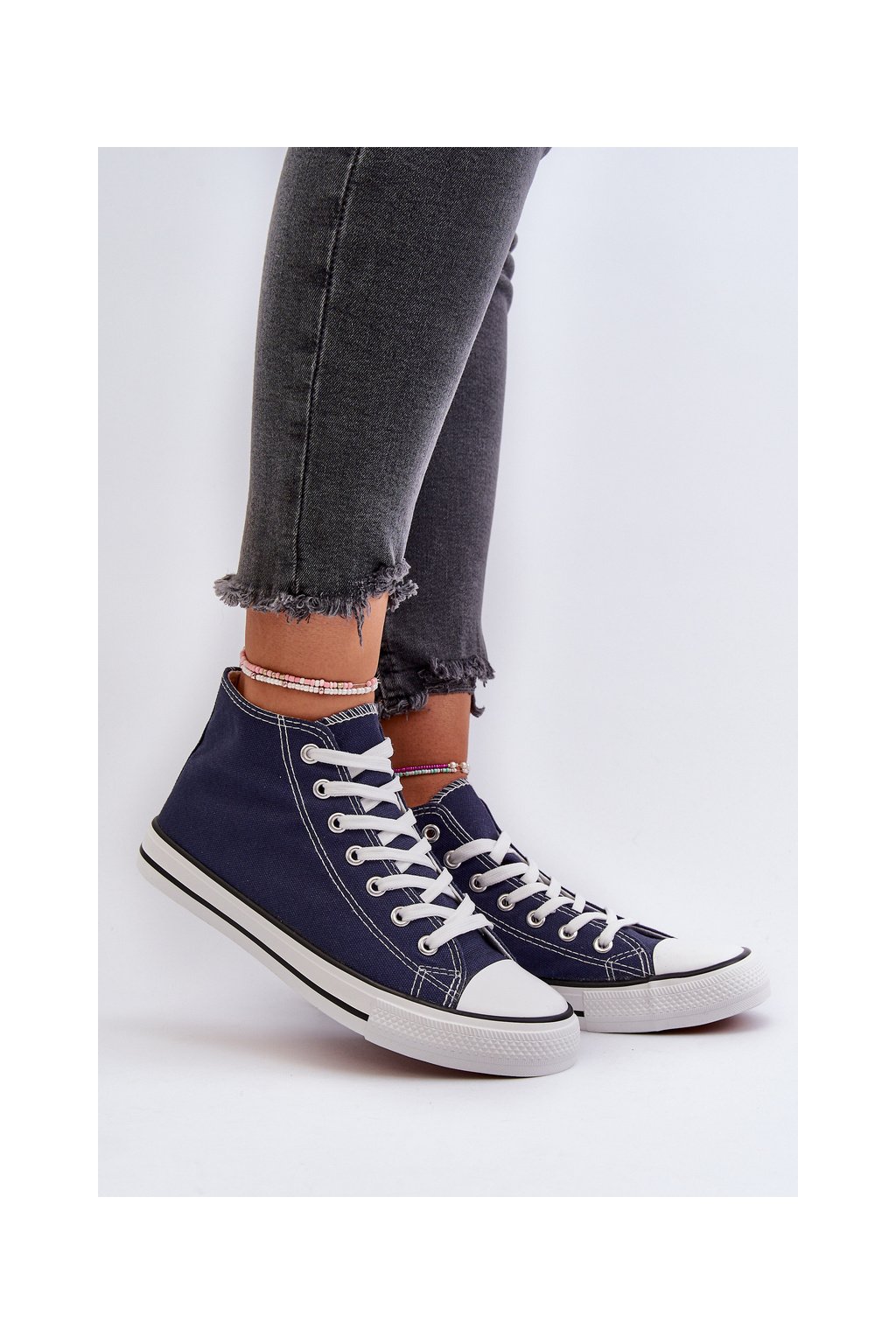 Dámske modré textilné tenisky na rovnej podrážke B-807 NAVY