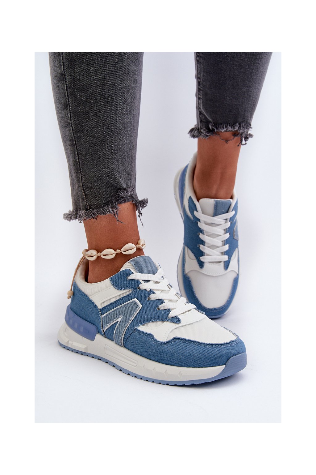 Modré dámske tenisky z eko kože na plošej podrážke, kód produktu A88-179 BLUE