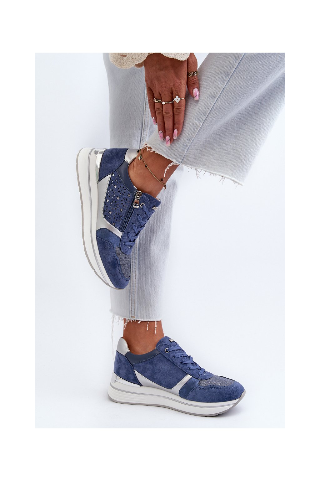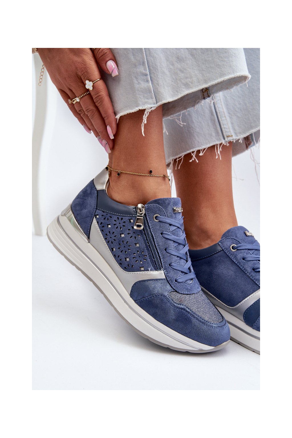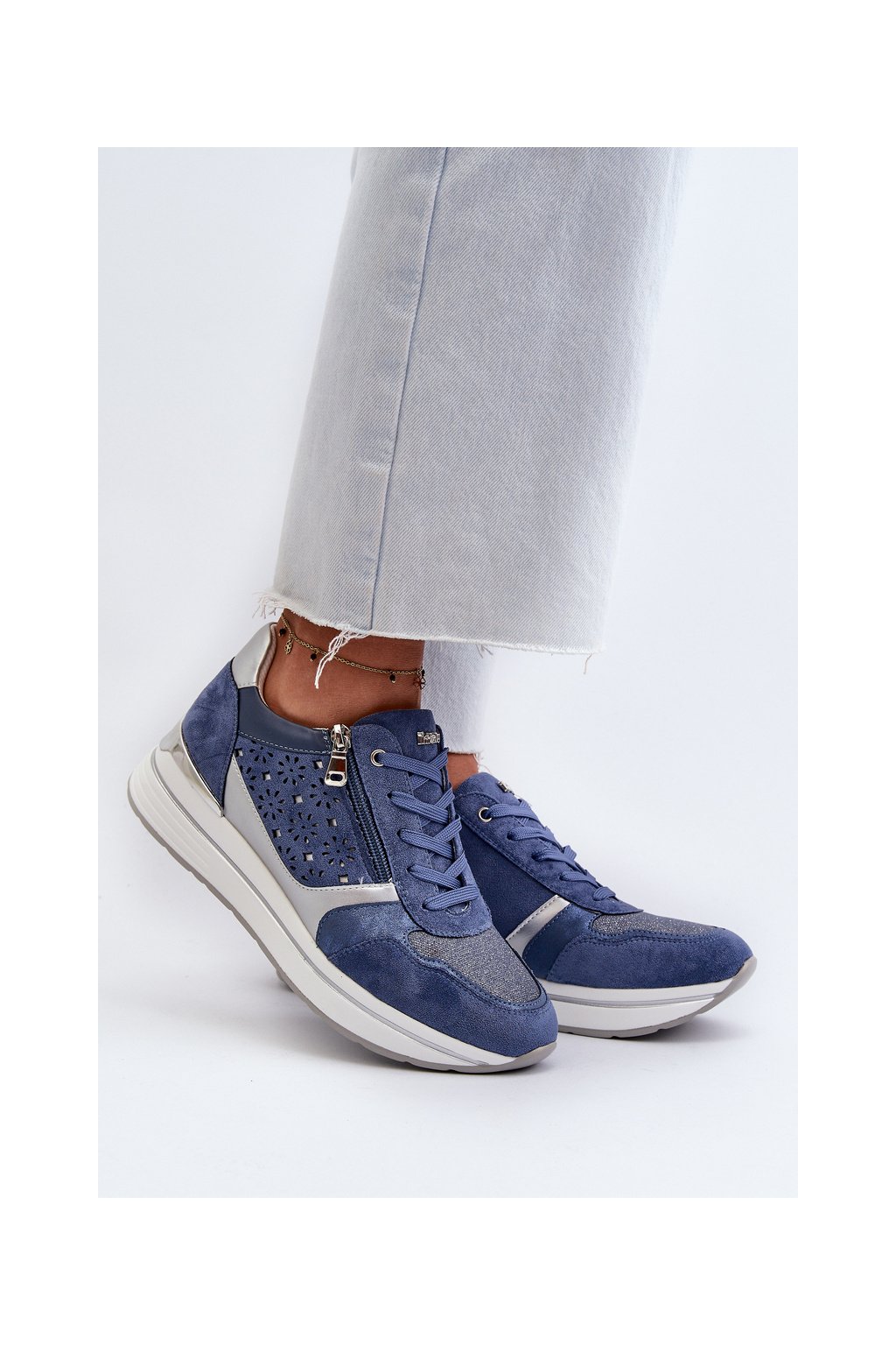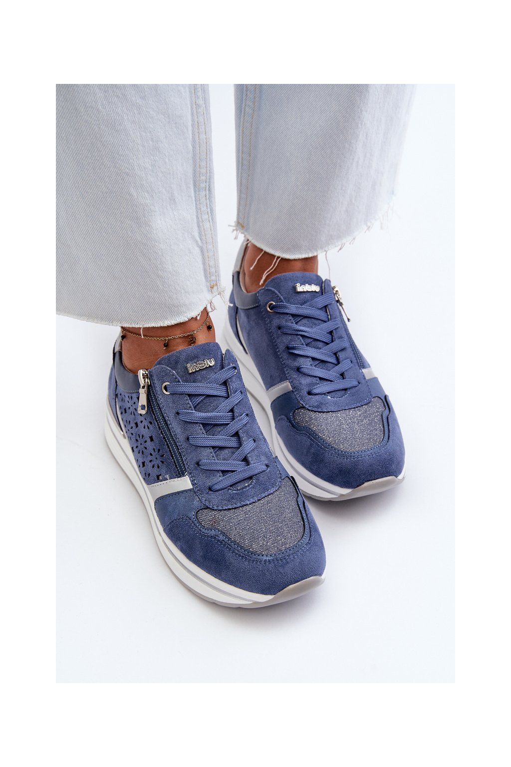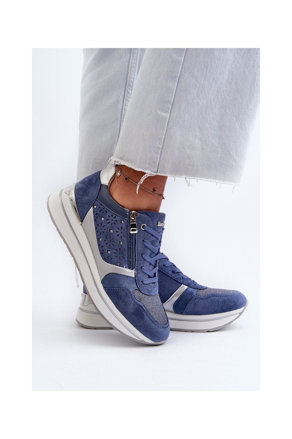 Dámske tenisky na platforme s ažurovým vzorem a flitrem inblu in000372 modré / IN000372 BLUE