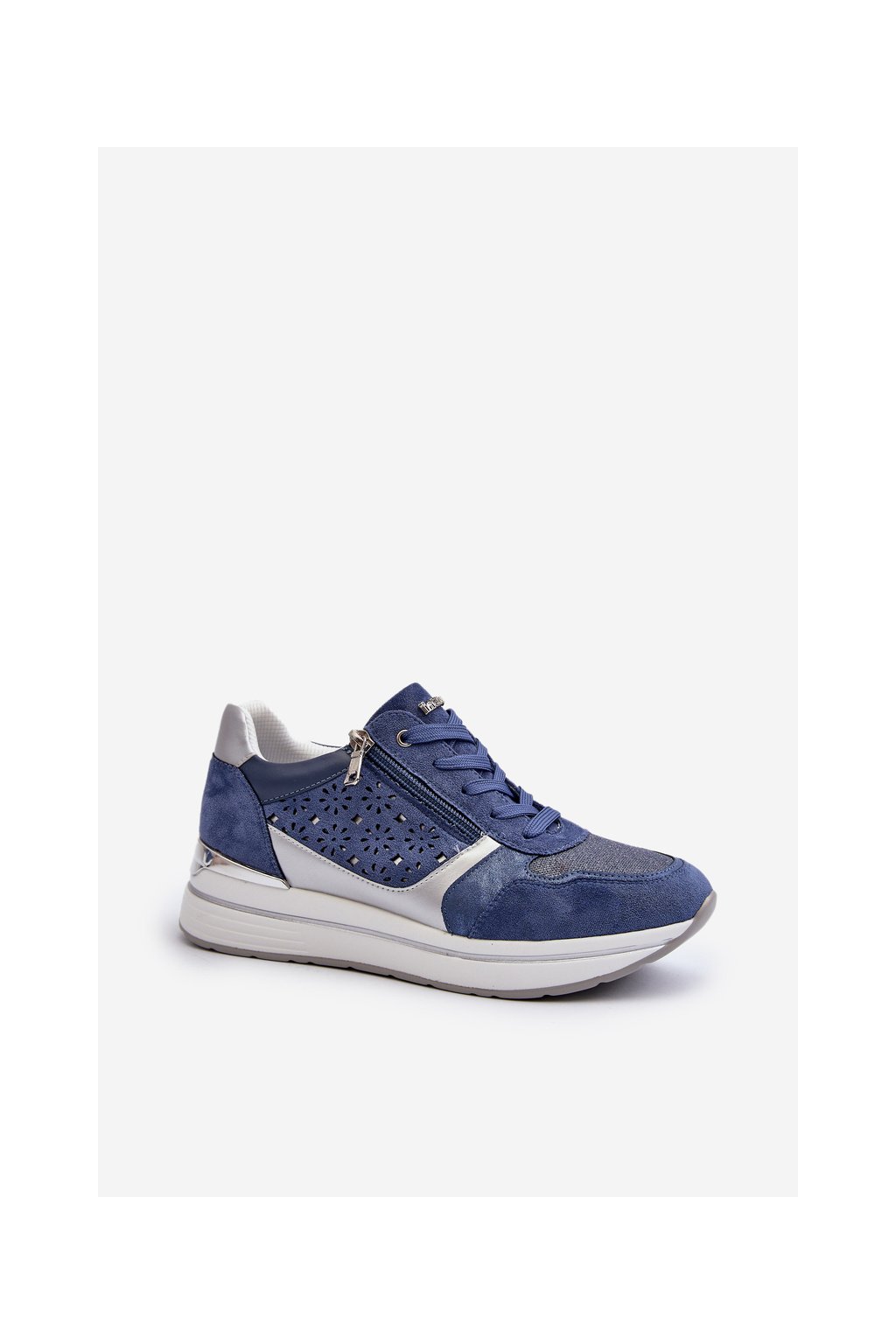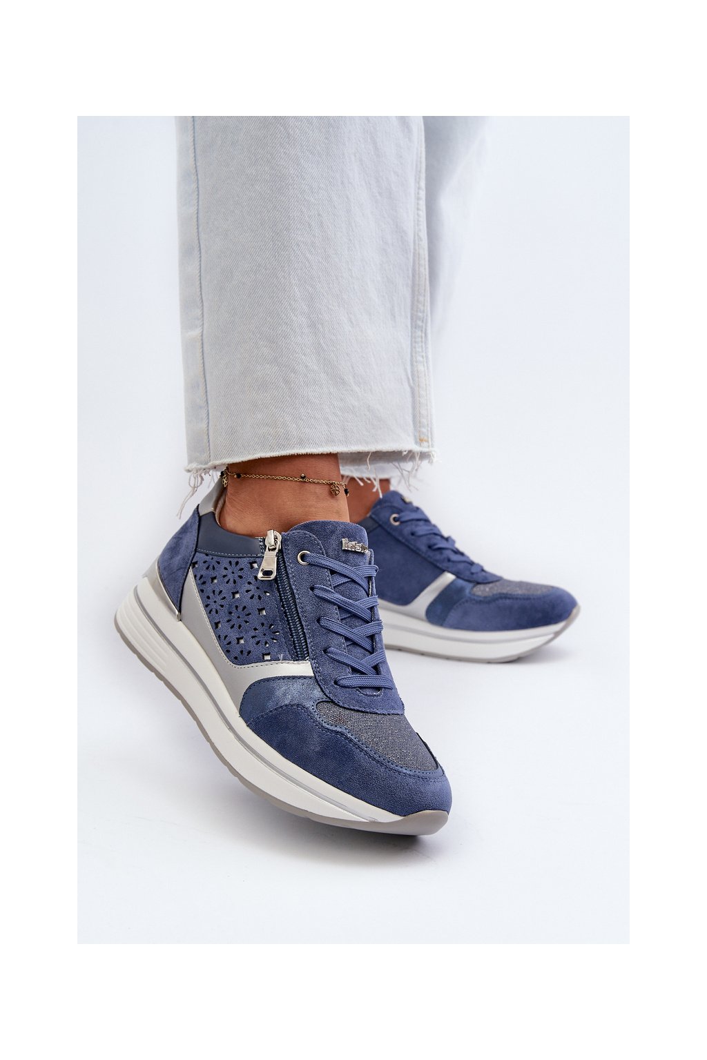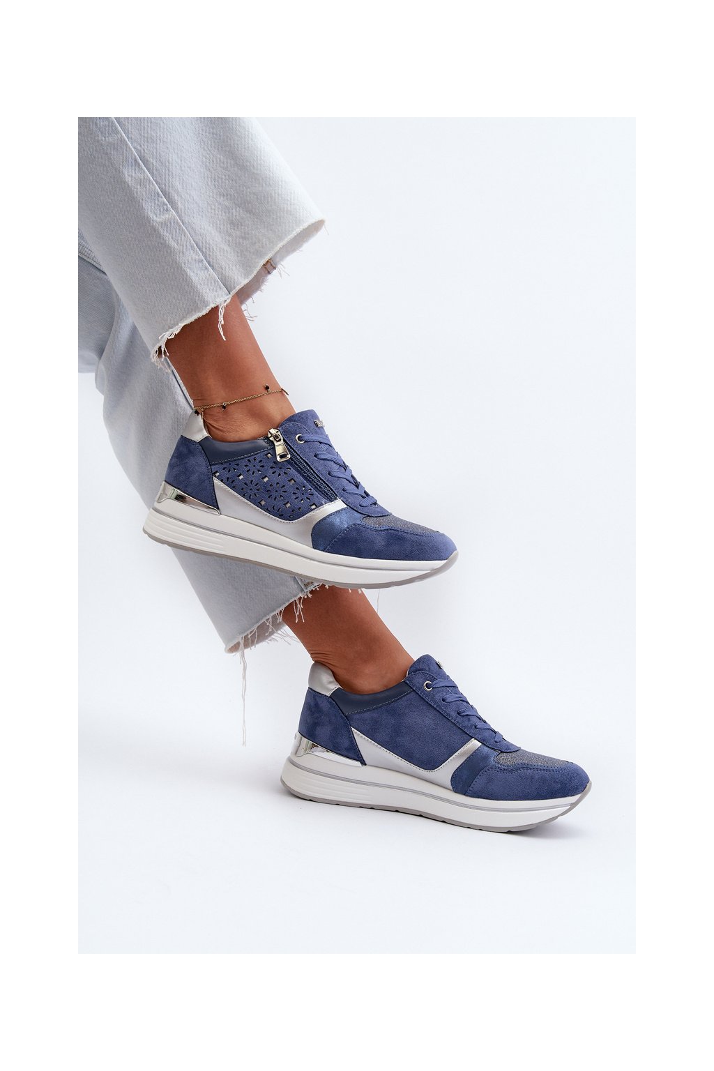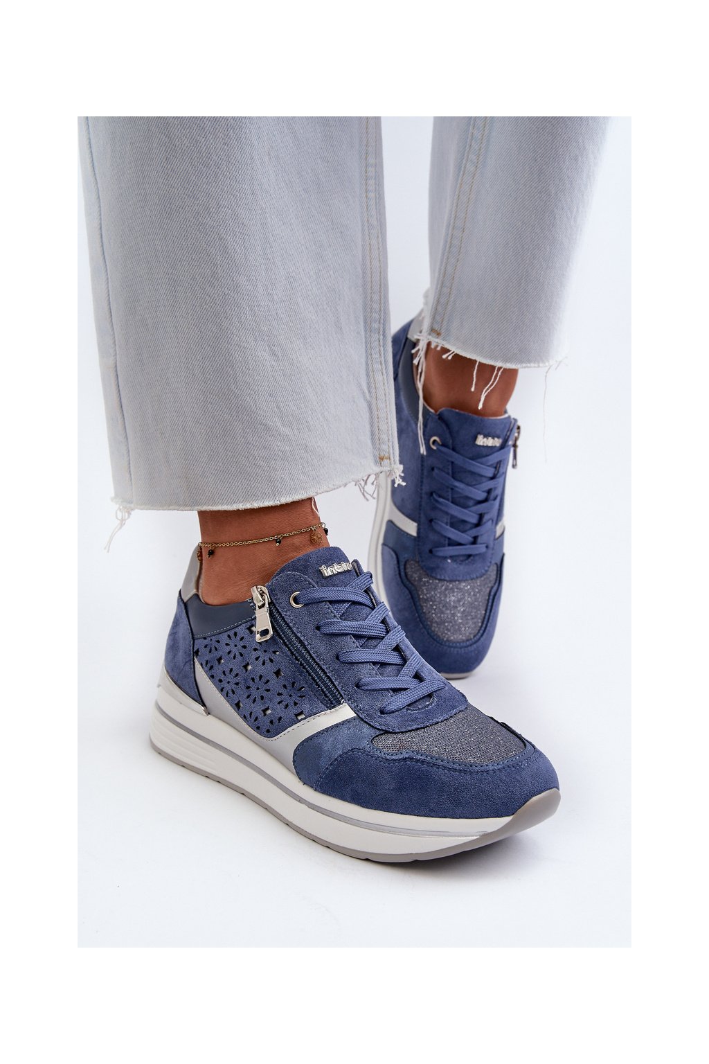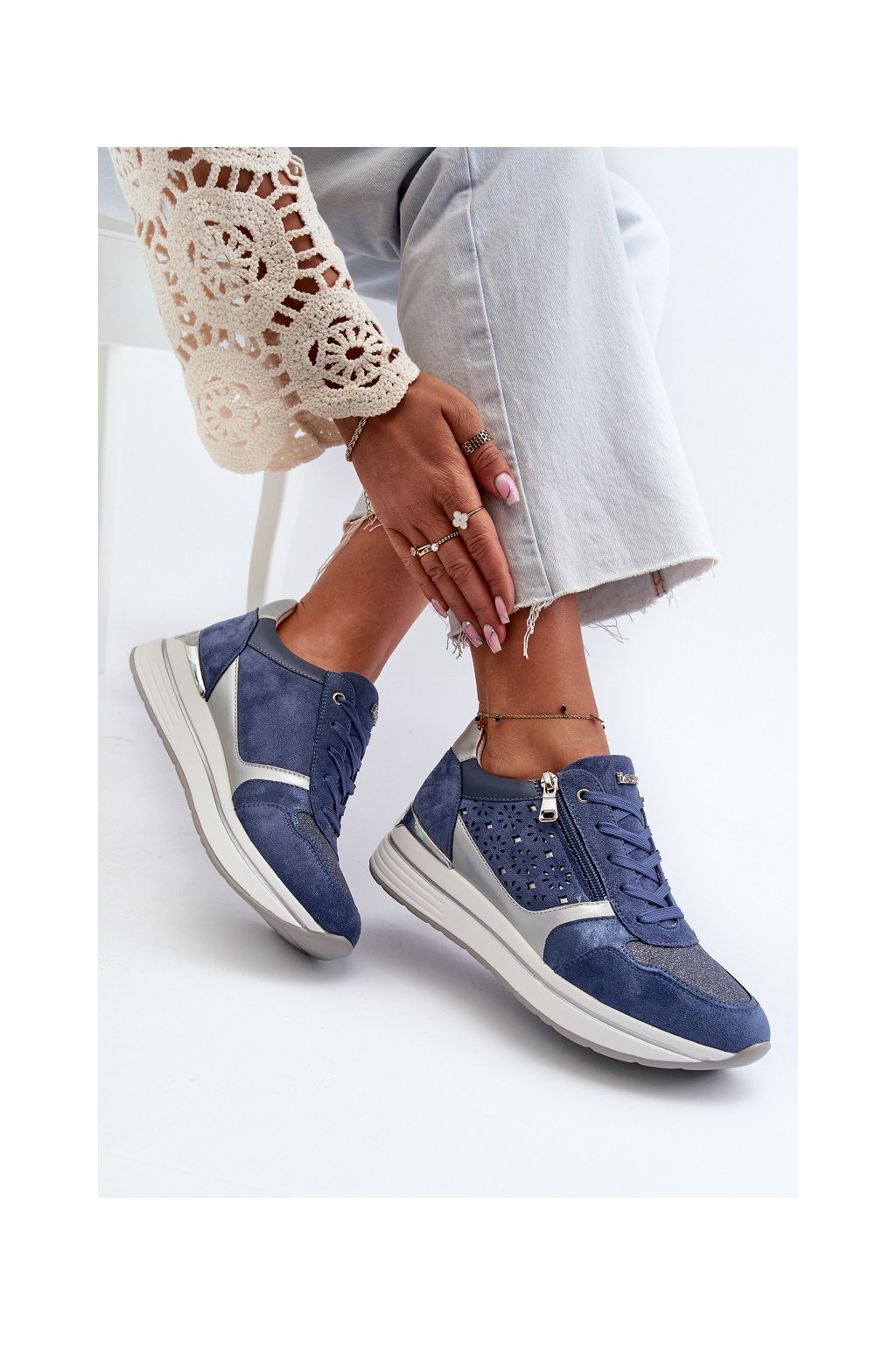 Dámske tenisky na platforme s ažurovým vzorem a flitrem inblu in000372 modré / IN000372 BLUE