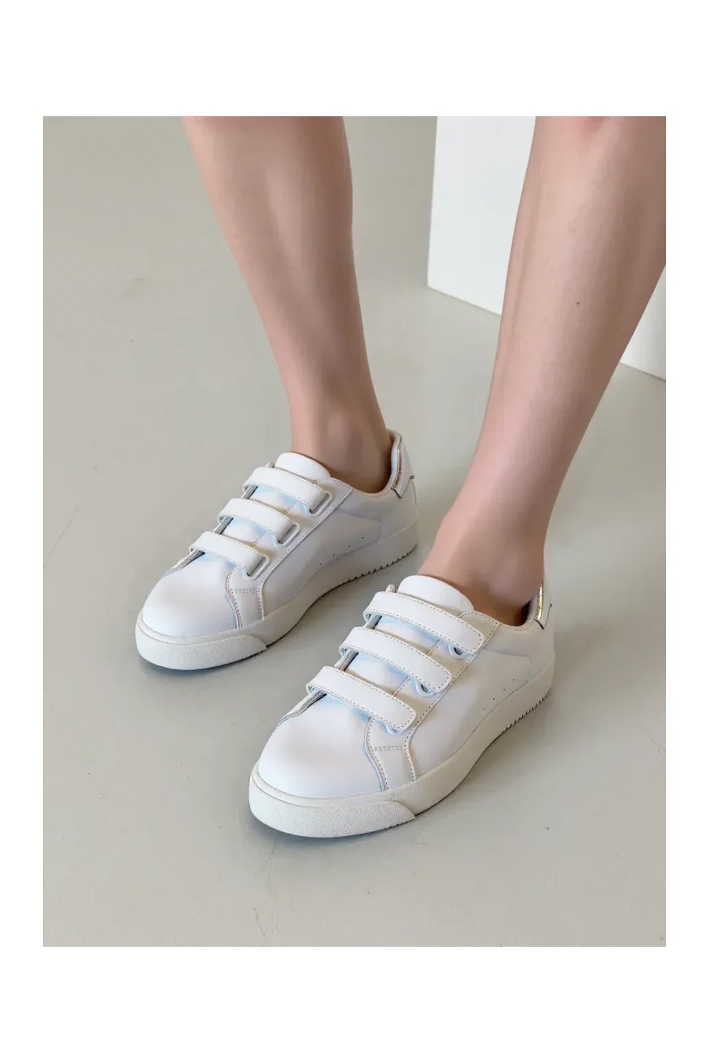 Sivé detaily na päte dodávajú jedinečný nádych, zatiaľ čo tri pásiky na suchý zips zabezpečujú pohodlné nosenie. Sú vyrobené z vysokokvalitných materiálov a zaručujú pohodlné každodenné nosenie. Jednoduchá biela silueta sa hodí k akejkoľvek štylizácii - od ležérnej až po športovú.