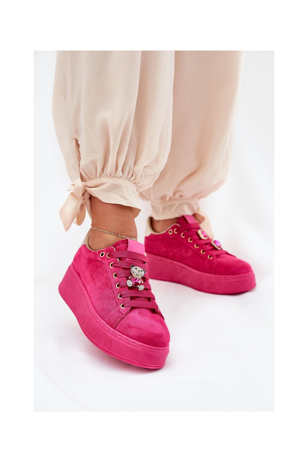 Ružové dámske semišové tenisky na platforme s eko koženou podšívkou, kód produktu C3005 PEACH RED