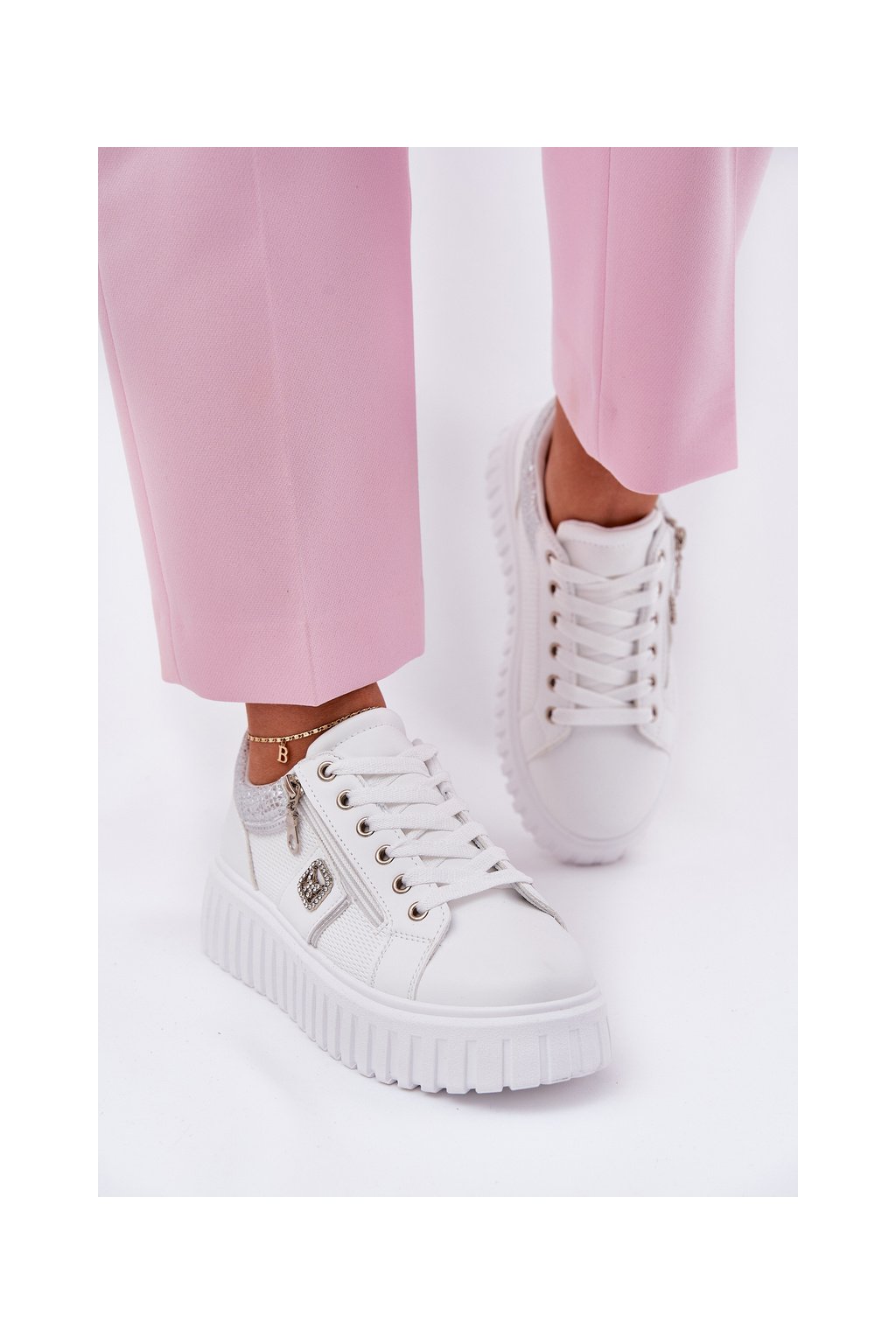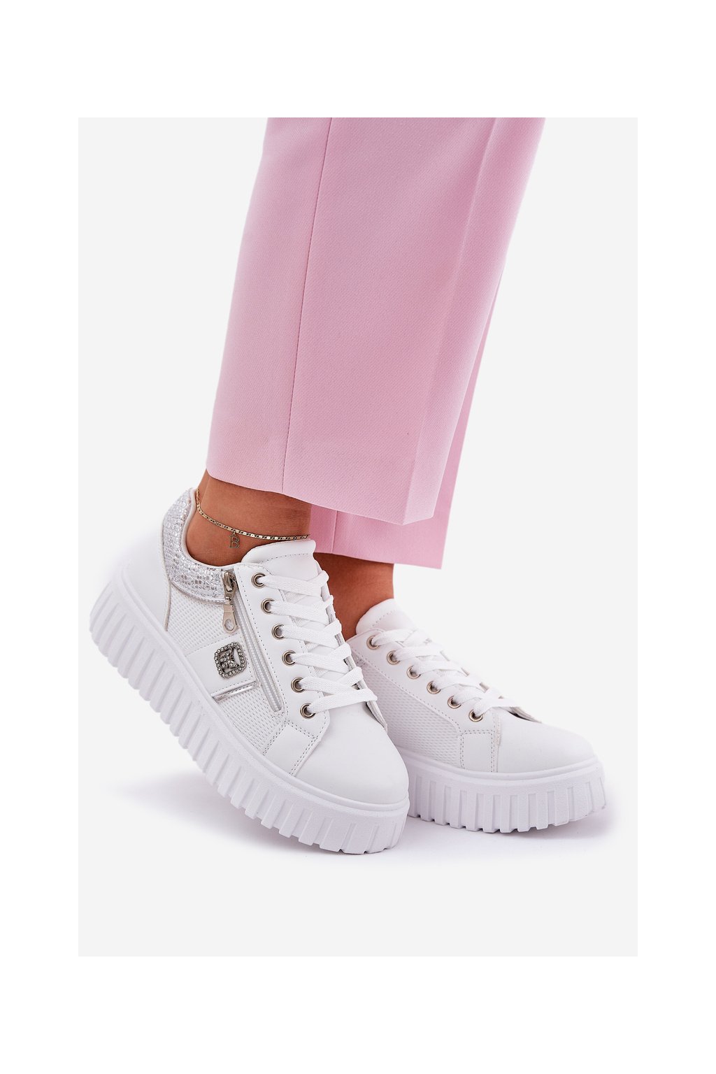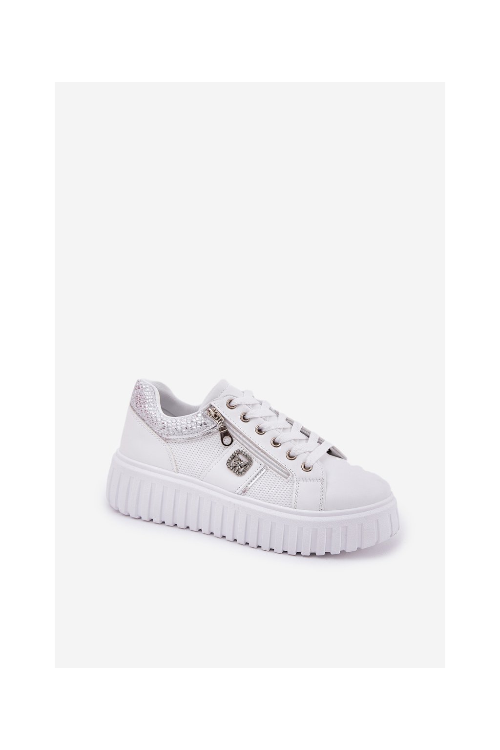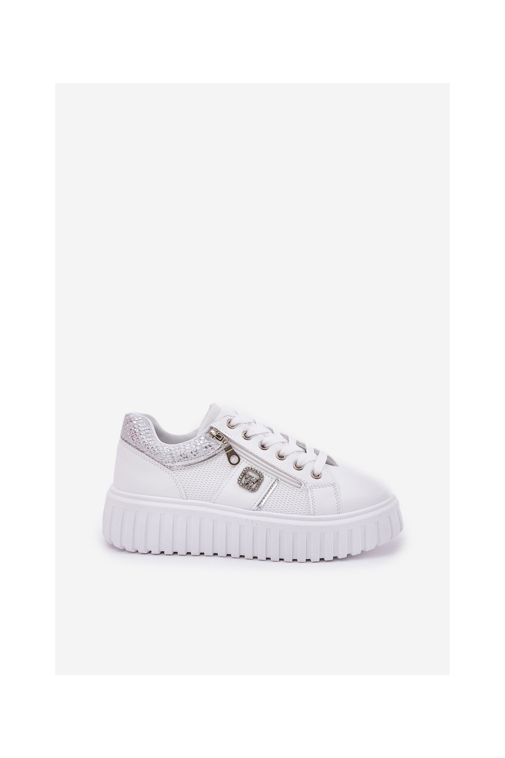 Dámske tenisky z ekokože na plnej platforme biele, GLA1111 WHITE