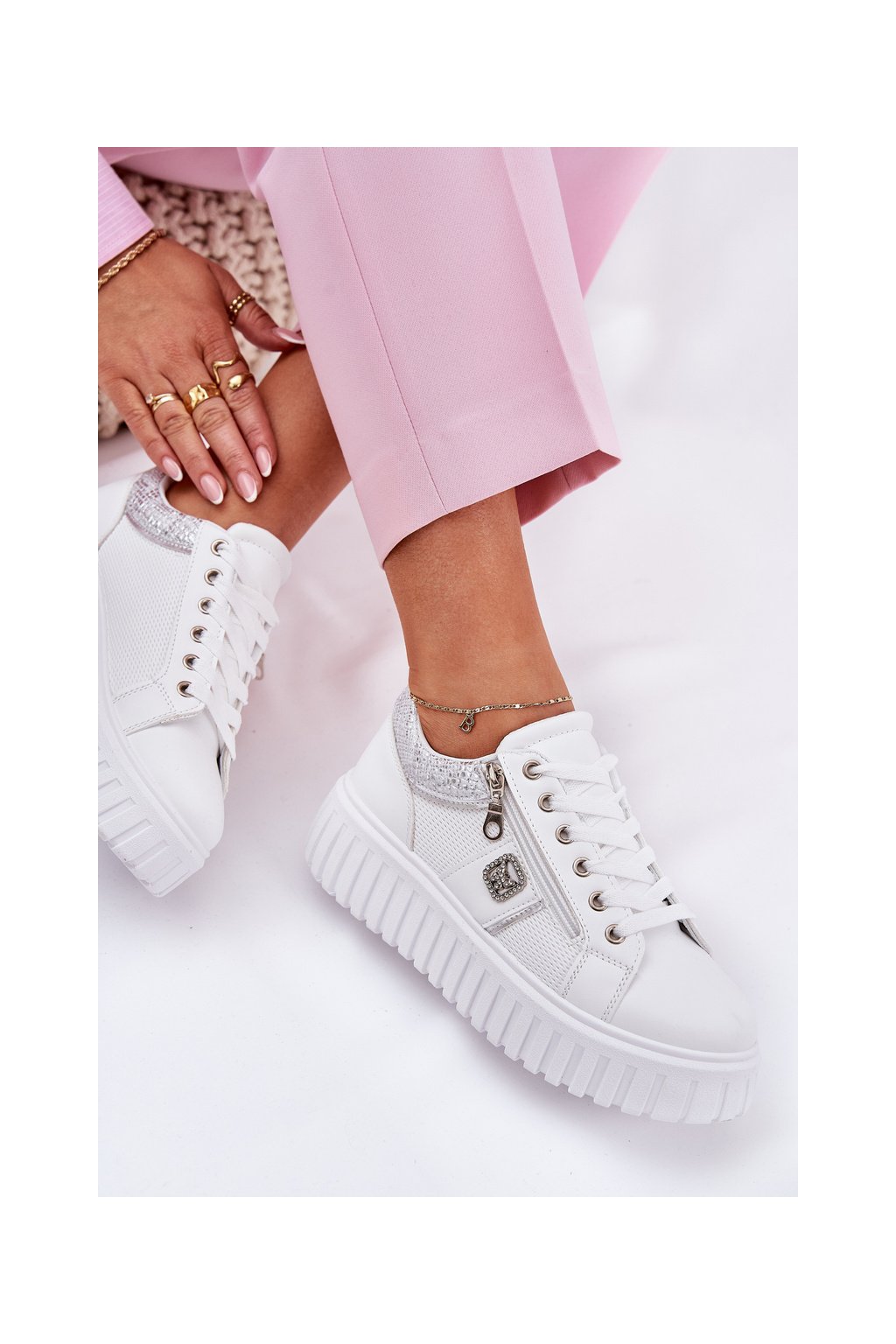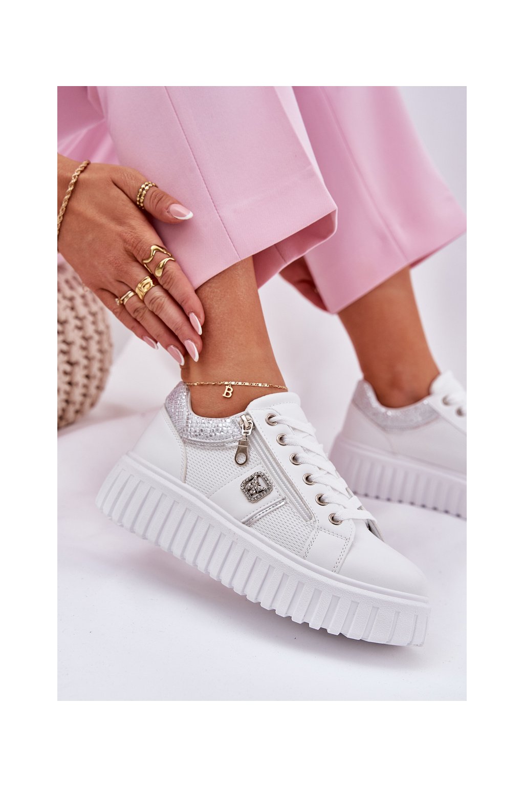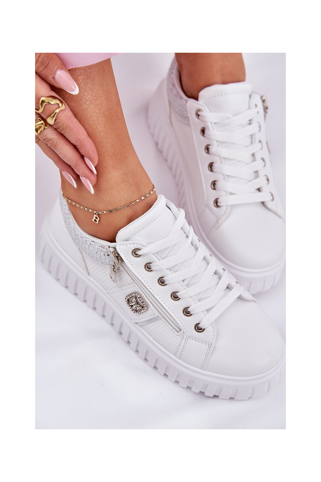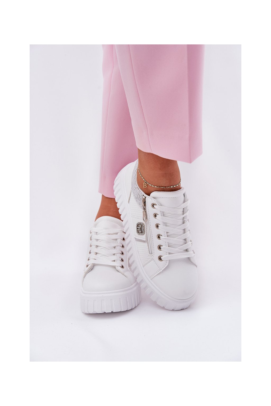 Dámske tenisky z ekokože na plnej platforme biele, GLA1111 WHITE