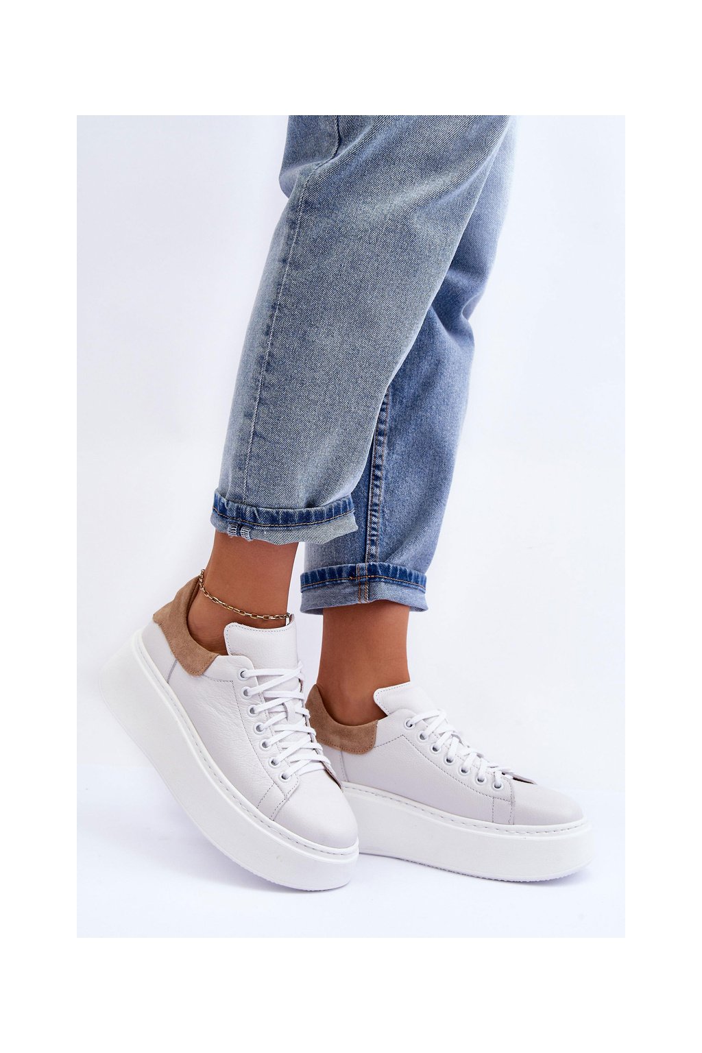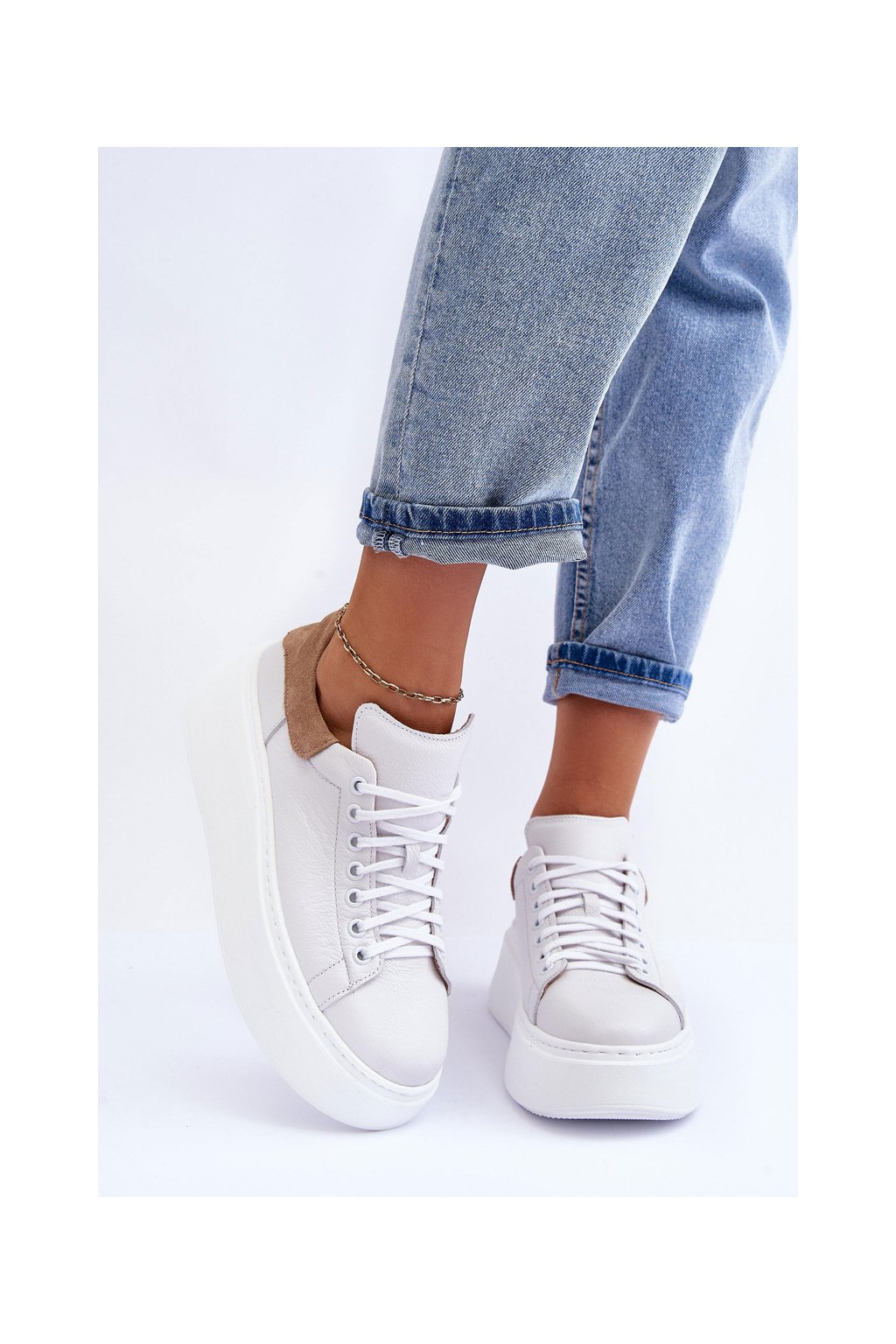Dámské sportovní kožené boty na platformě Bílá Lemar 10150
