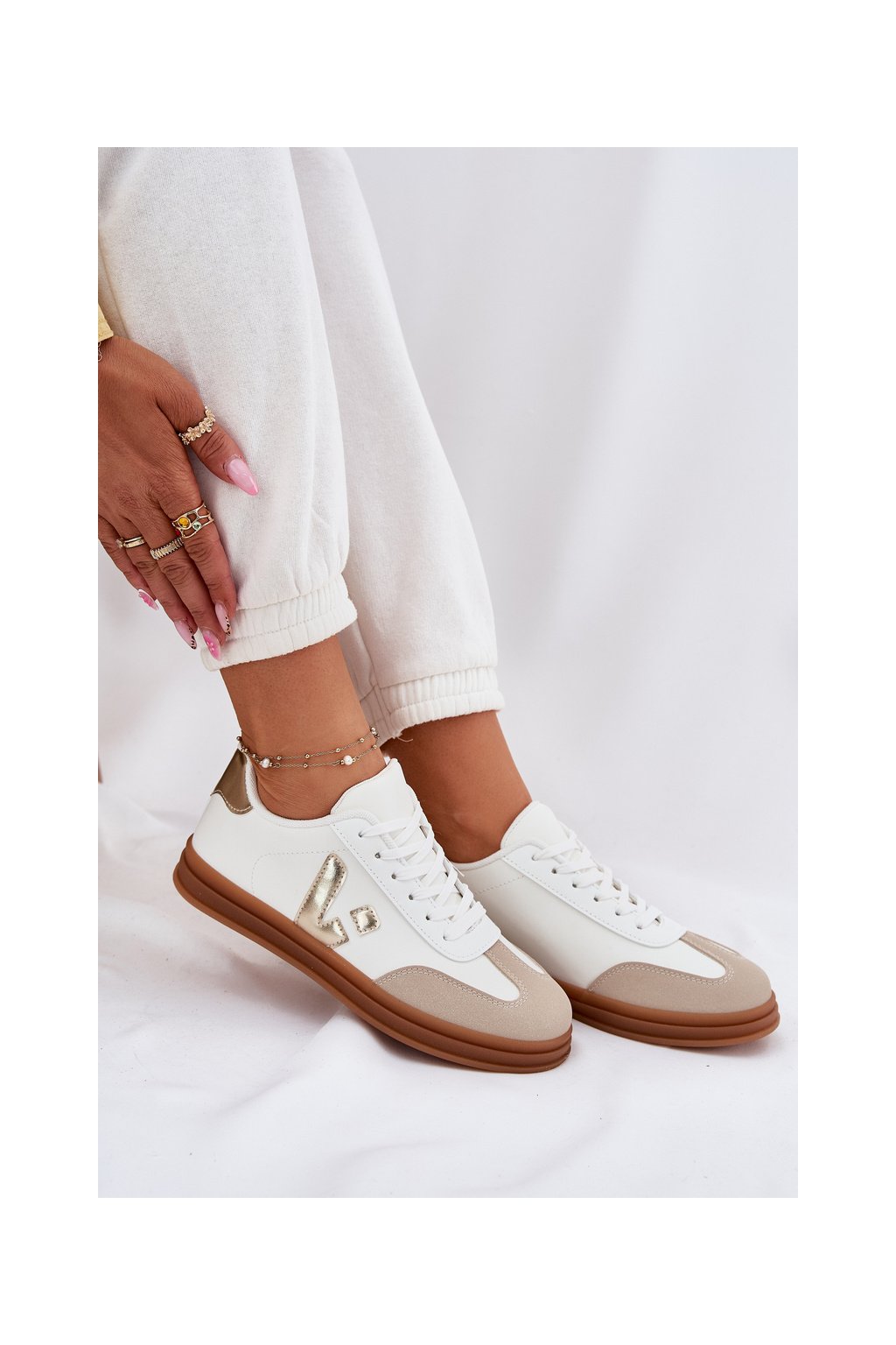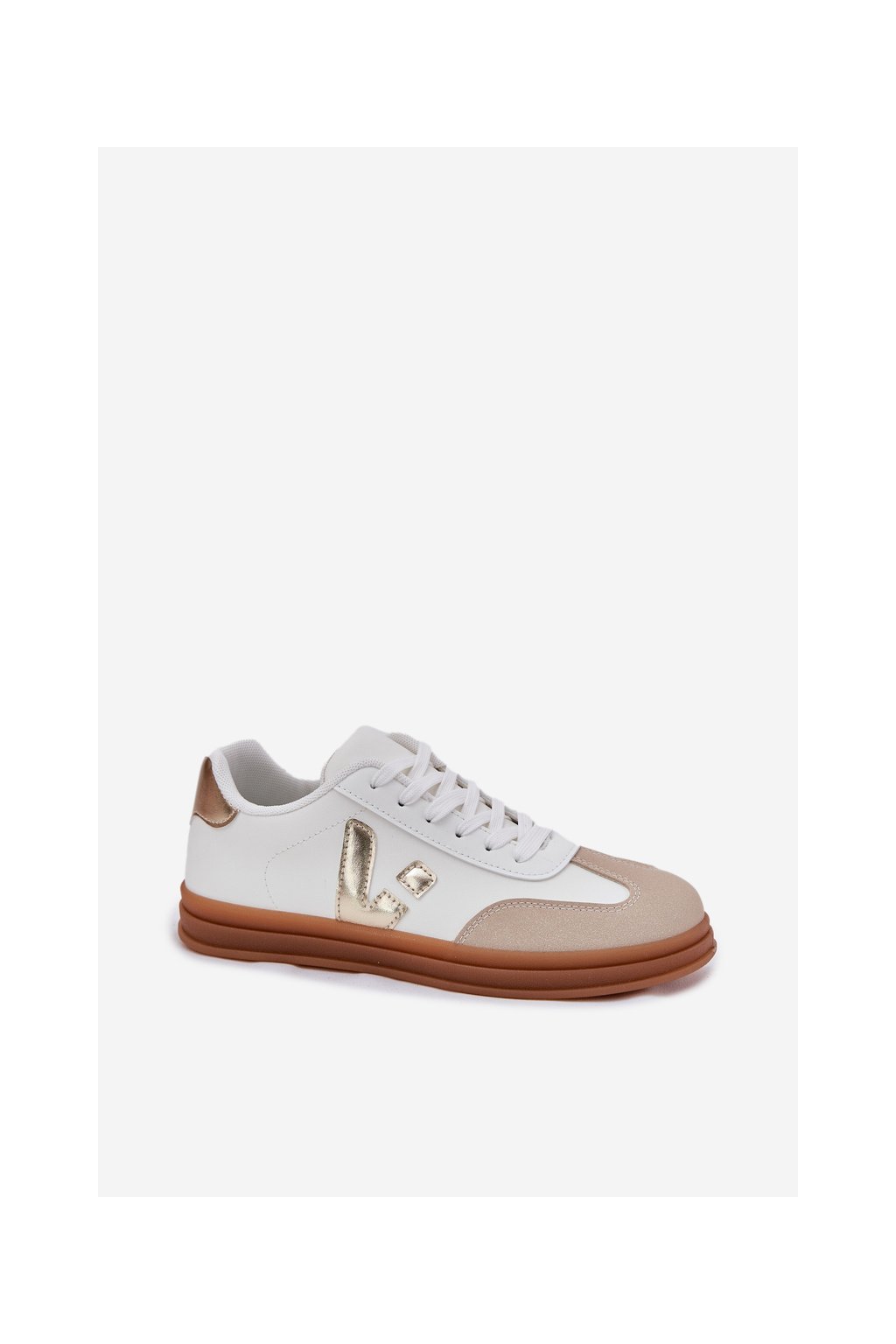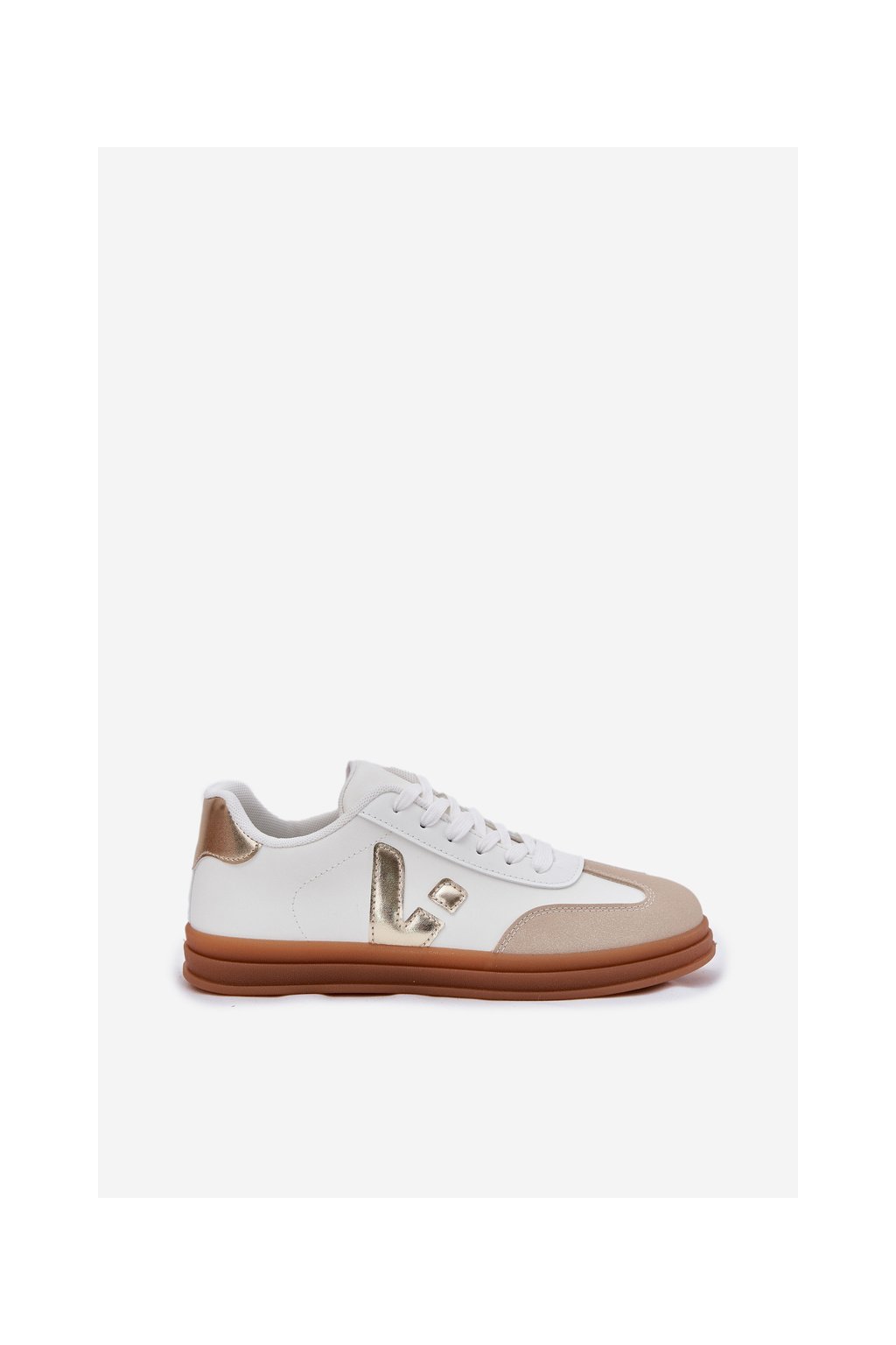 Biele dámske tenisky z eko kože Micca na rovnej podrážke, kód produktu A005 GOLD