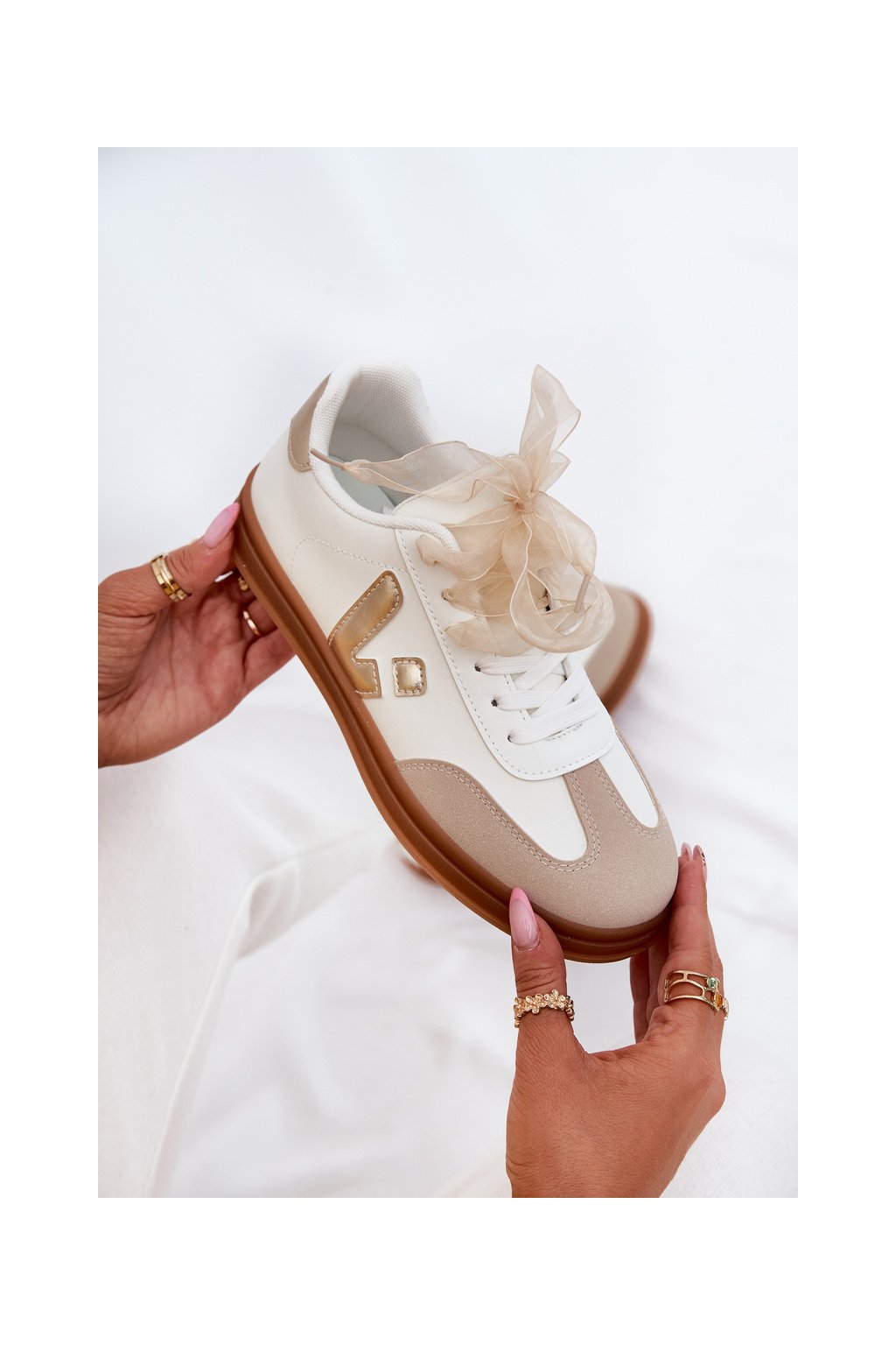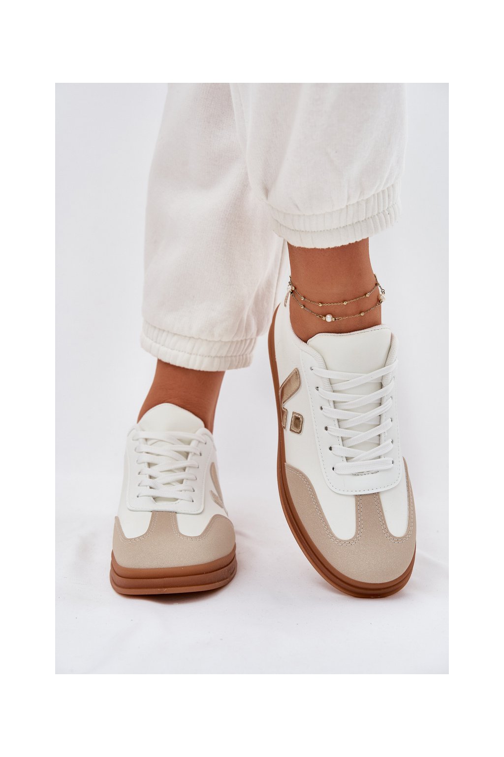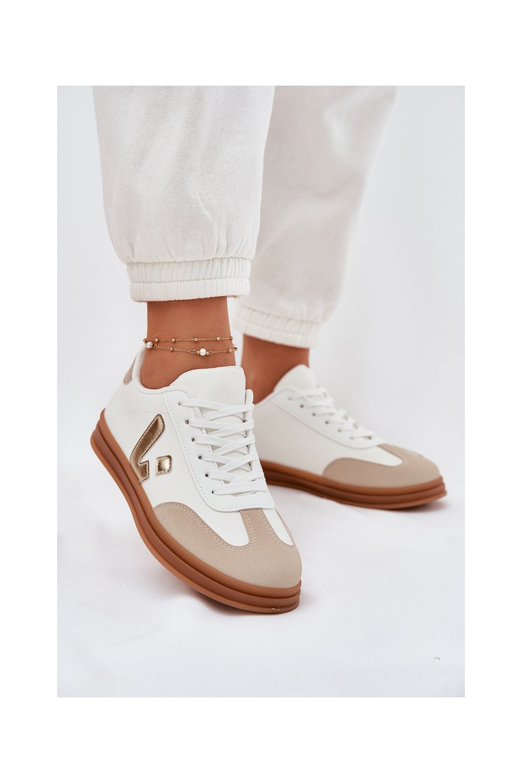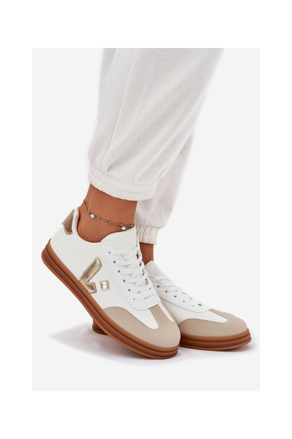 Biele dámske tenisky z eko kože Micca na rovnej podrážke, kód produktu A005 GOLD