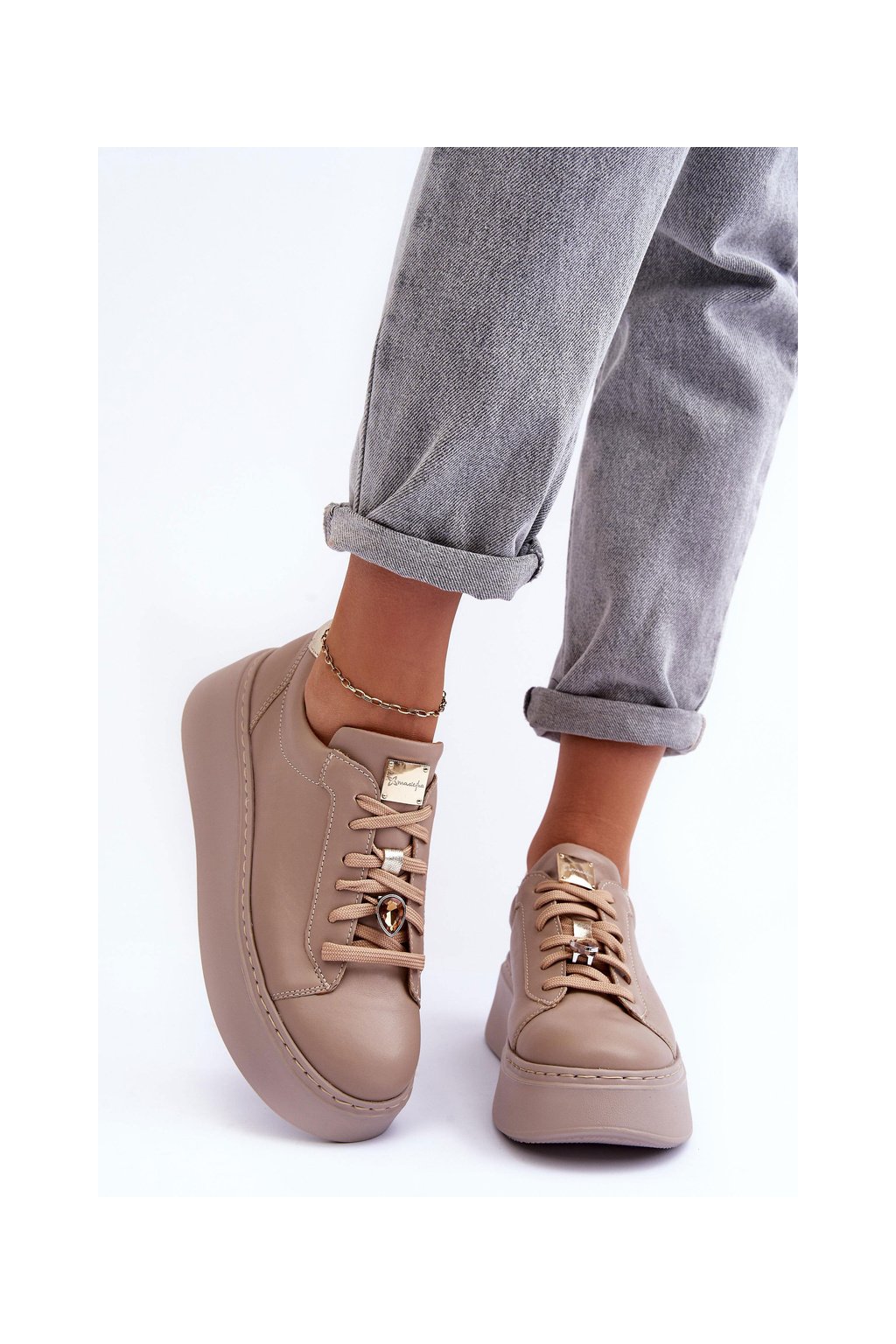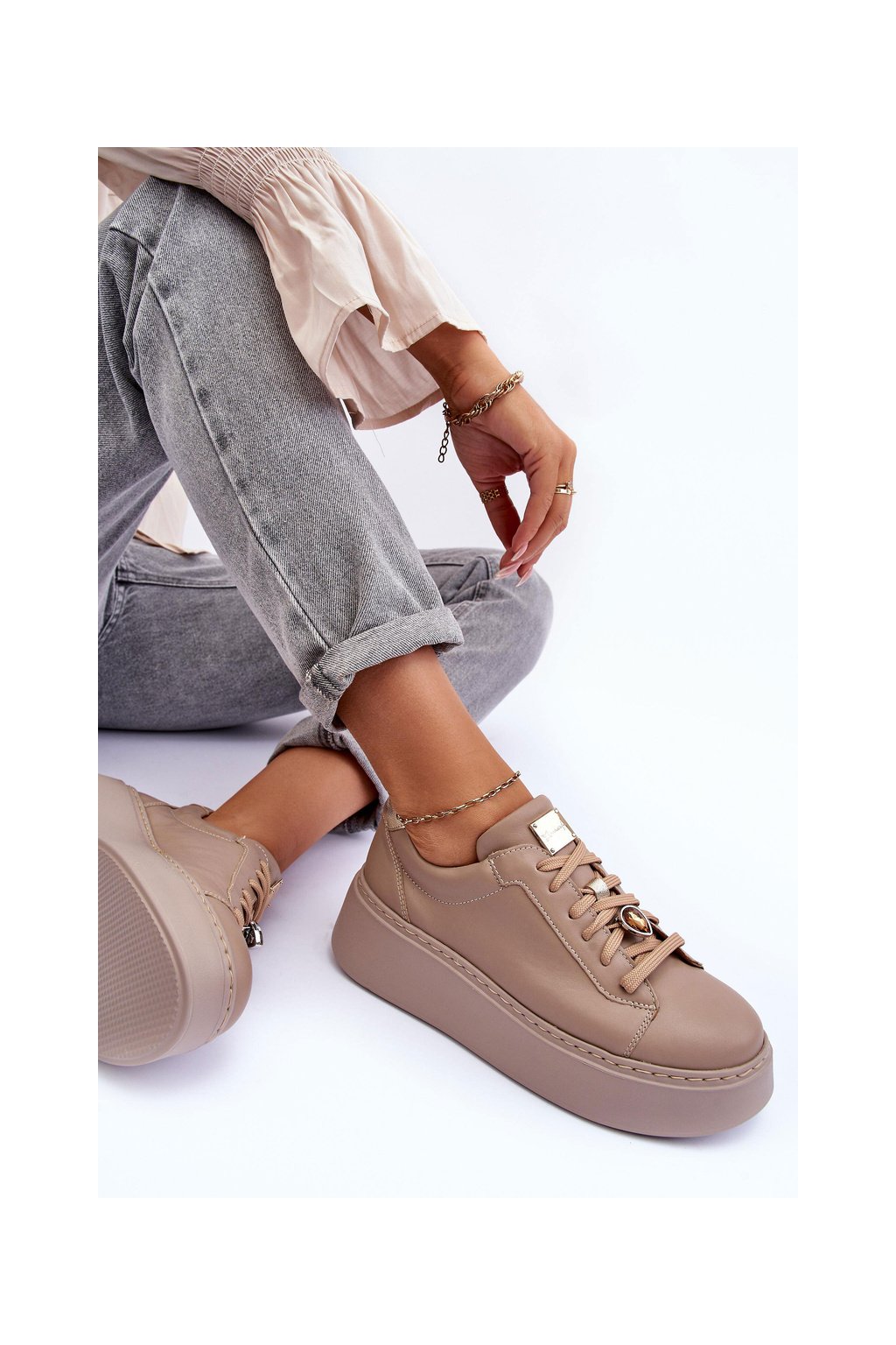 Kůže Sportovní Boty Na Platformě Maciejka 06191-04 Bežová
