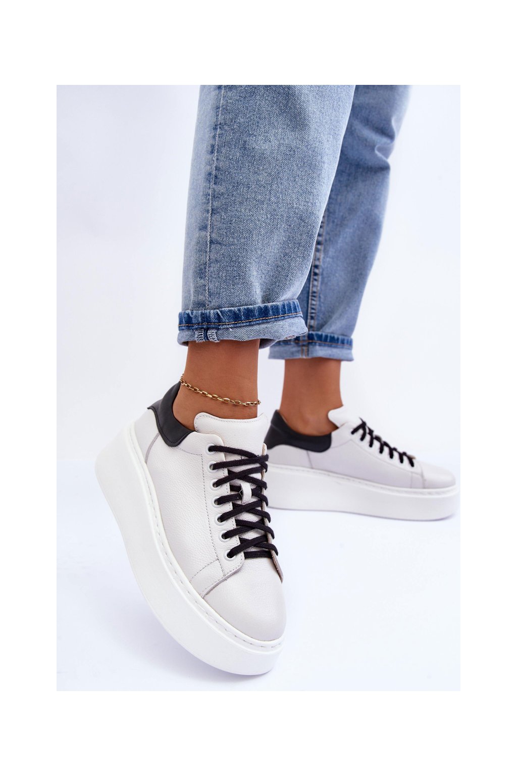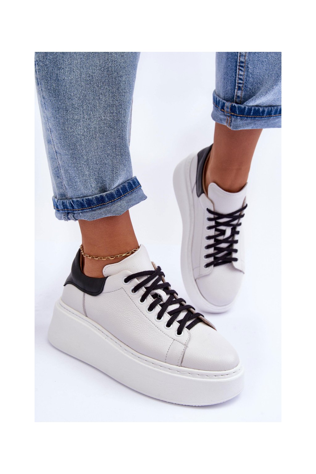 Dámske biele tenisky kožené kód obuvi TE- CCC -01-10150 V.BIAŁY+S.BLACK: Naše topky dnes na temu tenisky