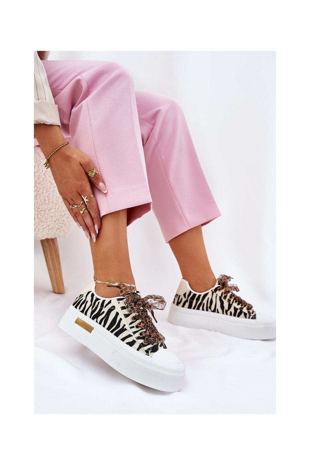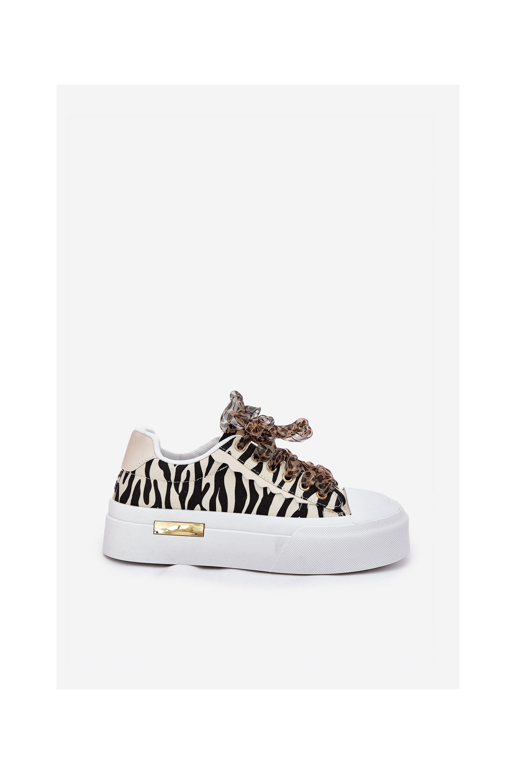 Dámske tenisky Zebra, čierno-béžové, platforma, šnúrovanie, PC2806 ZEBRA