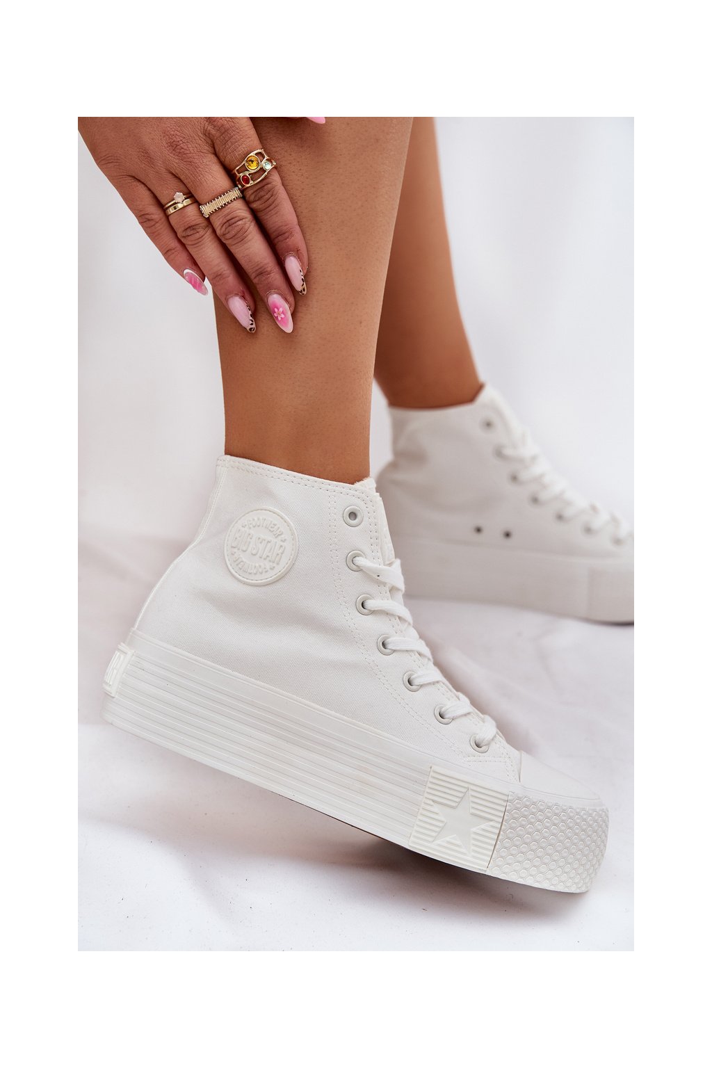 Biele dámske tenisky na platforme Big Star RR274743 z textilného materiálu