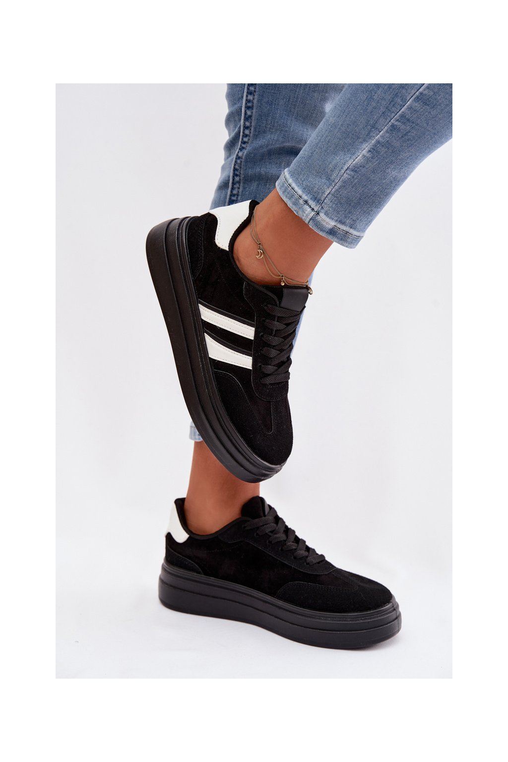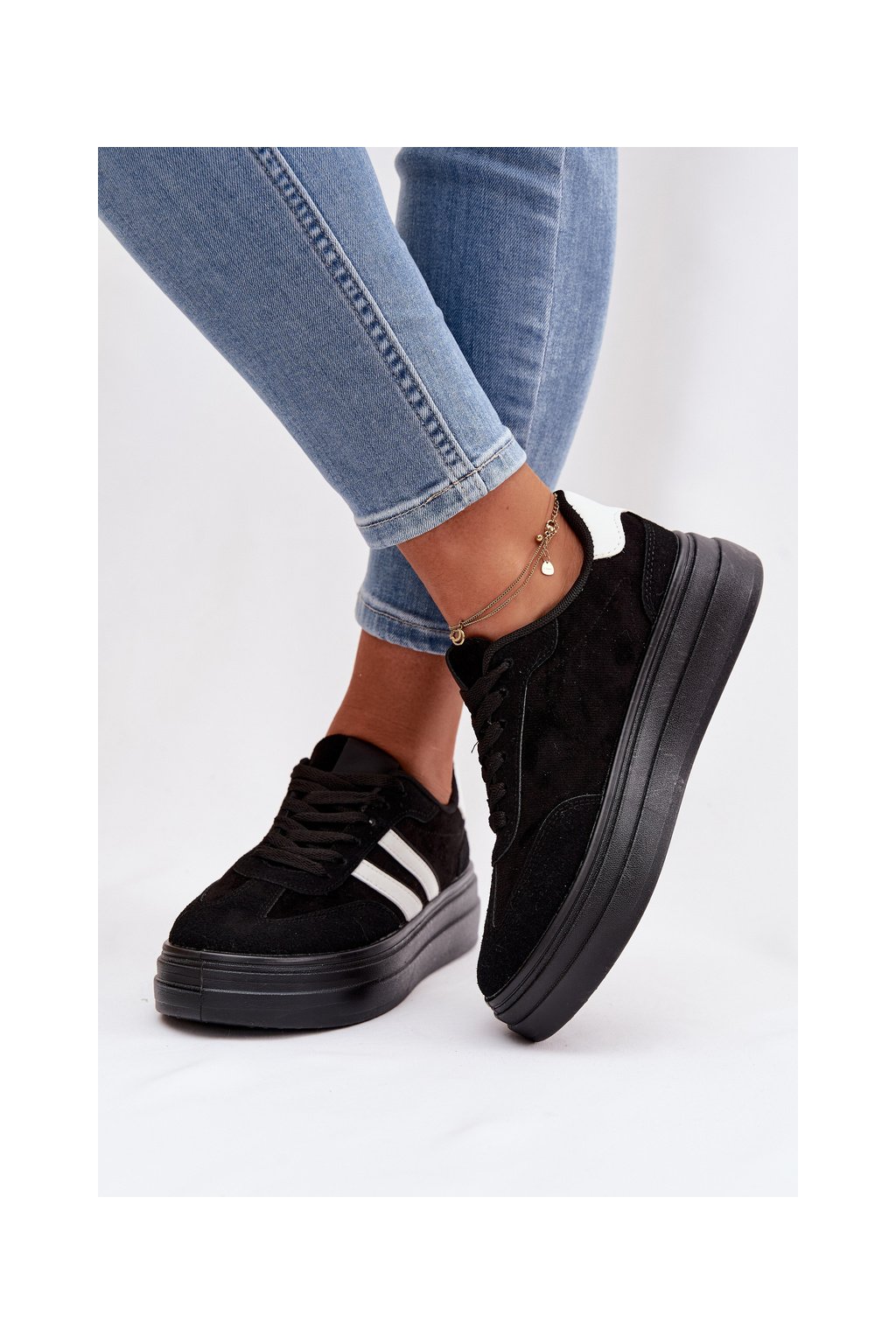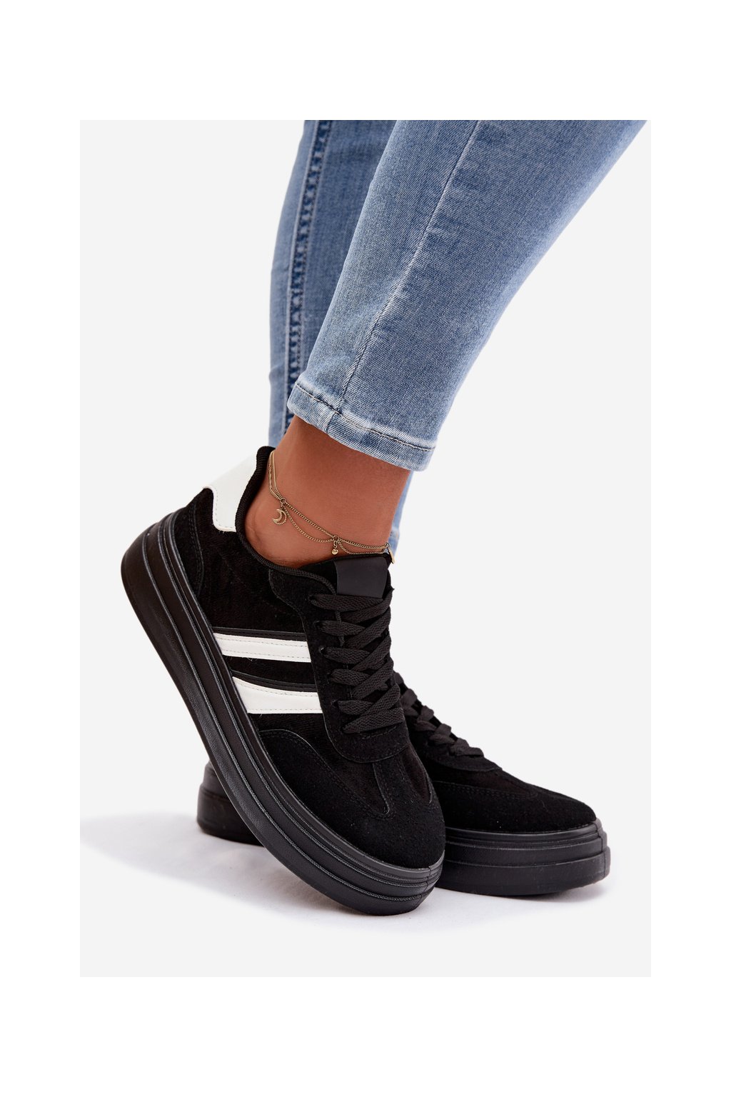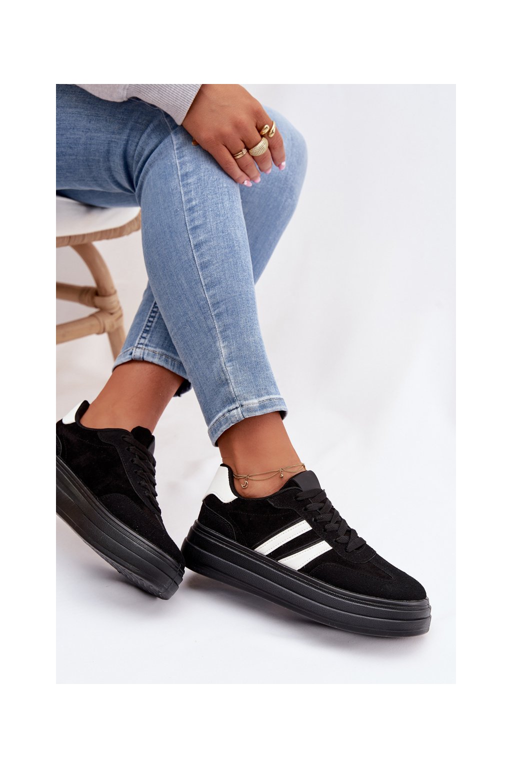 Stylové dámské tenisky z eko semiše jsou pohodlnou volbou na každý den. Model na platformě jemně zvýrazňuje siluetu a zajišťuje stabilitu při chůzi. Dva pásky umístěné z boku dodávají sportovní, moderní vzhled. Měkká pěnová vložka zaručuje pohodlí po celý den, takže tenisky jsou ideální pro každodenní outfity. Při výběru velikosti se řiďte tabulkou velikostí.