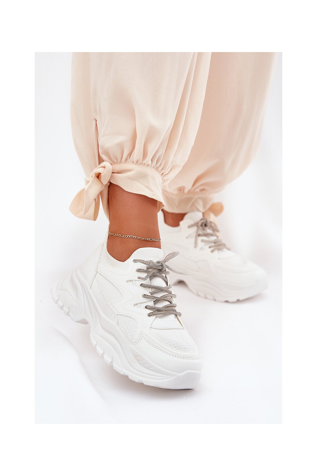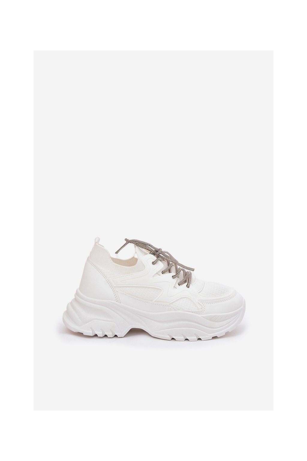 Biele dámske tenisky na platforme s ozdobným šnurovaním, textil, kód produktu C2154 WHITE