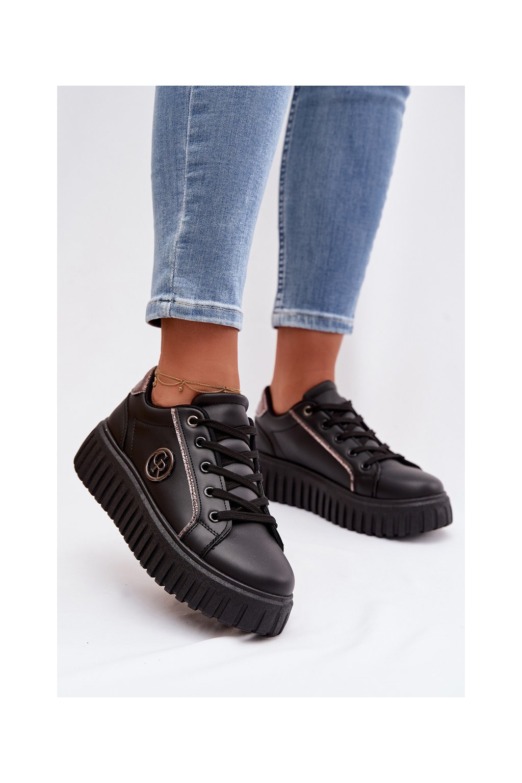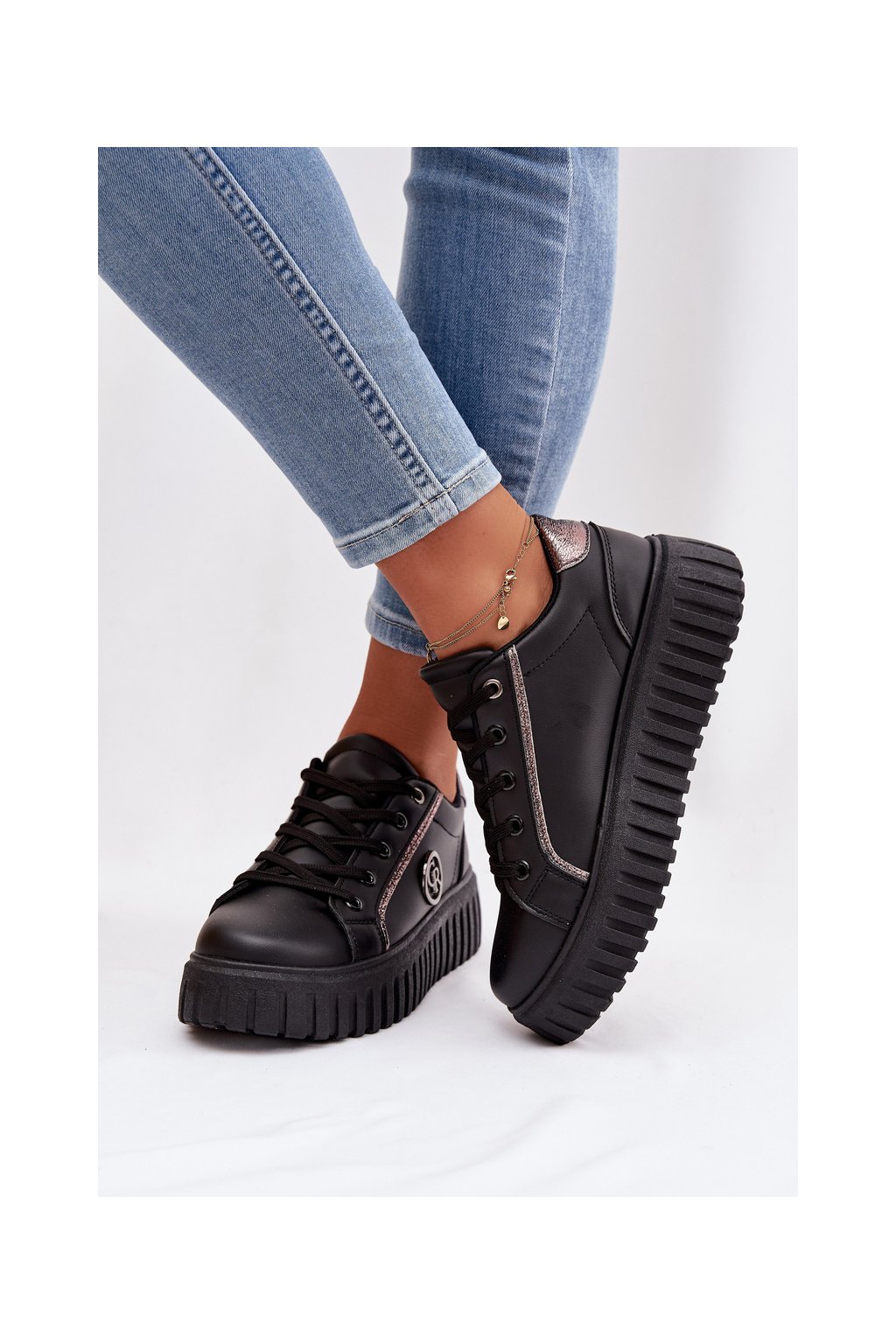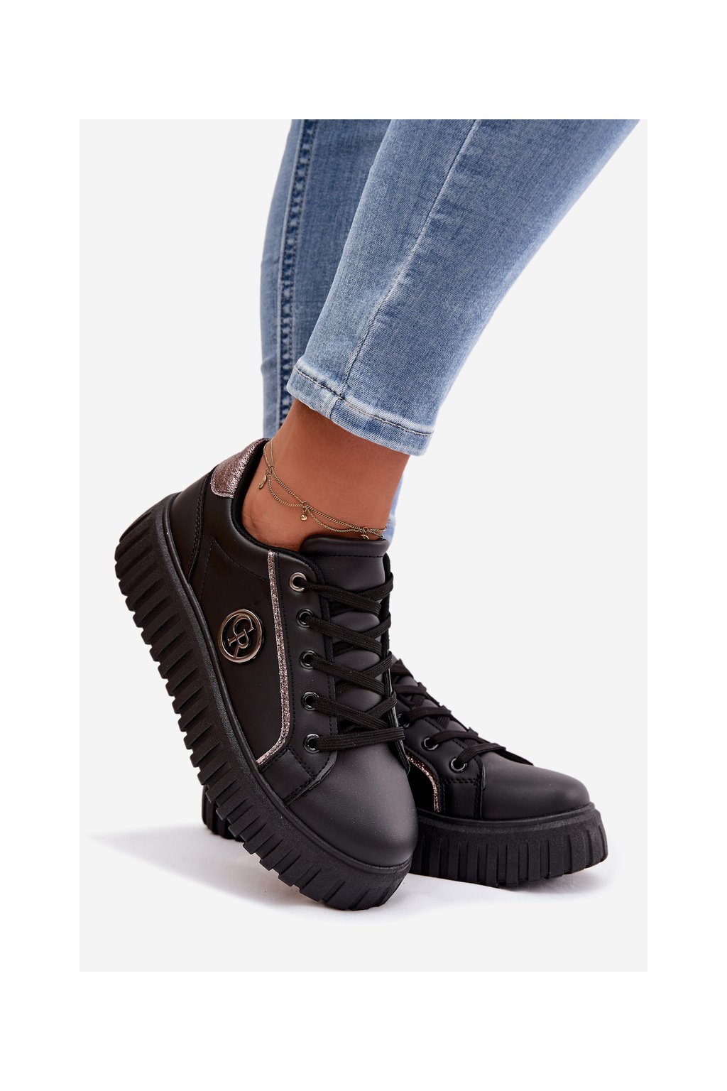 Dámske tenisky na platforme s ozdobným detailom čierne iselora / 24SP26-4757 BLACK