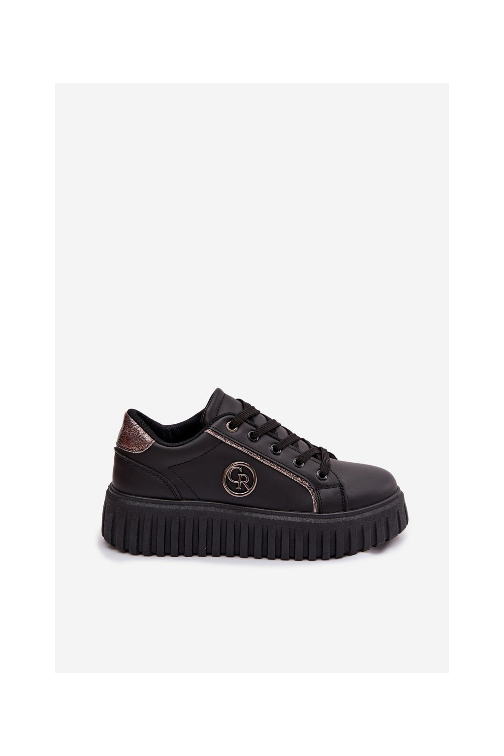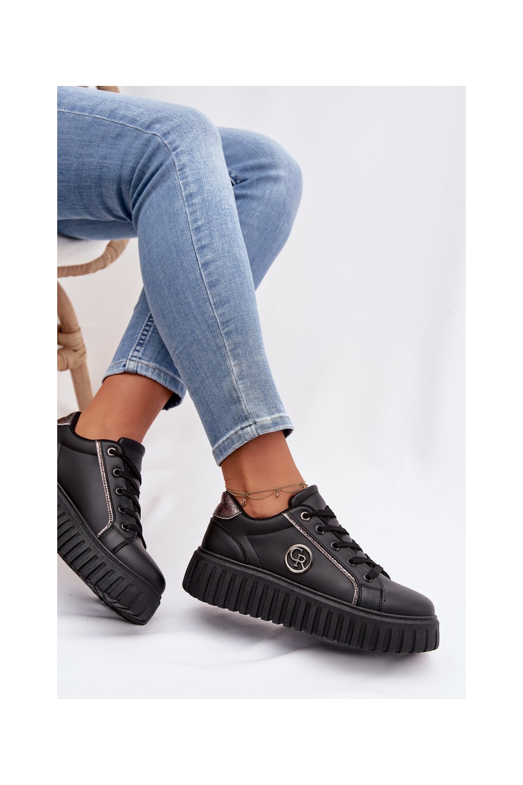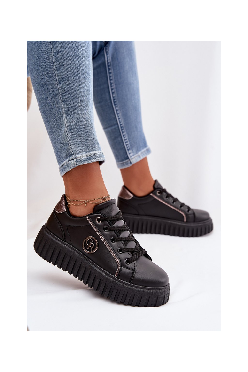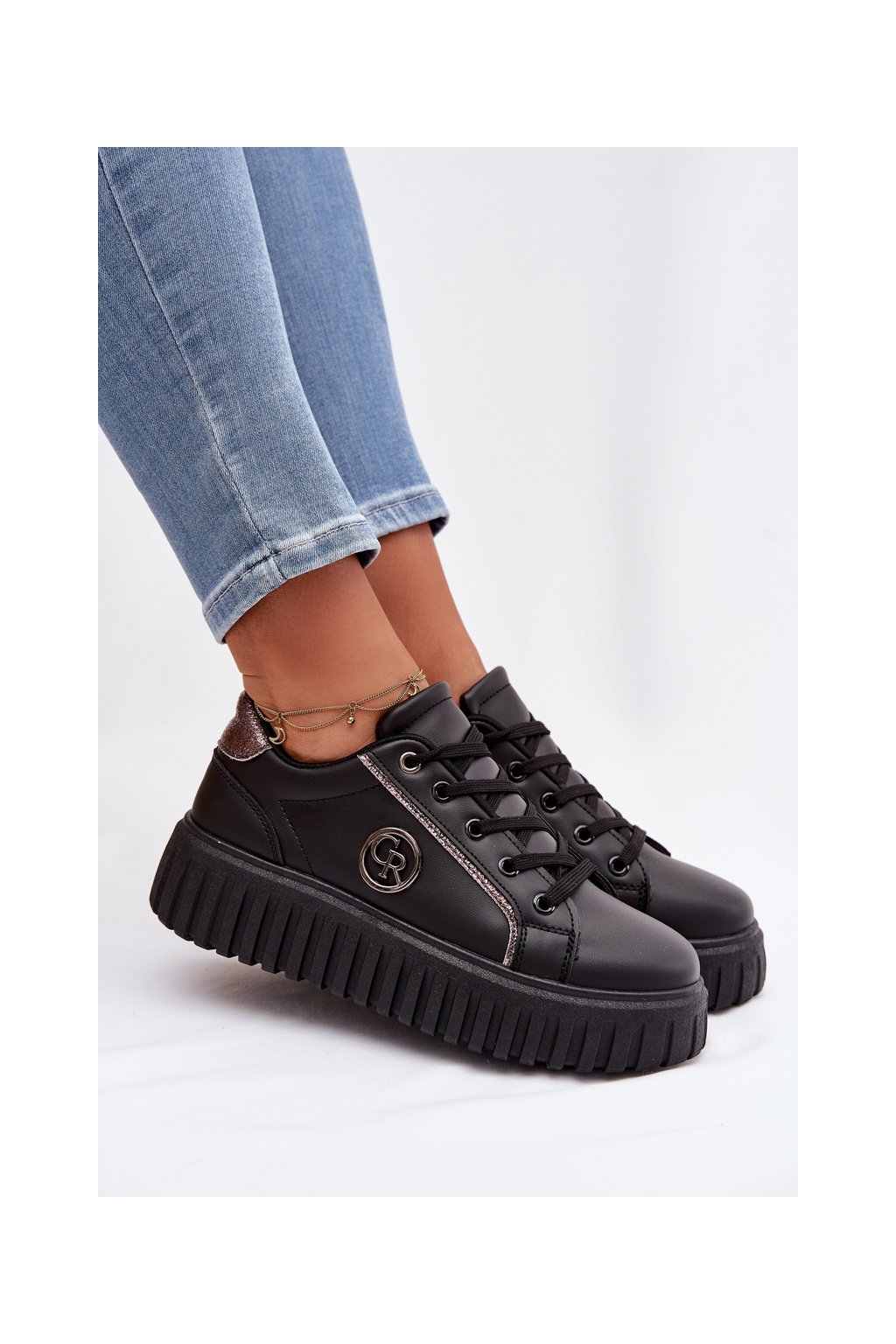 Dámske tenisky na platforme s ozdobným detailom čierne iselora / 24SP26-4757 BLACK