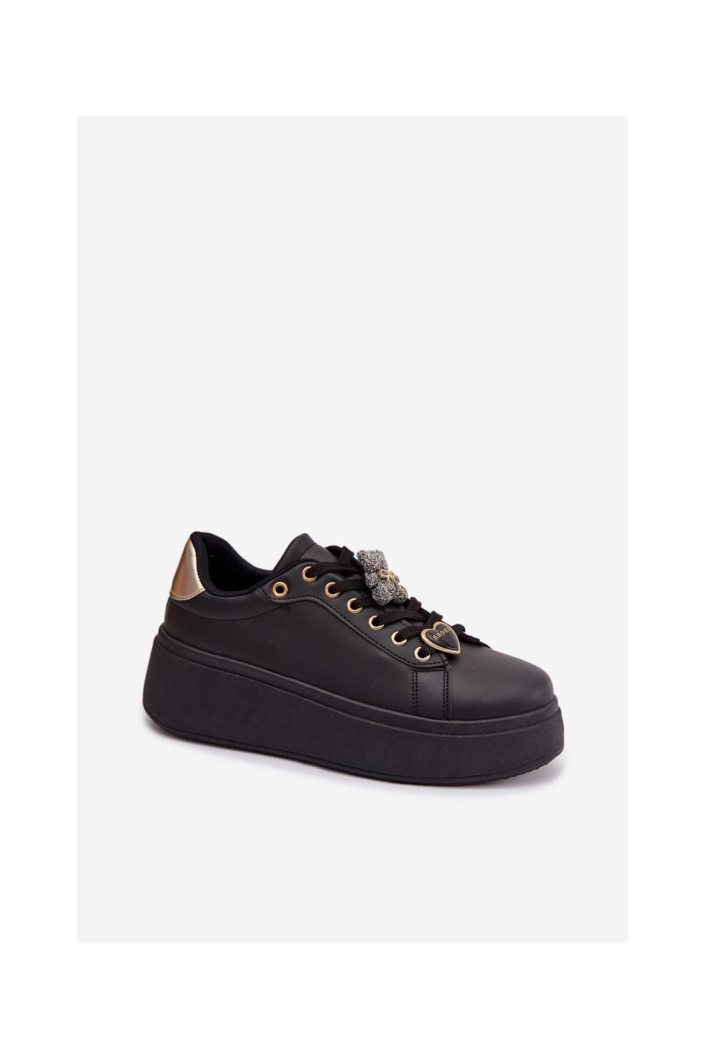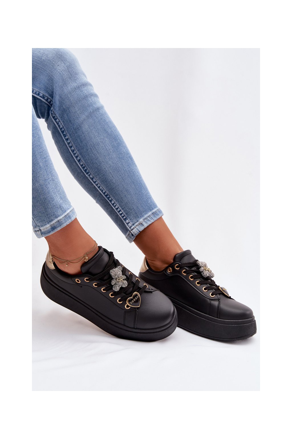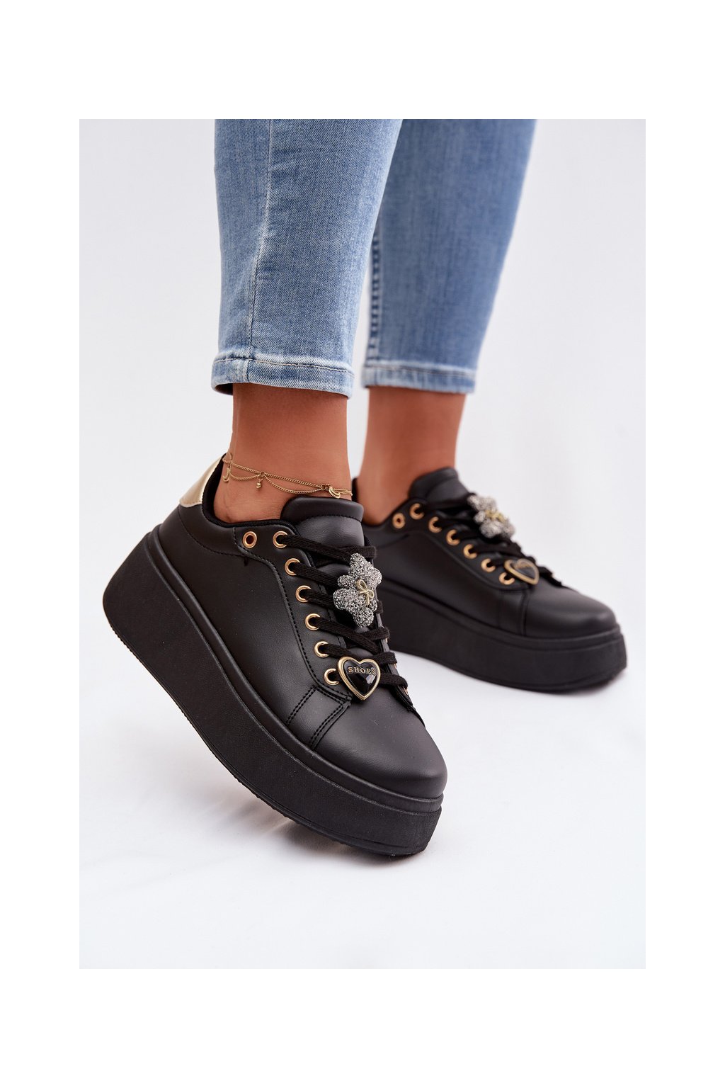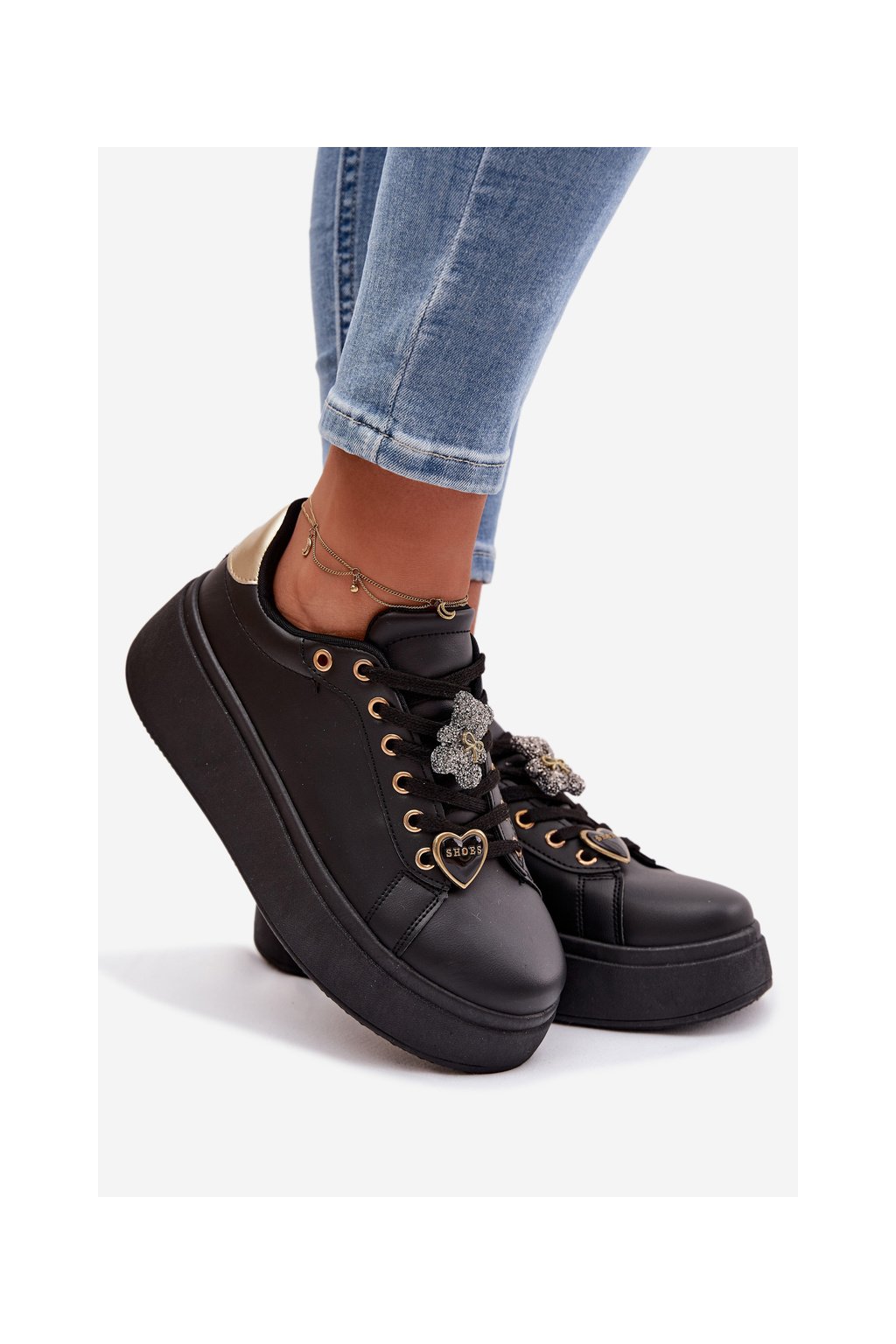 Dámske tenisky na platforme s prackami medved srdce čierne selorissa / 24SP26-4758 BLACK