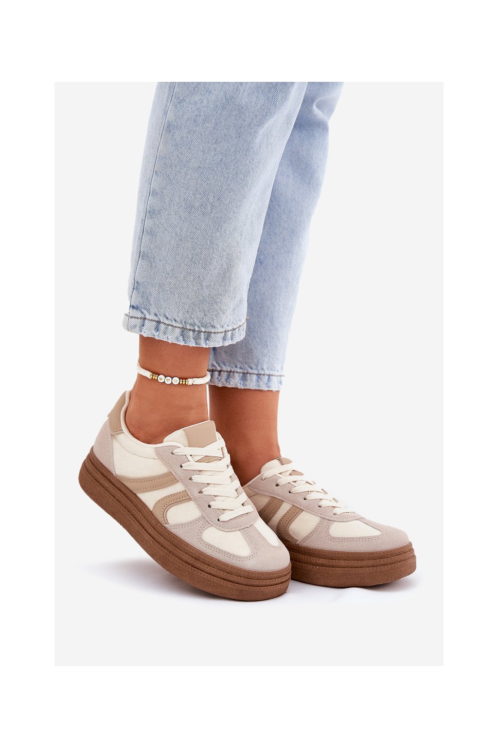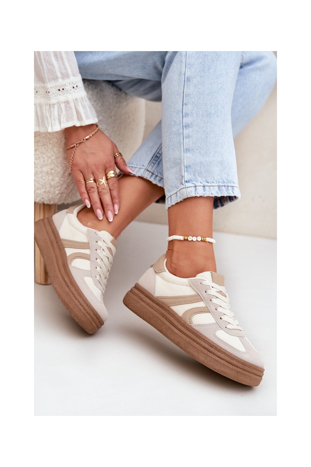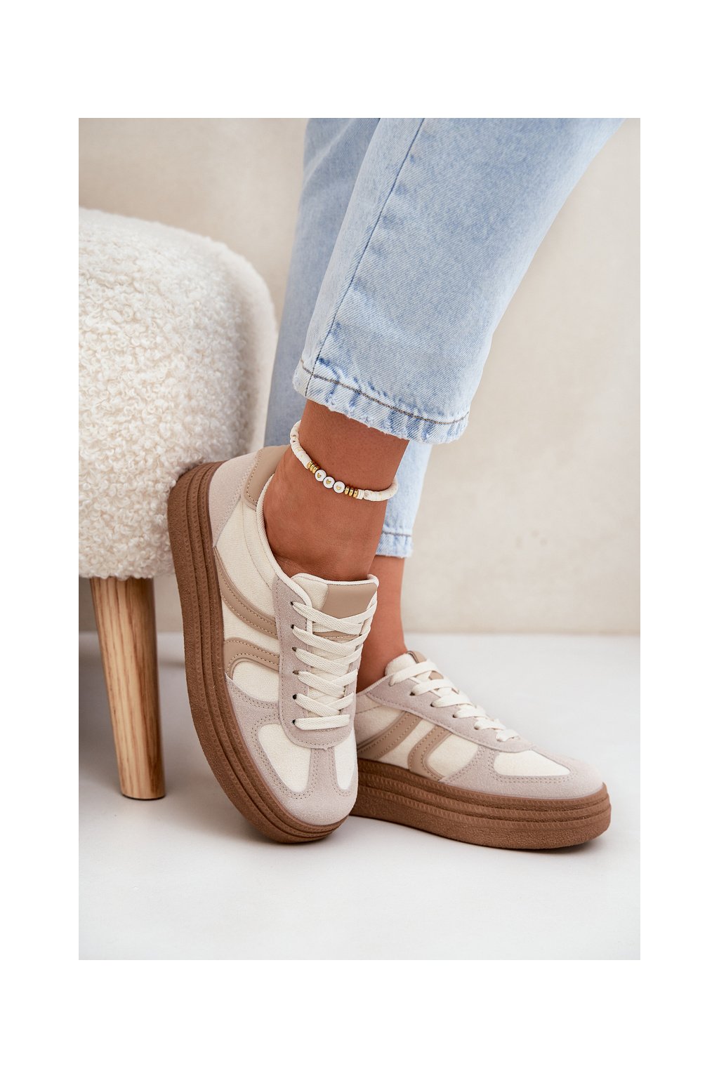 Dámske tenisky na platforme z EKO semišu, béžové - 8912 KHAKI