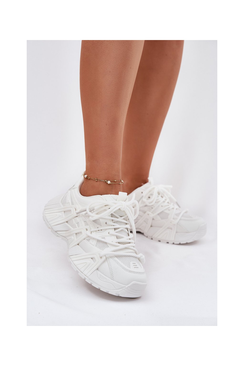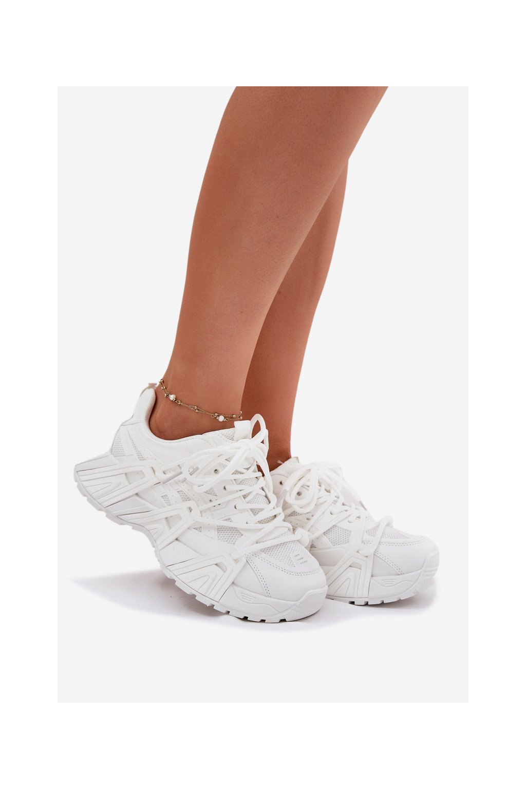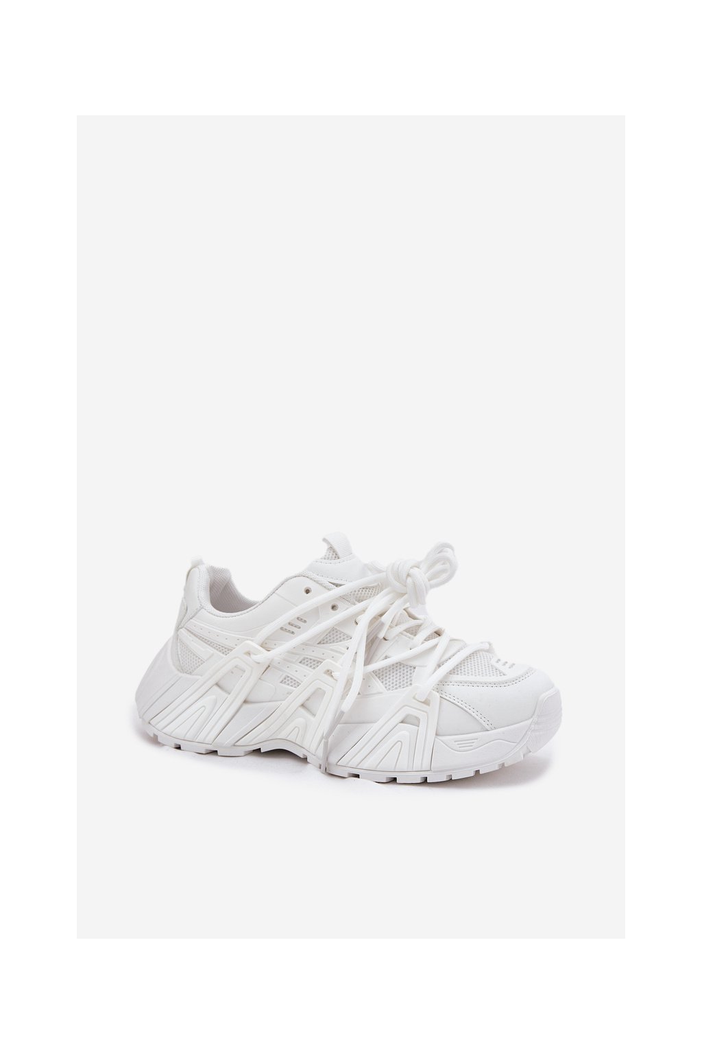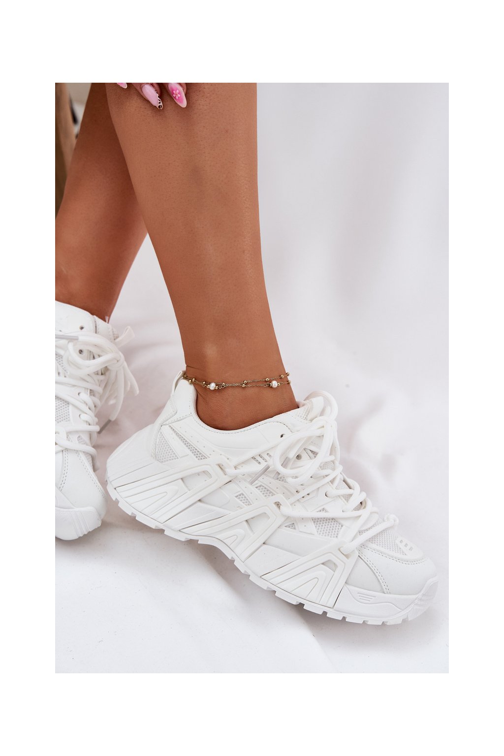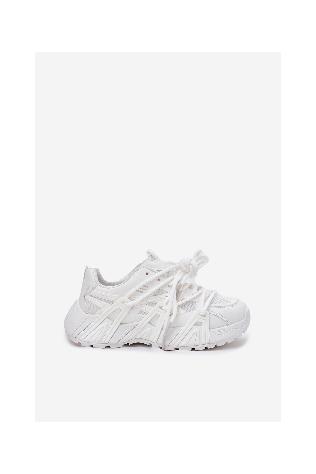 Biele dámske tenisky s dvojitým šnúrovaním z eko kože a textilu, kód produktu 88205 WHITE