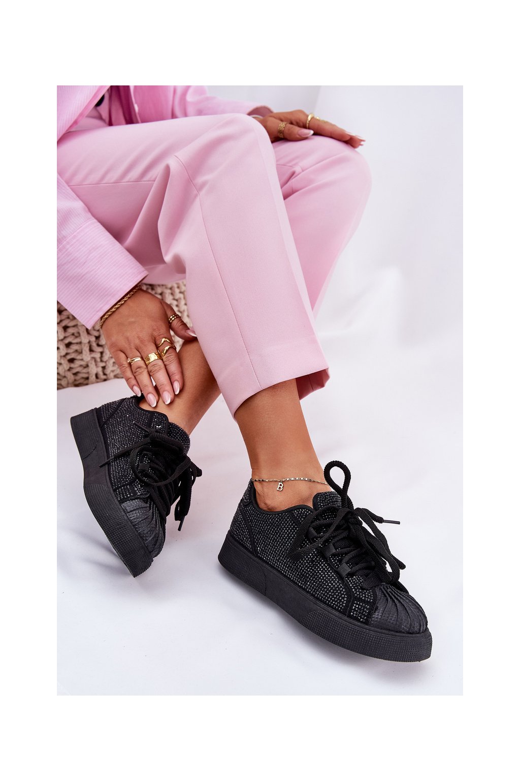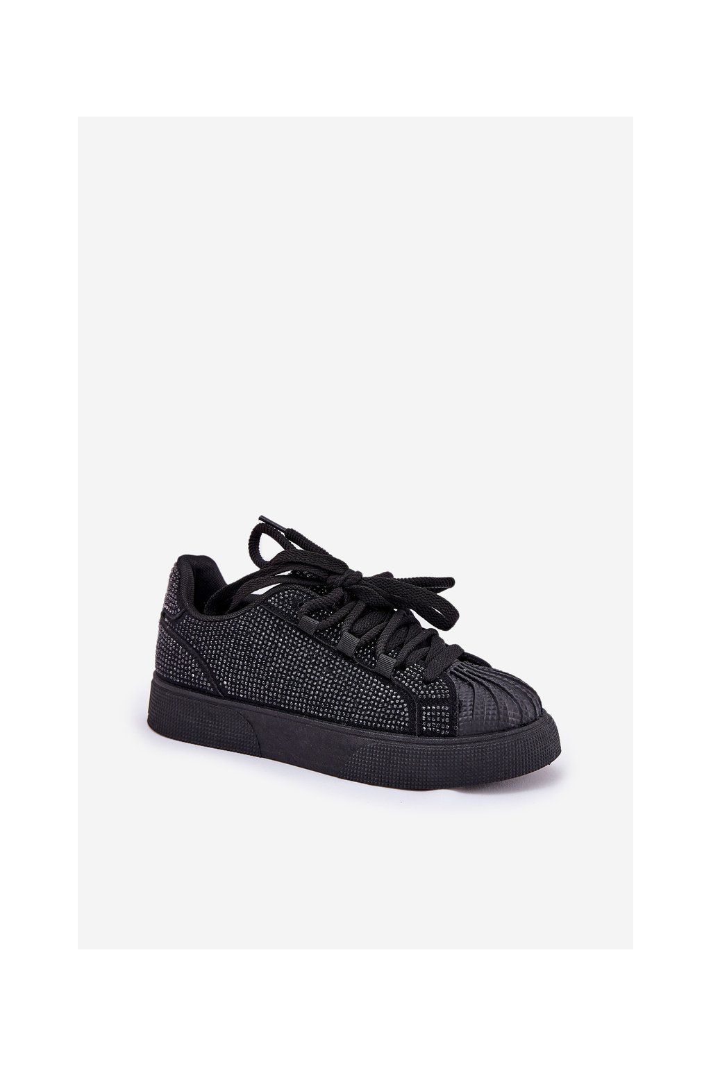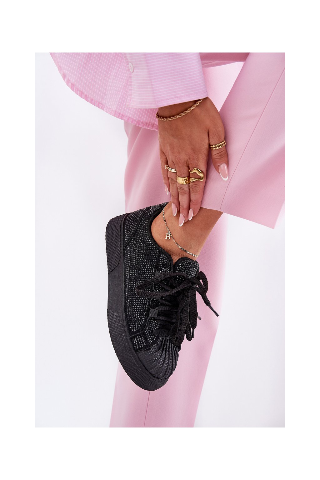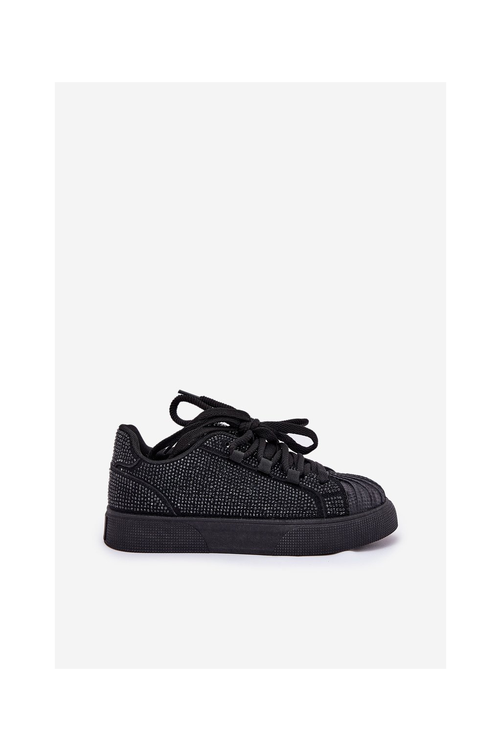 Čierne dámske semišové tenisky na platforme s rovnou podrážkou, zdobené zirkónmi, kód produktu 8970 BLACK