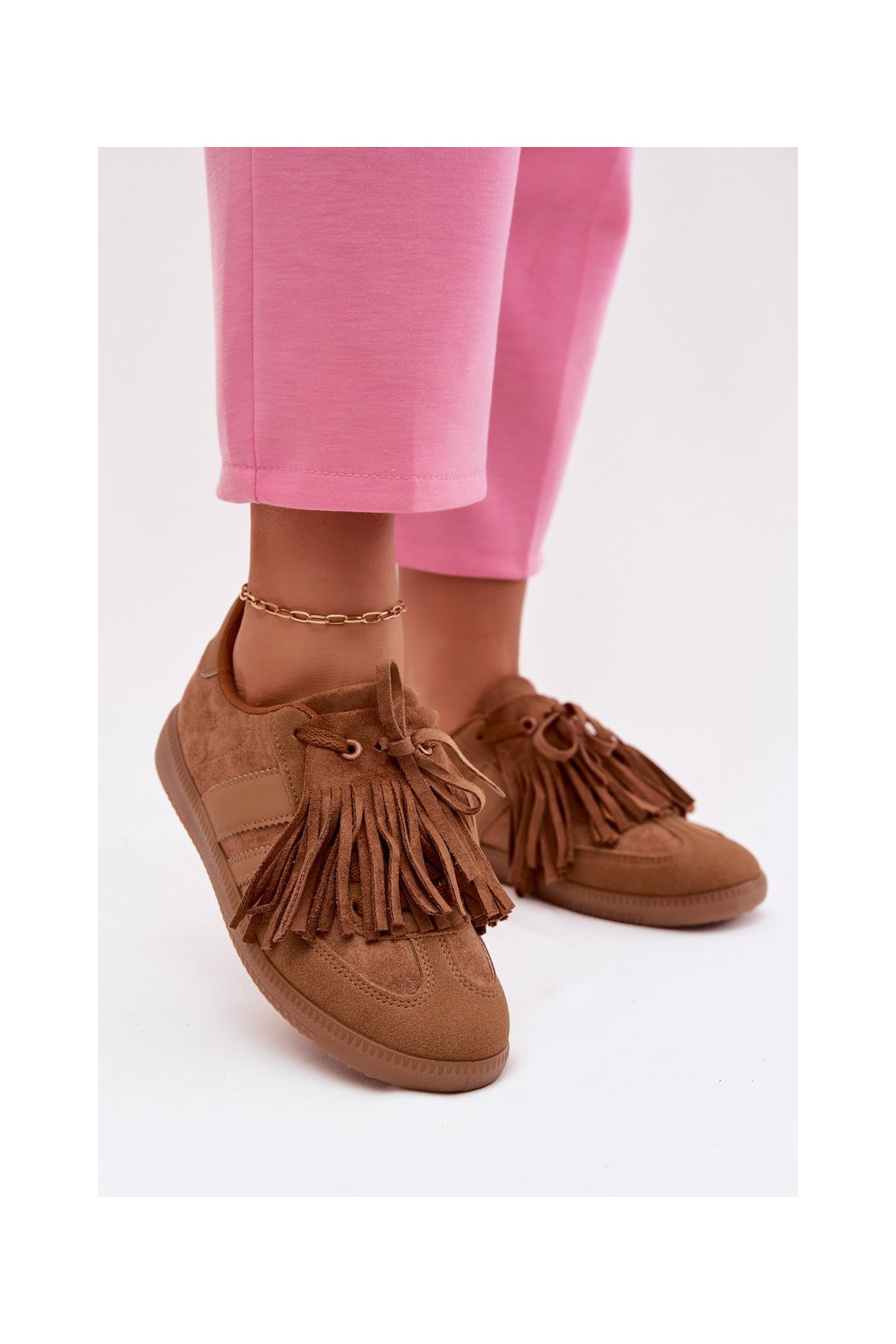 Dámske tenisky so strapcami camel dorivelle / 9052 CAMEL