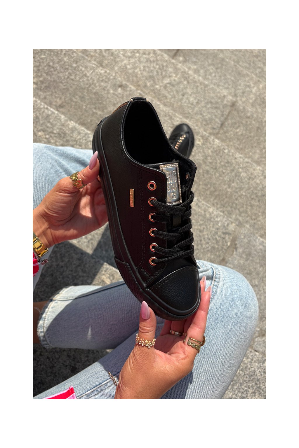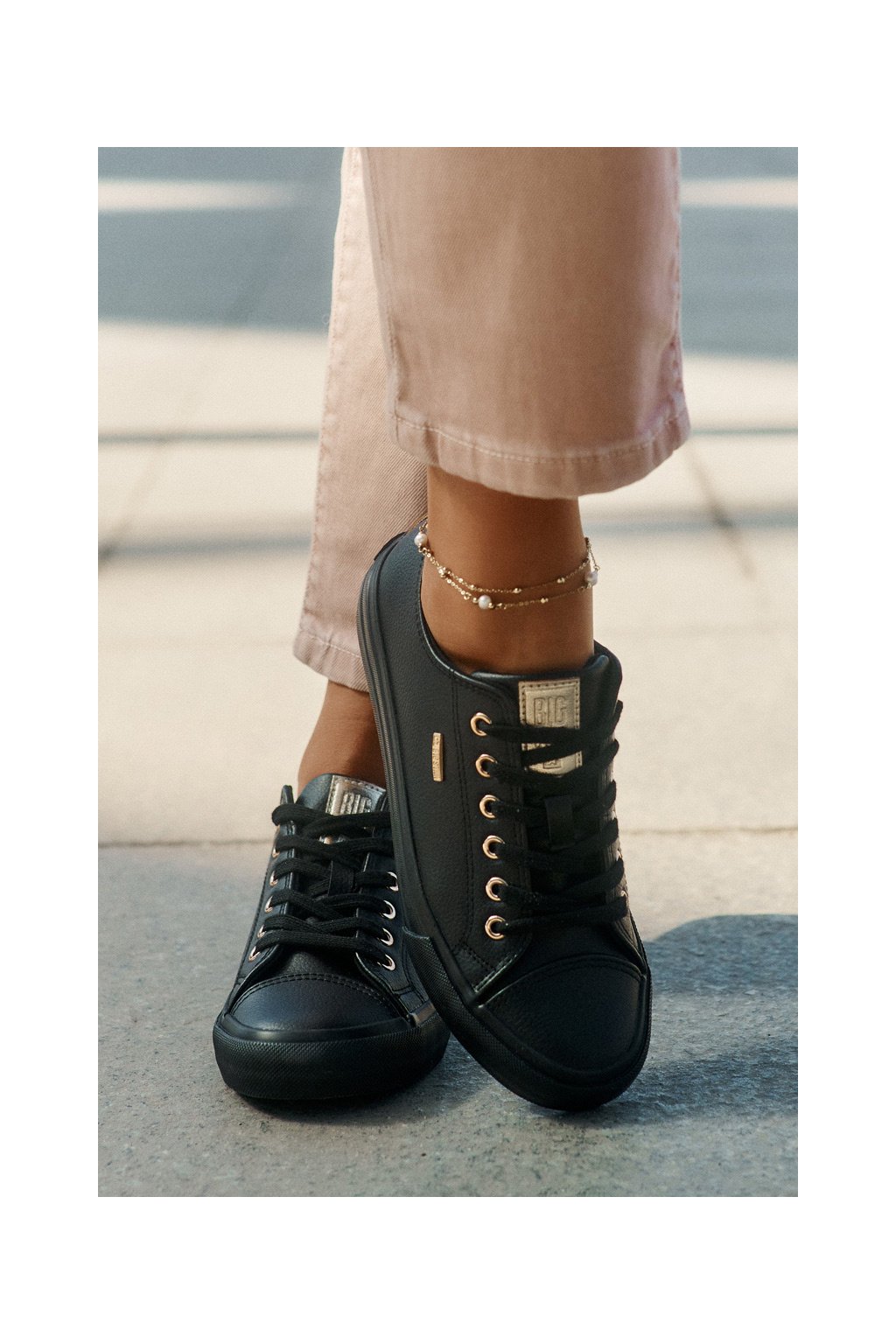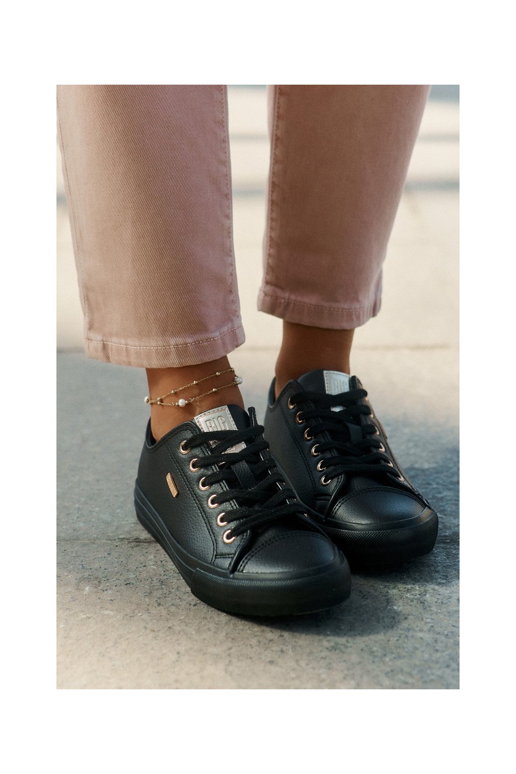 Čierne dámske tenisky z eko kože Big Star RR274749 s rovnou podrážkou