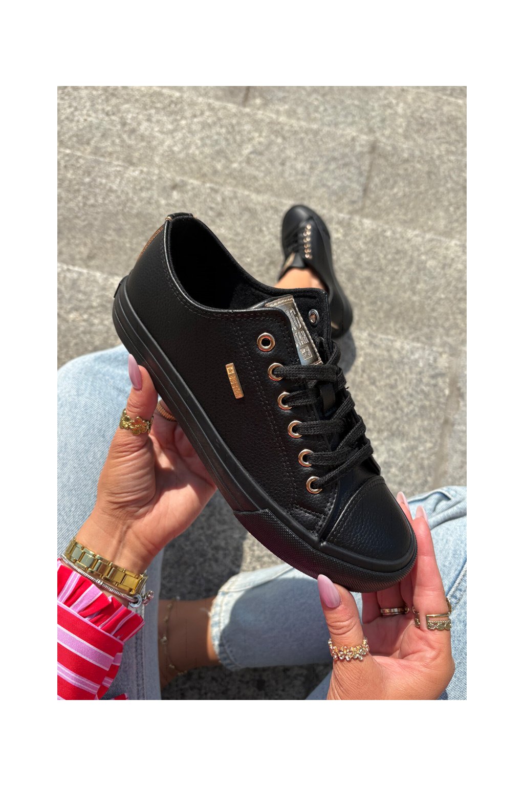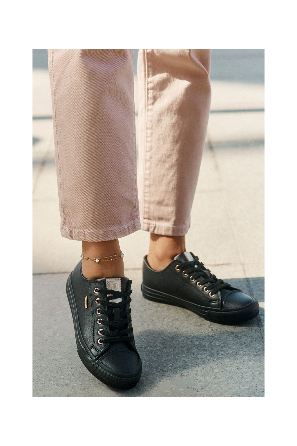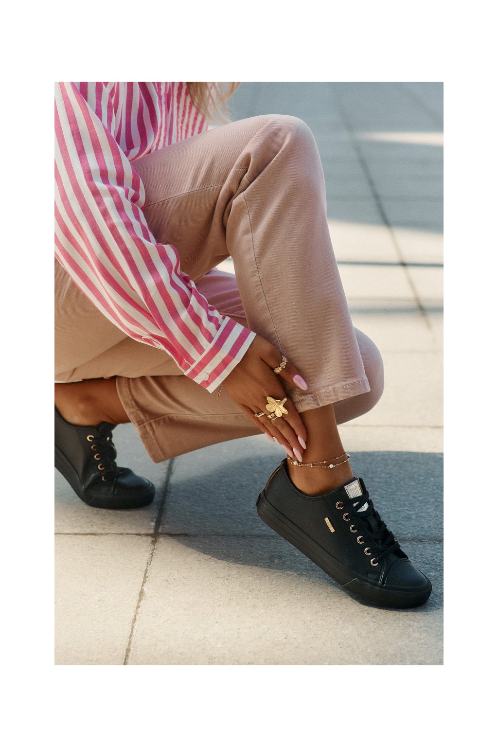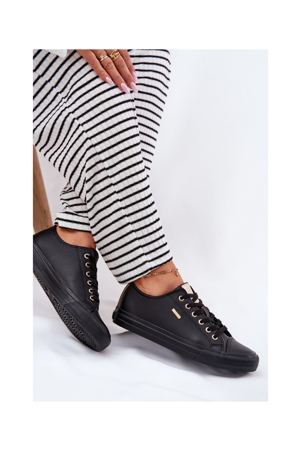Čierne dámske tenisky z eko kože Big Star RR274749 s rovnou podrážkou