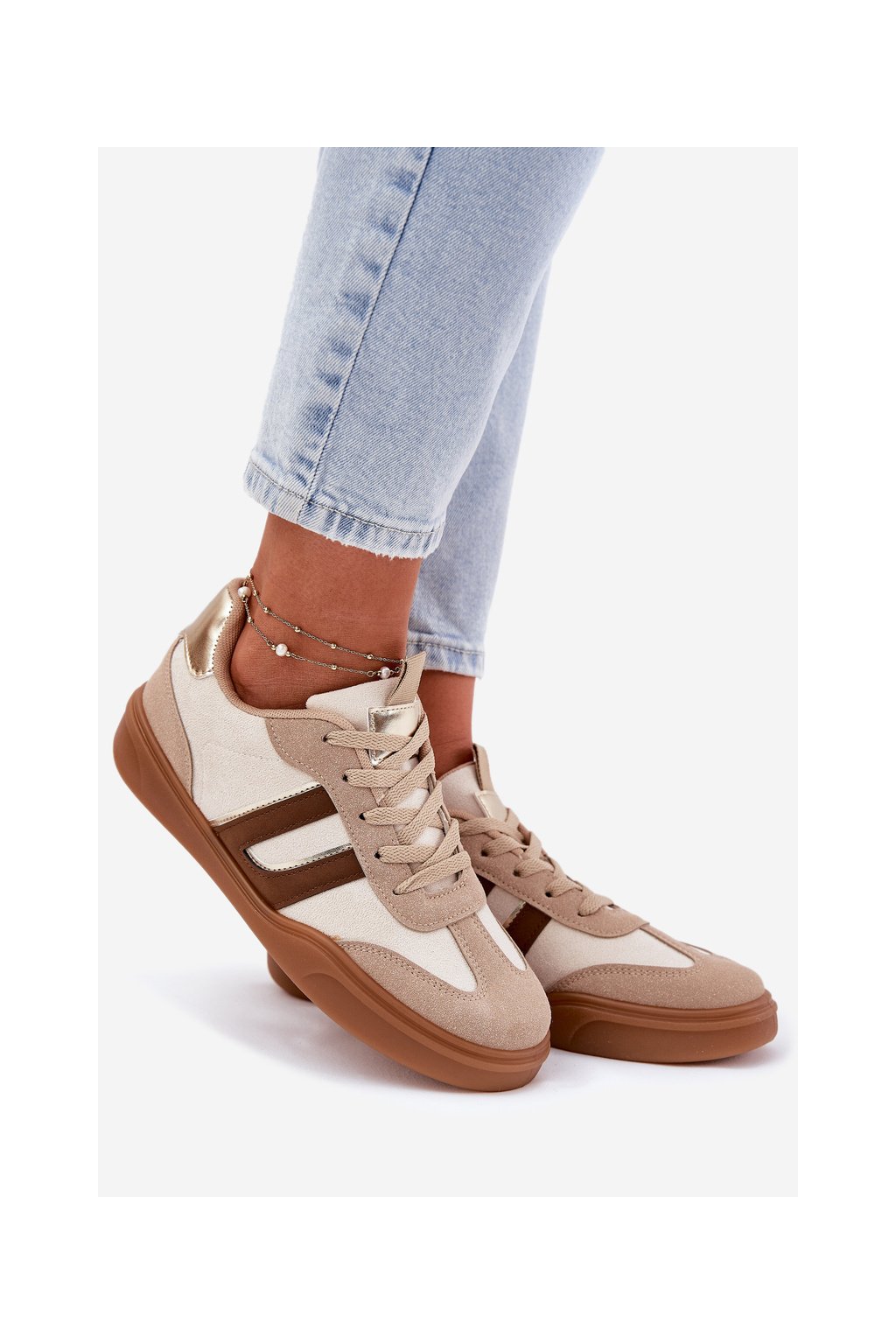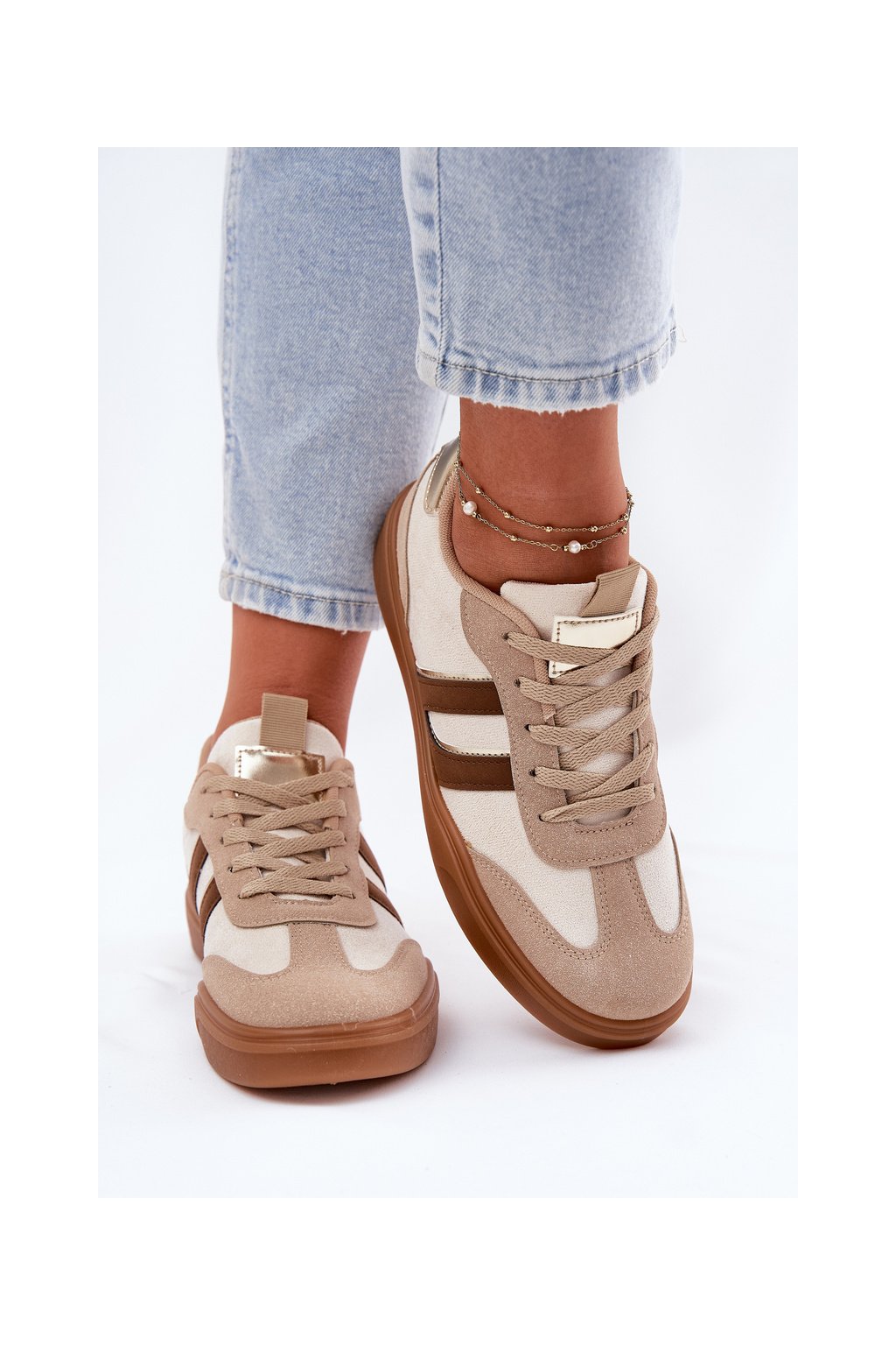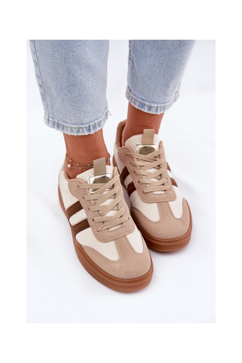 Béžové dámske tenisky z eko semišu na rovnej podrážke, kód produktu 1W-N16 BEIGE