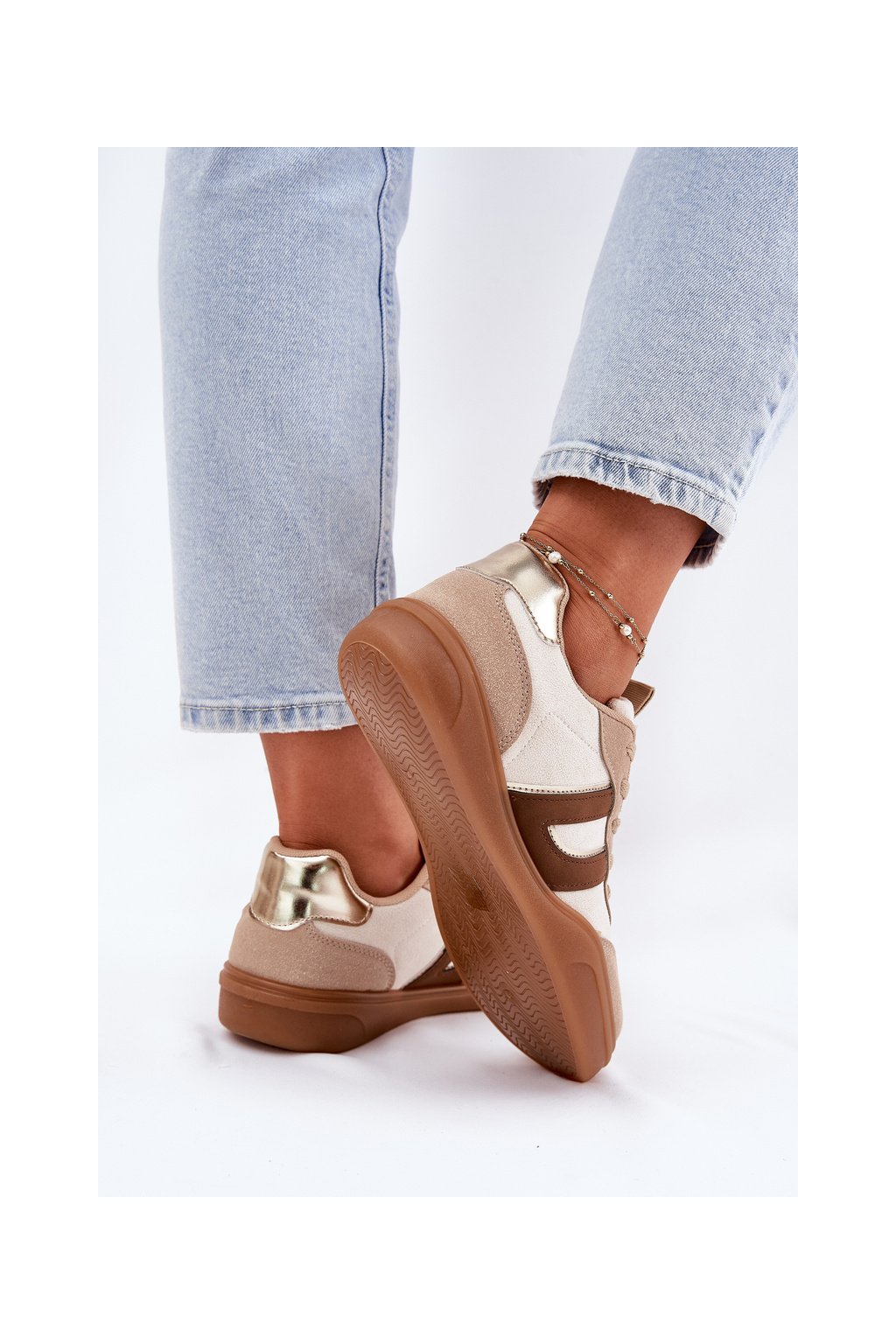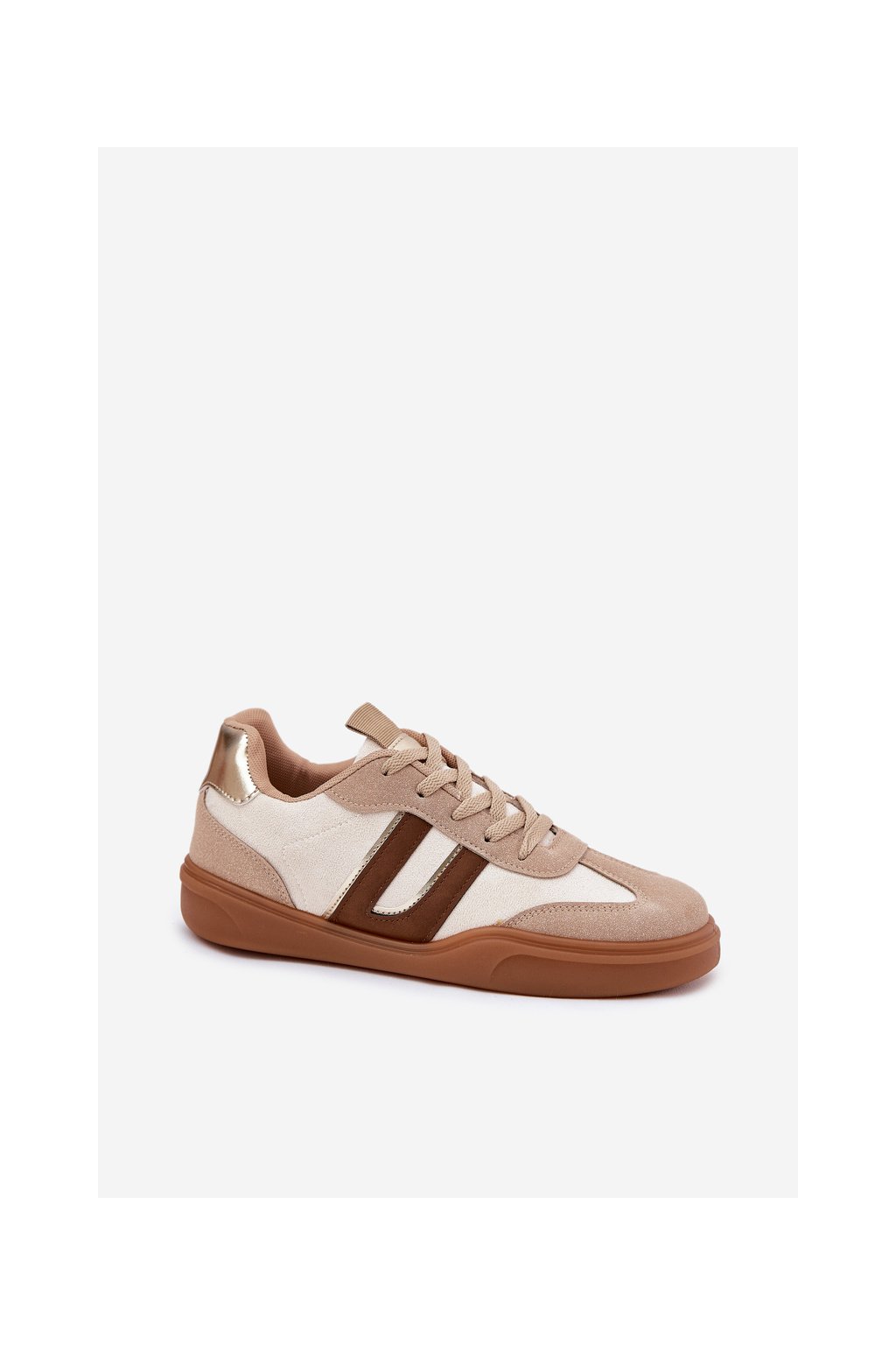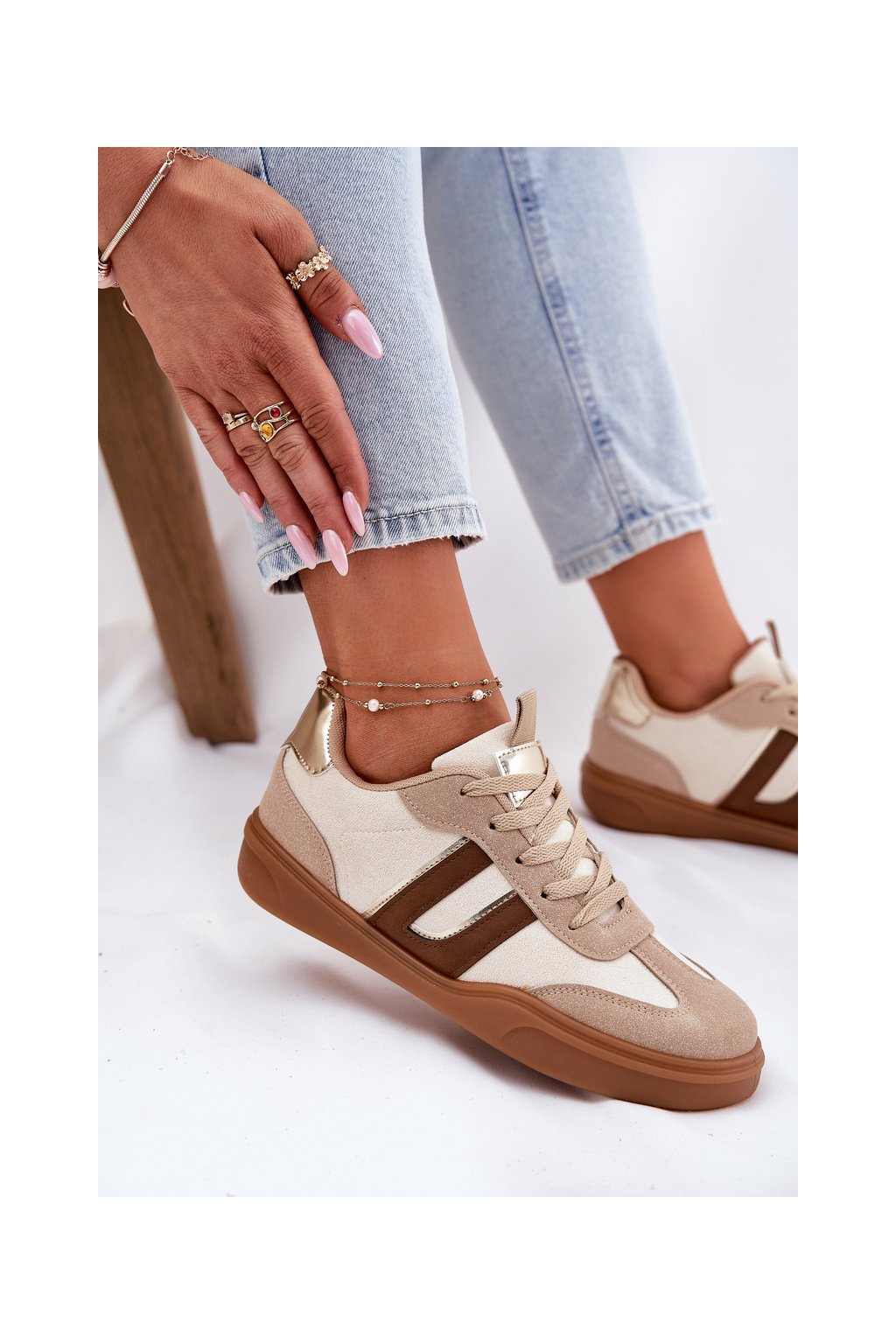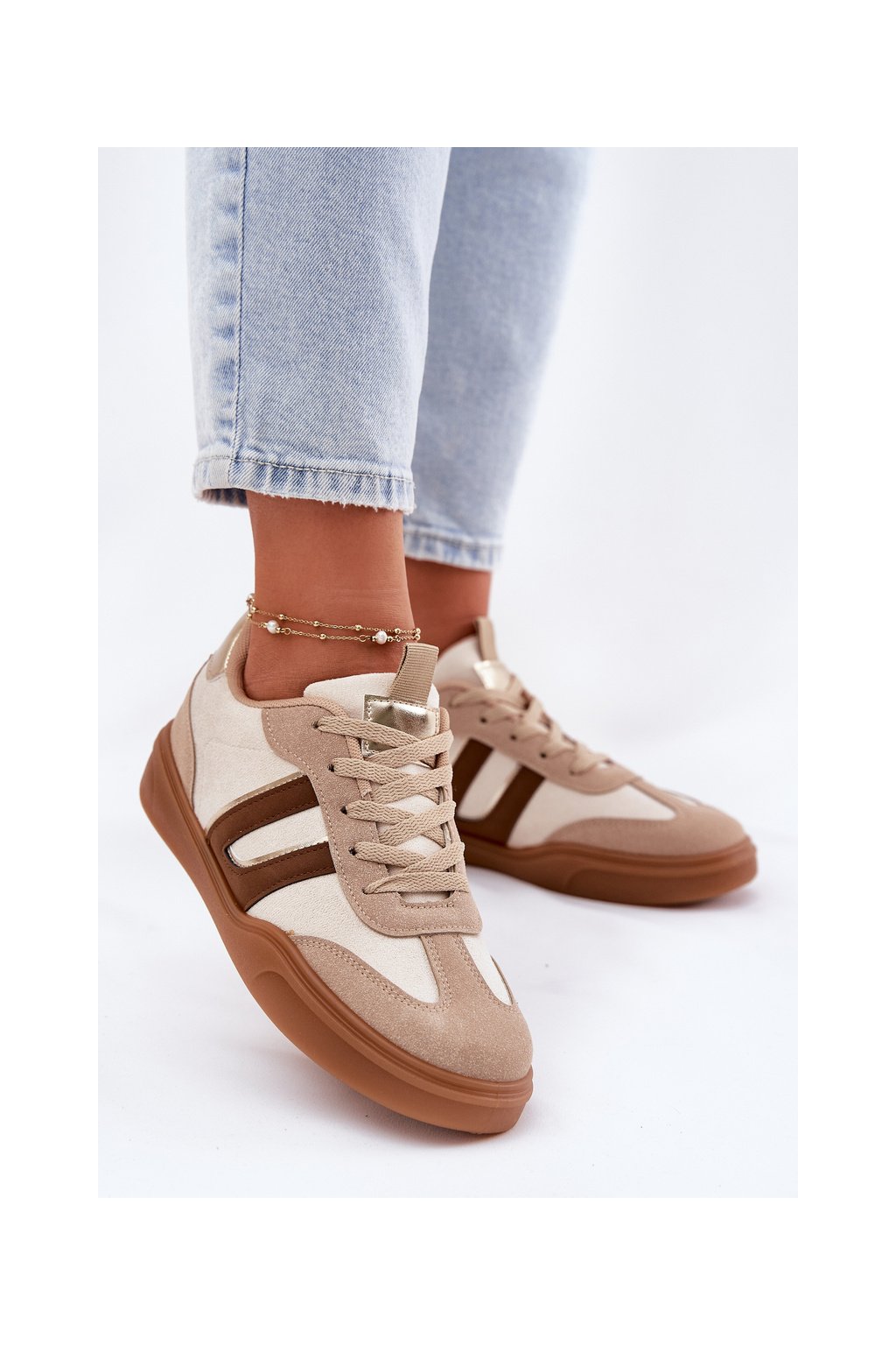 Béžové dámske tenisky z eko semišu na rovnej podrážke, kód produktu 1W-N16 BEIGE