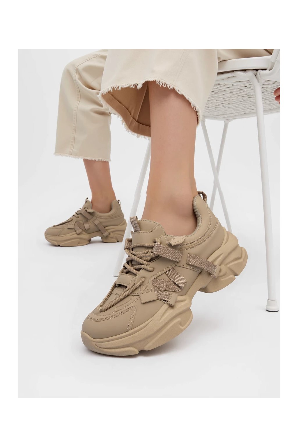 Dámske khaki mokasíny zošitvané z ekologickej kože a textilu, streetwear, kód BO-137