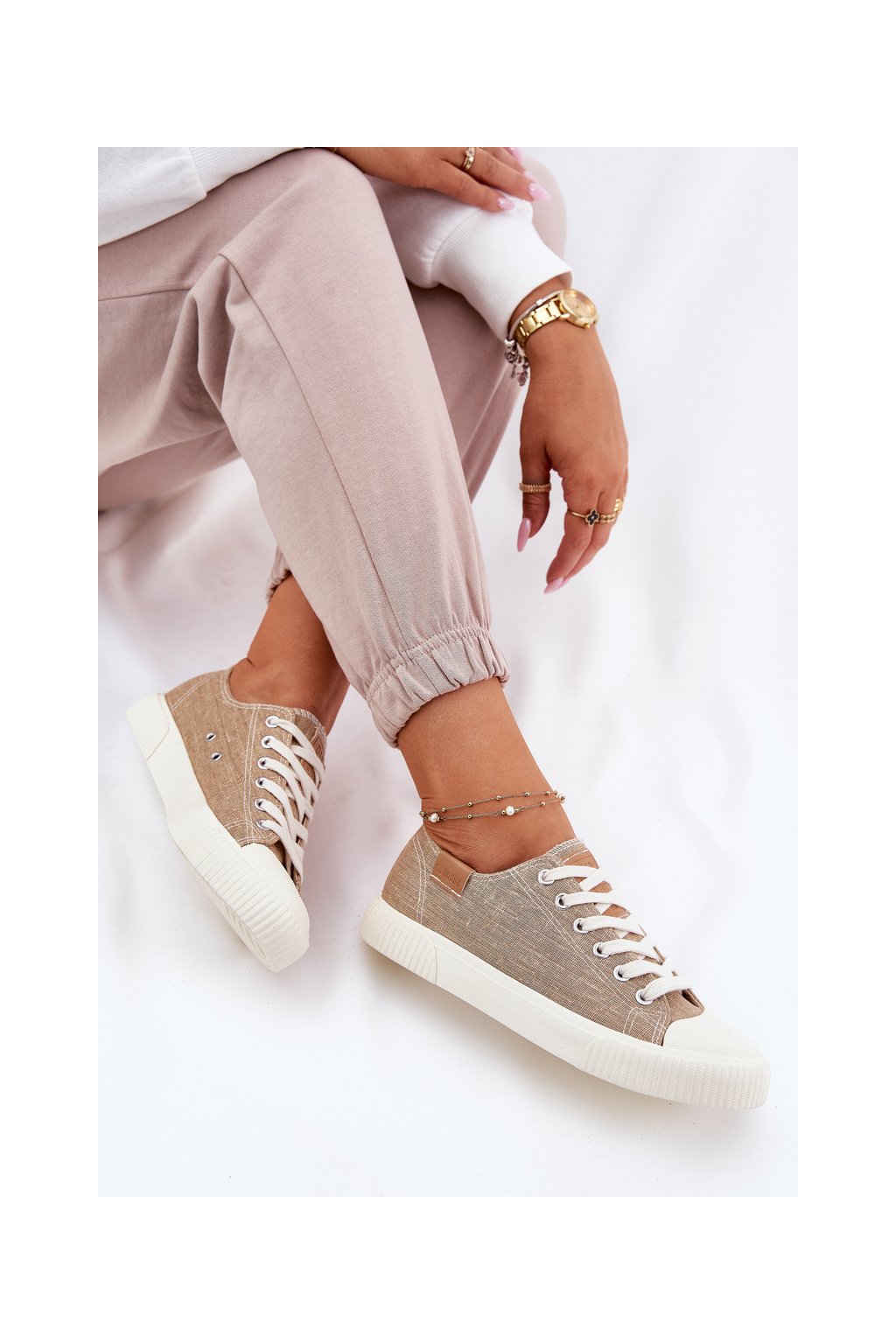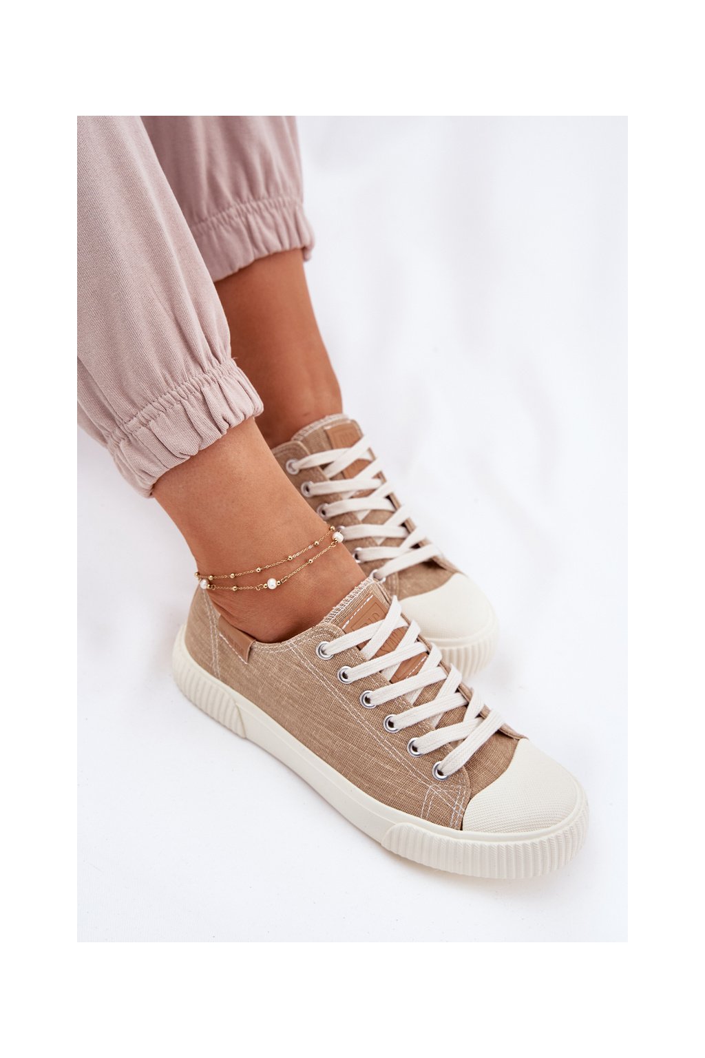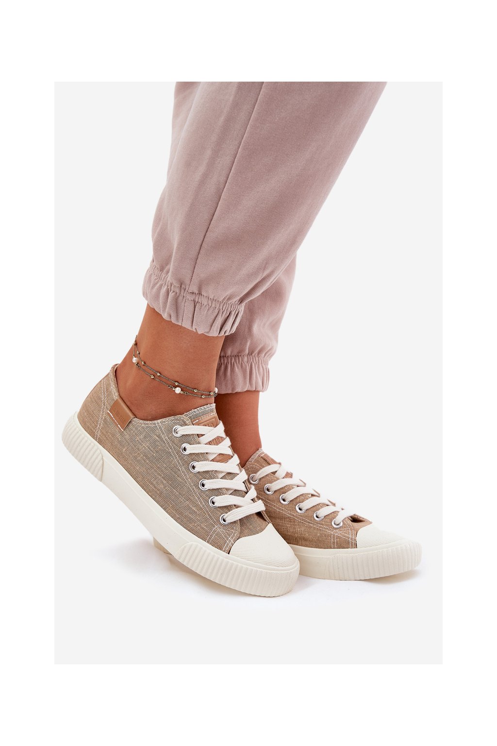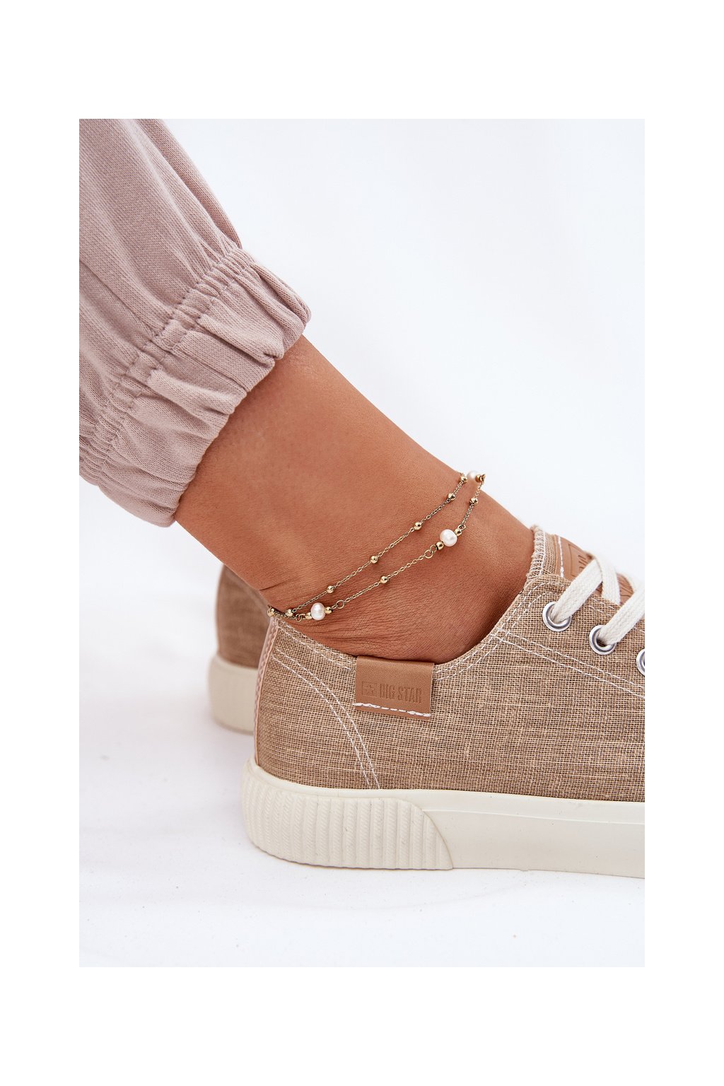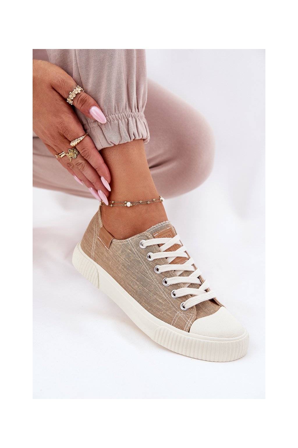 Dámske béžové tenisky Big Star RR274795 z textilného materiálu na rovnej podrážke