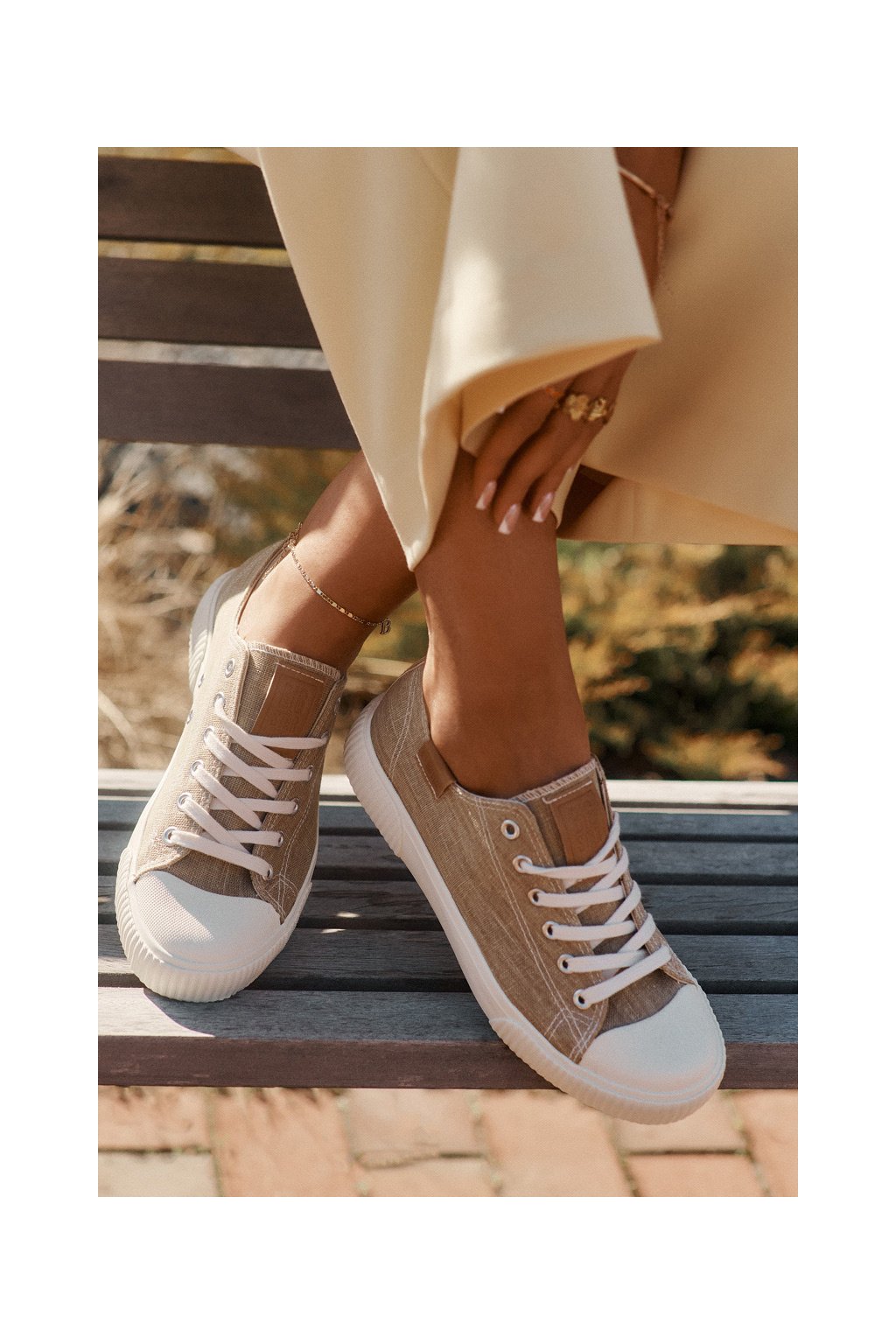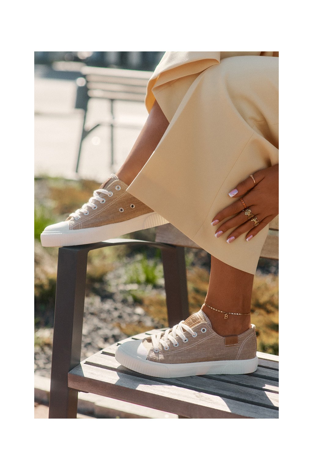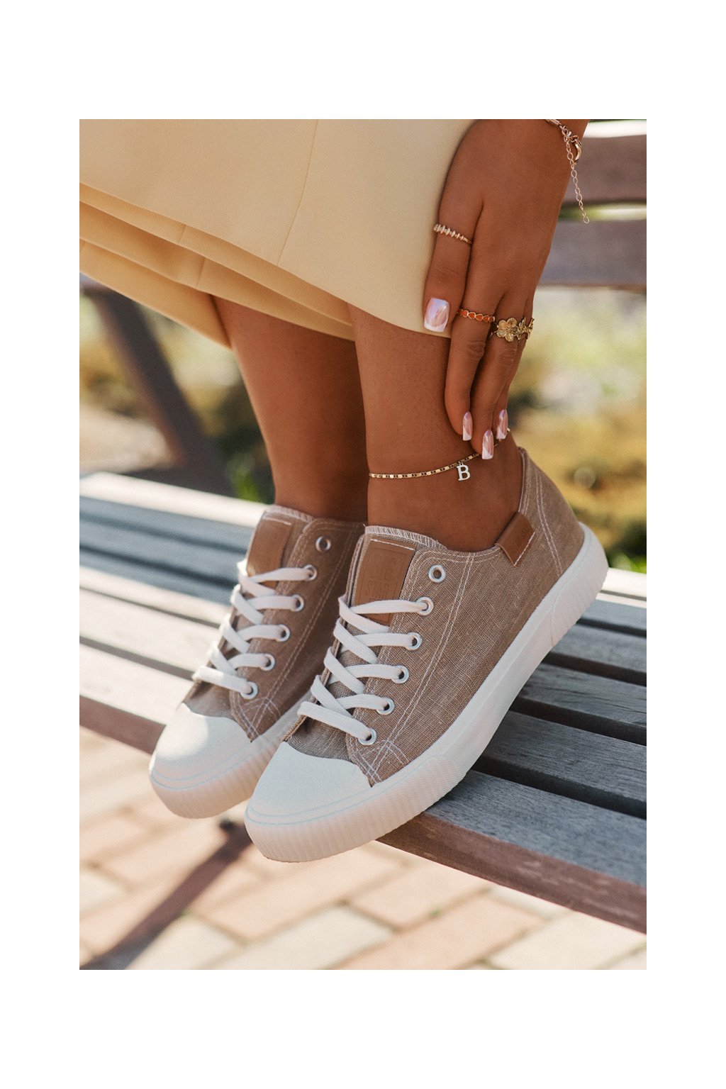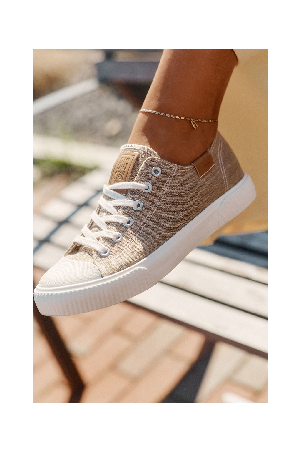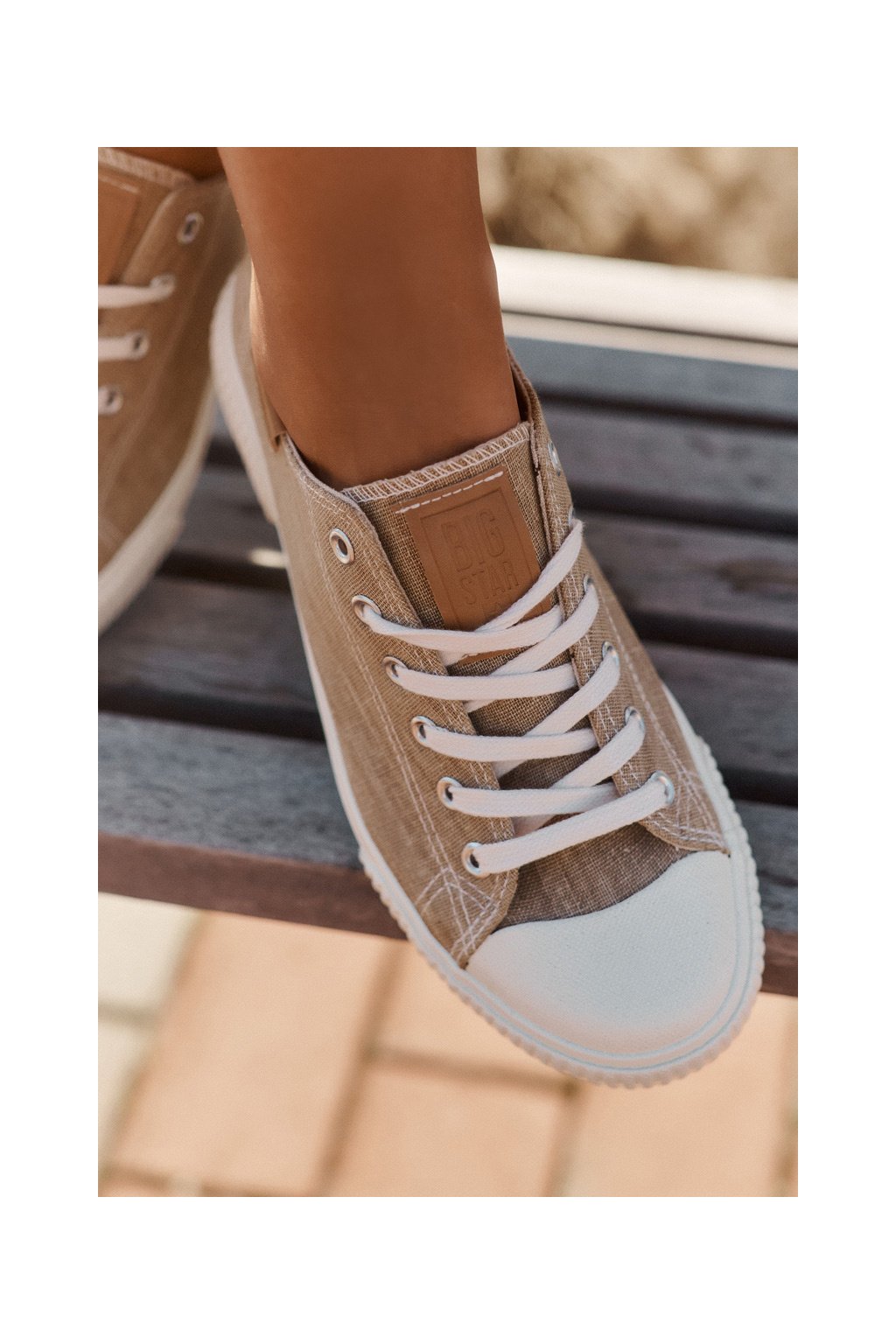 Dámske béžové tenisky Big Star RR274795 z textilného materiálu na rovnej podrážke