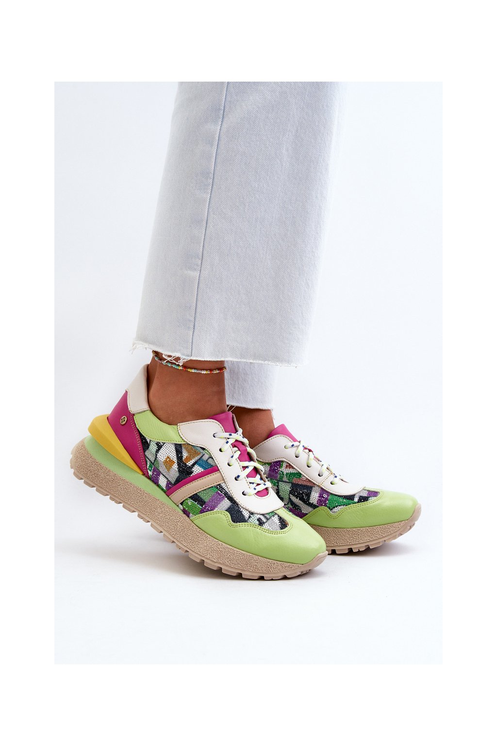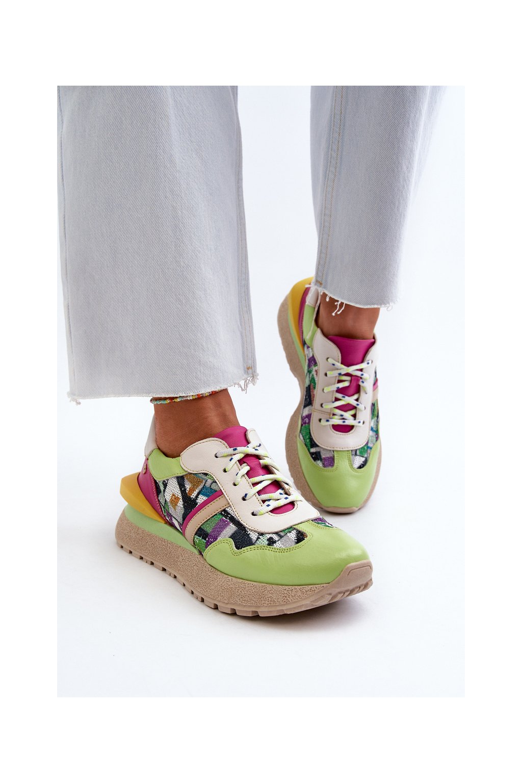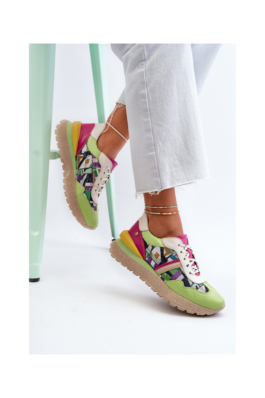 Dámské kožené tenisky na platformě Maciejka 06322-09 zeleno-růžové (Veľkosť 37)