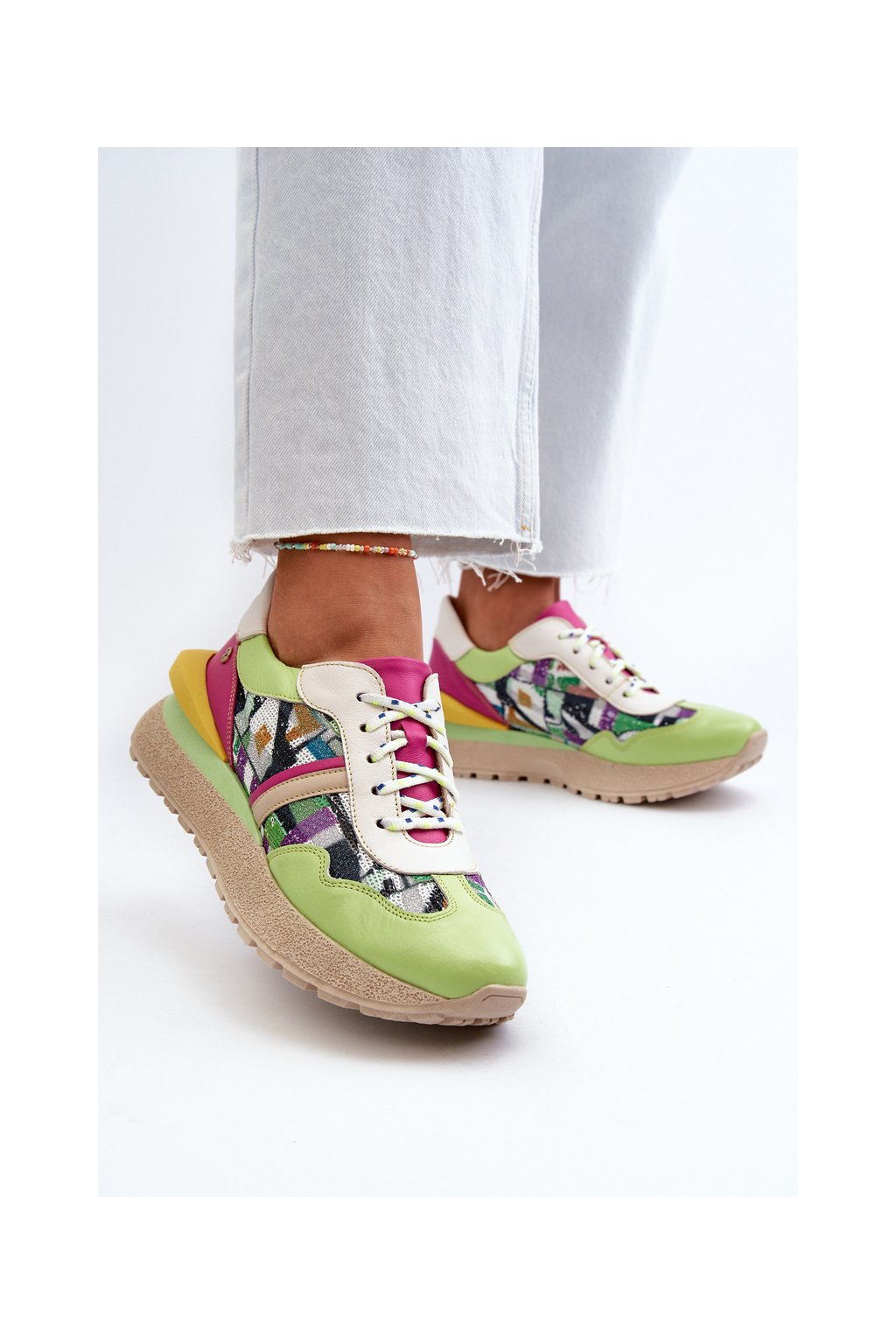Dámske zelené kožené tenisky na platforme, kód produktu 06322-09/00-1 ZIEL+RÓŻ