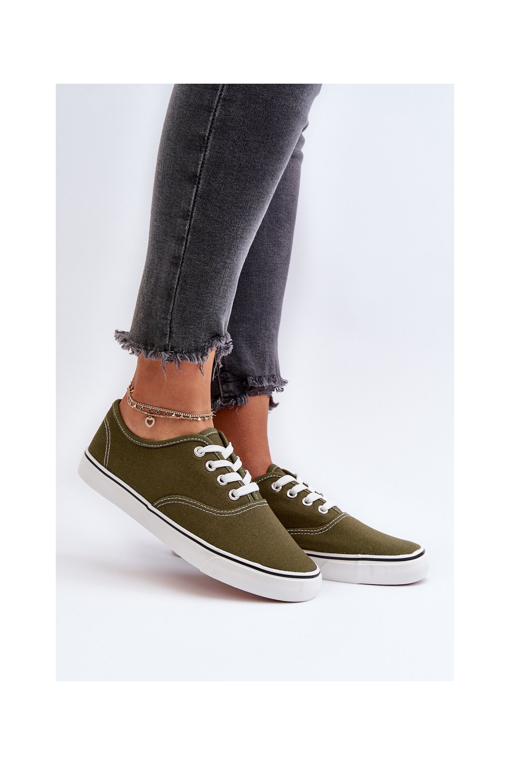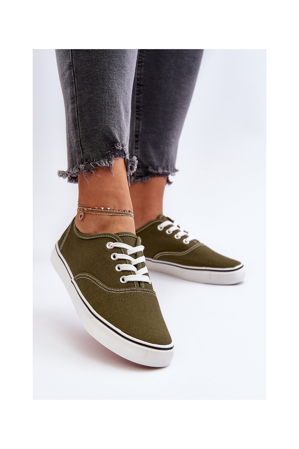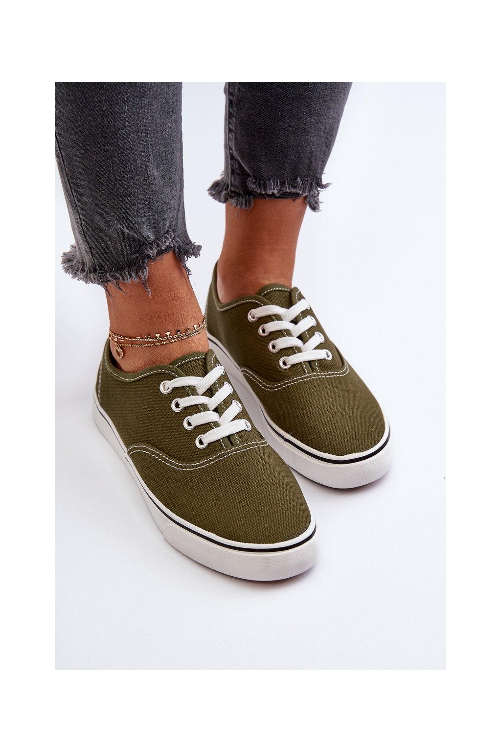 Dámske zelené textilné tenisky na rovnej podrážke B-808 ARMY