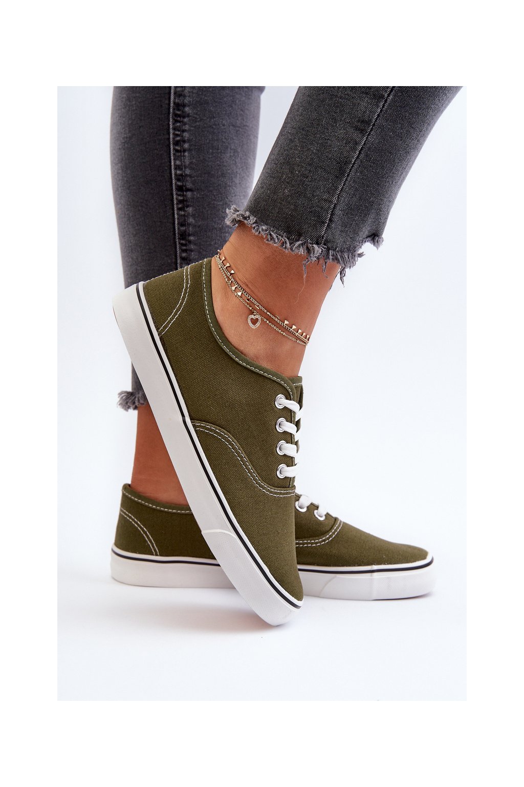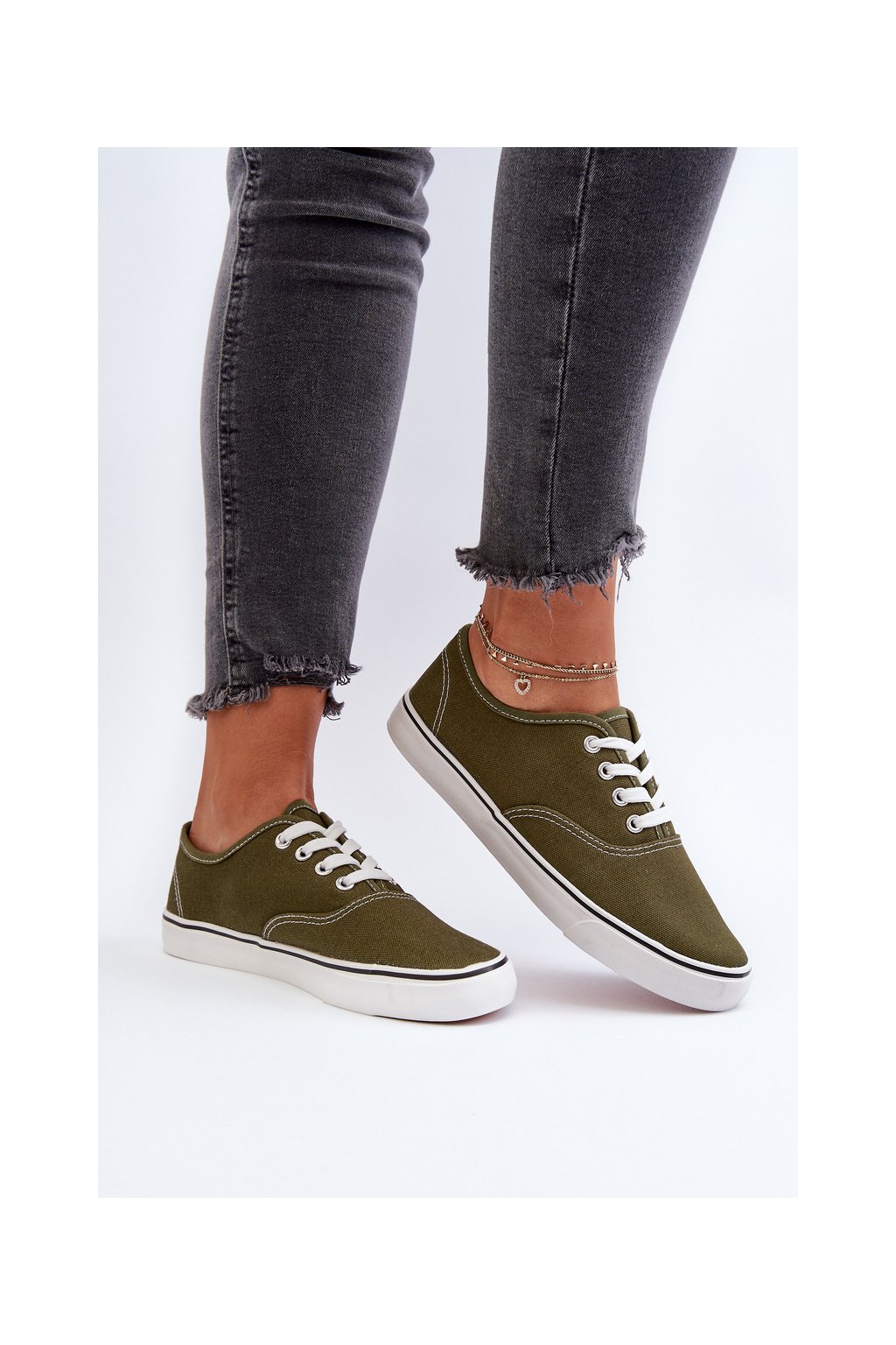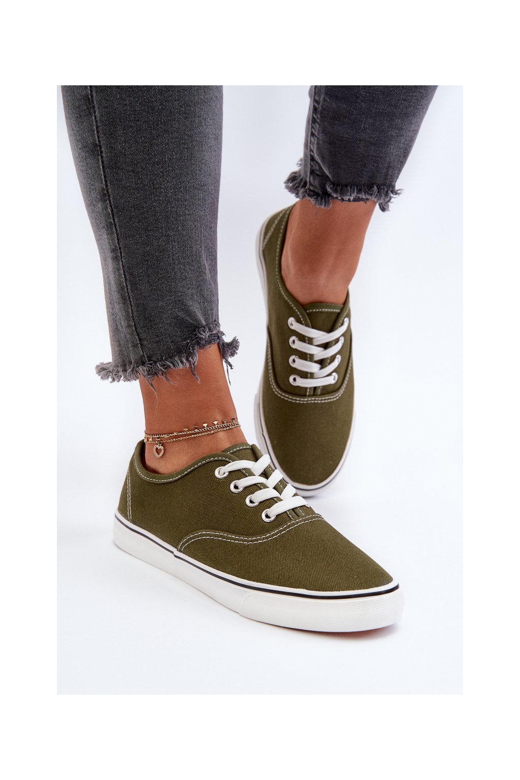 Dámske zelené textilné tenisky na rovnej podrážke B-808 ARMY