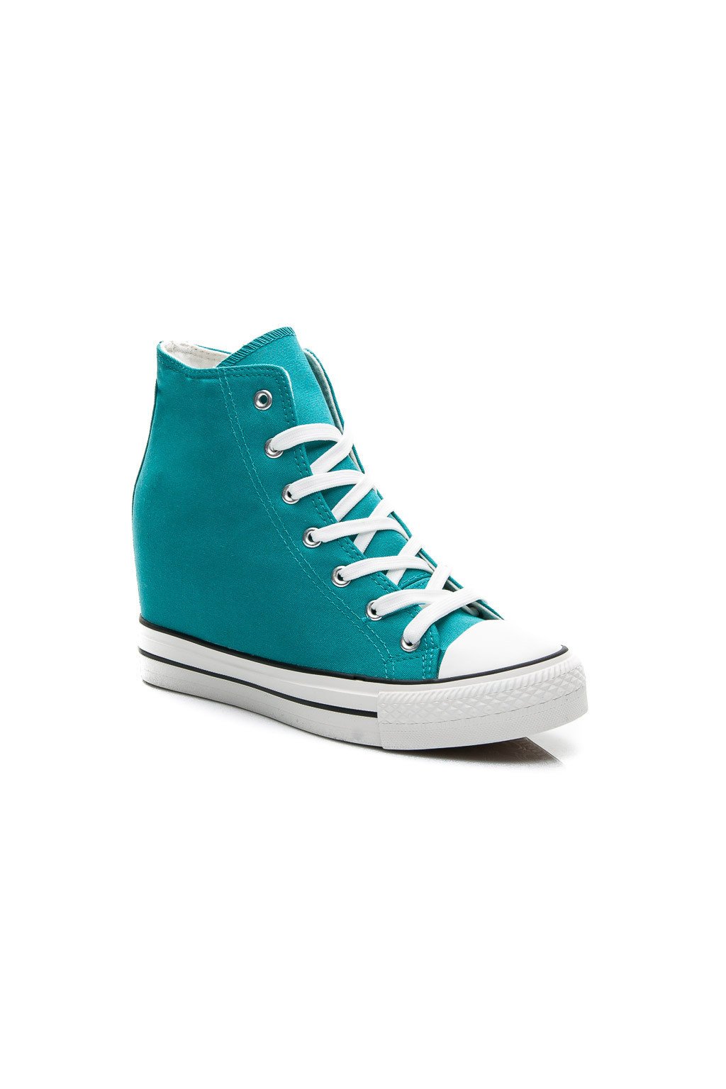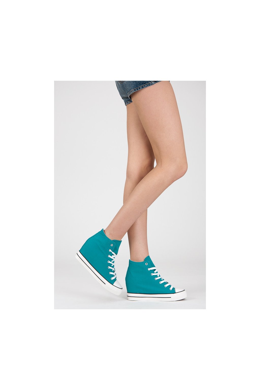 Modré dámske platformové tenisky s výškou opätku 8,5 cm, kód produktu PA15223GR / D3-L44