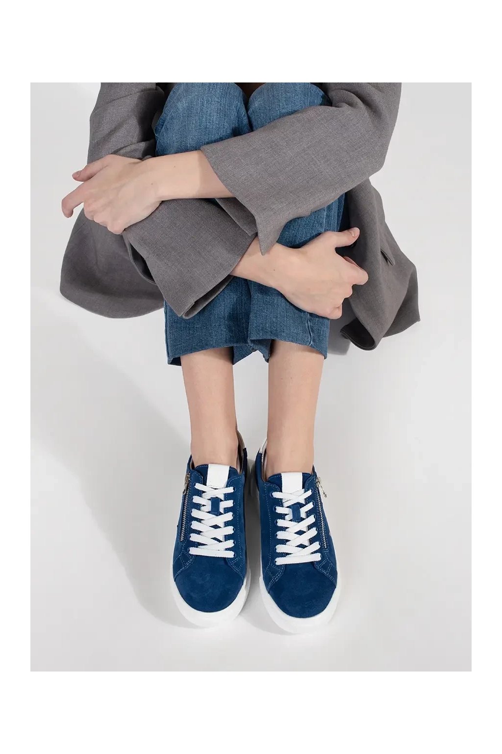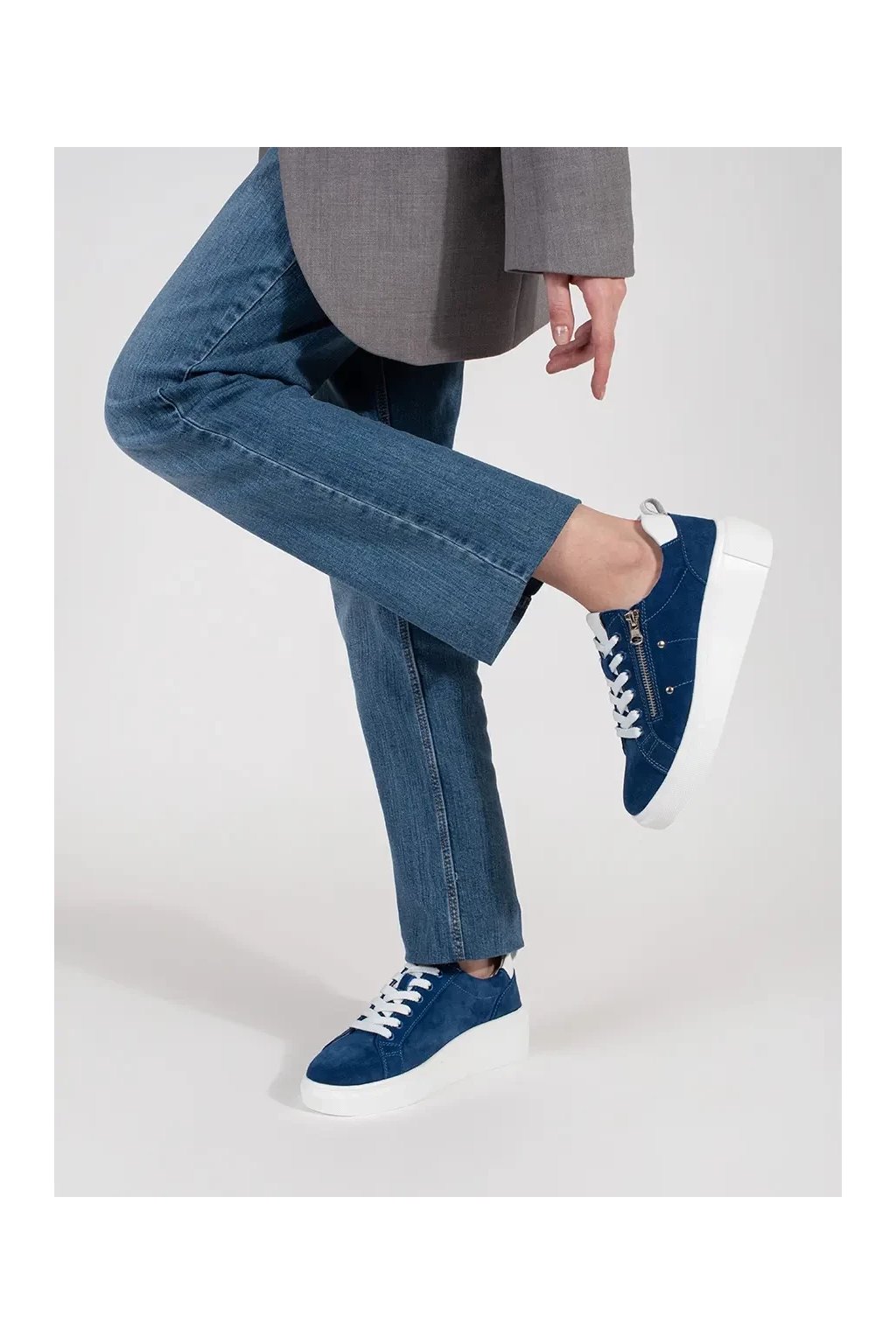 Naše modré sneakersy na platformě jsou vytvořeny pro moderní ženy, které si cení jak stylového vzhledu, tak pohodlí. Jsou vyrobeny z 100% přírodního semišu, což zaručuje dlouhou životnost a vysoký komfort při nošení. Modrá barva jim dodává moderní a svěží vzhled, který se snadno kombinuje s různými styly oblečení.