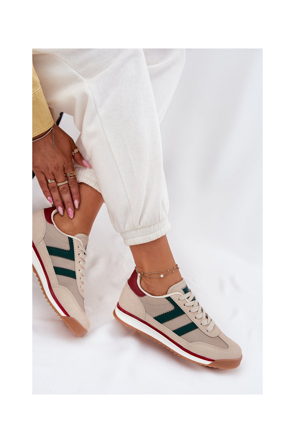 Hnedé dámske tenisky na rovnej podrážke s rovnou pätou, textilné, kód produktu C3083 KHAKI