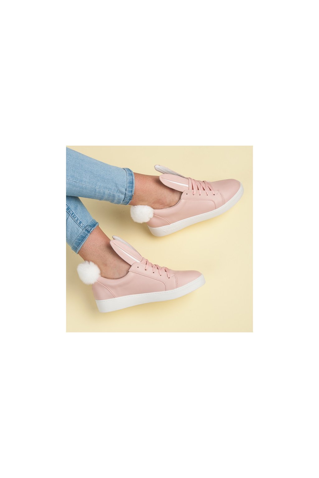 Ružové dámske tenisky s ušami a brnkolcom, kód produktu NJSK 7117-20P