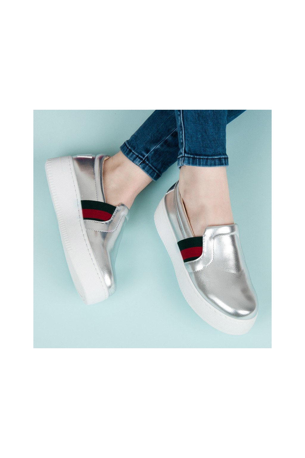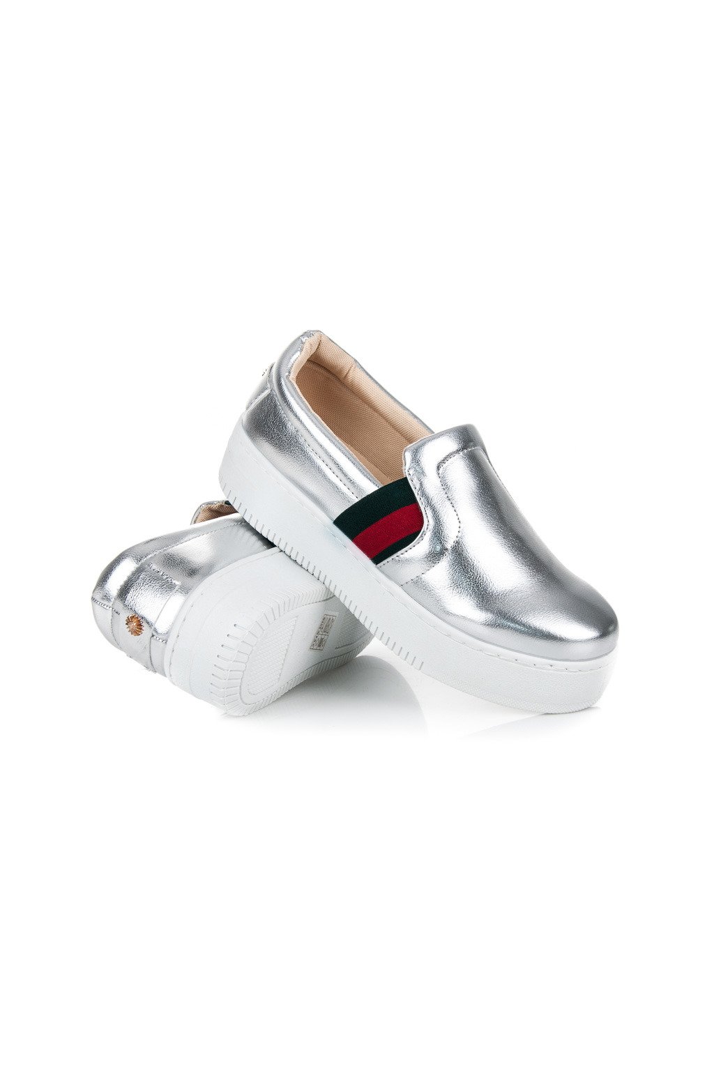 Módna obuv, Slip On, Dámske tenisky, Strieborné tenisky |