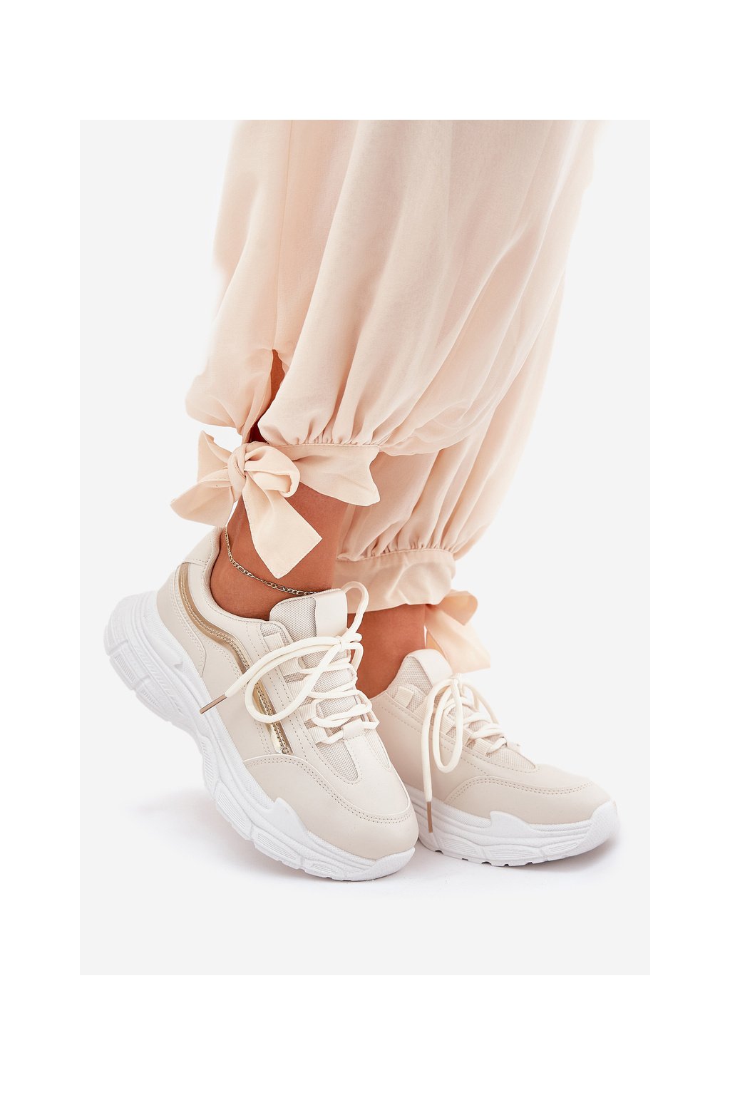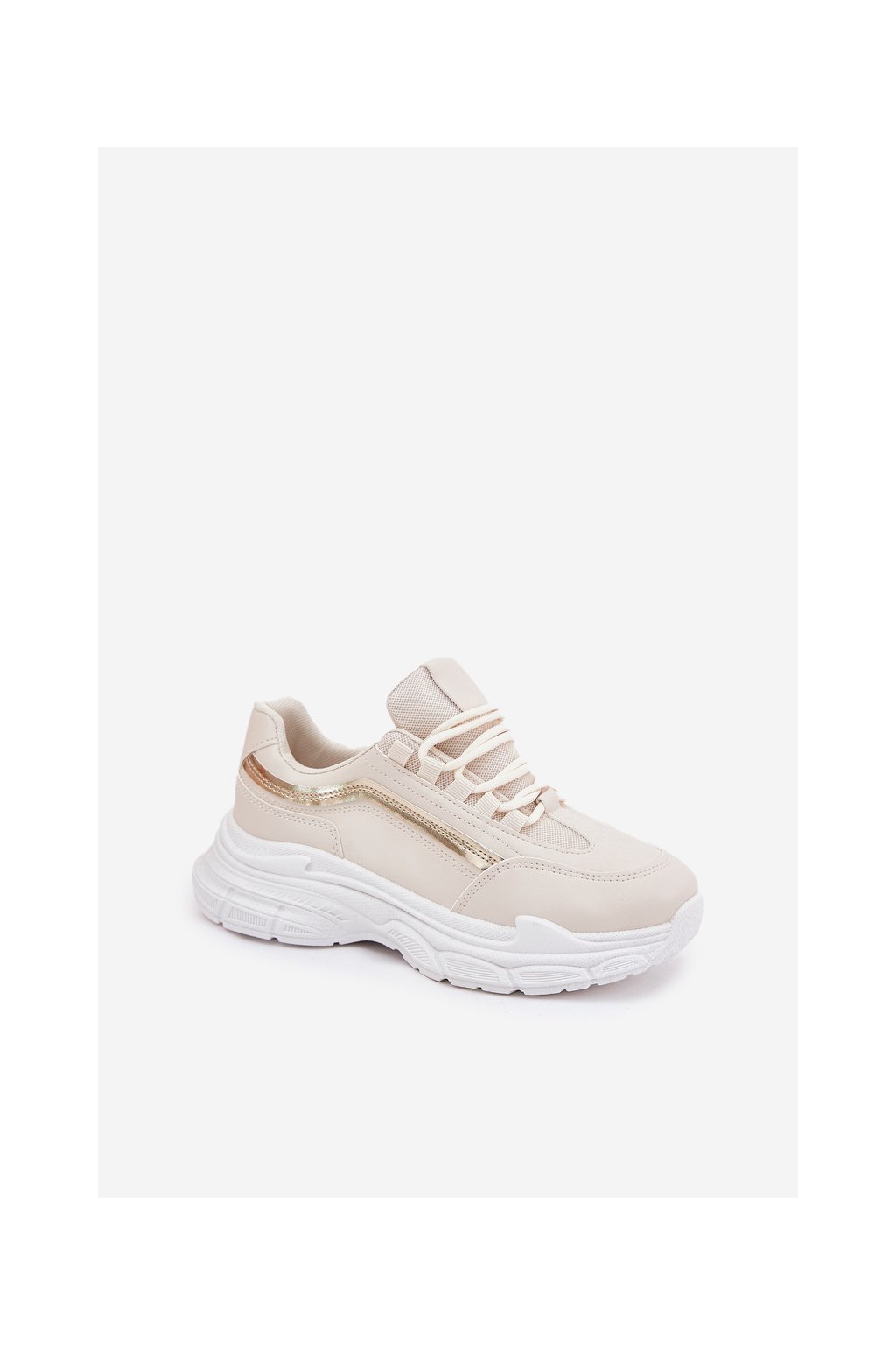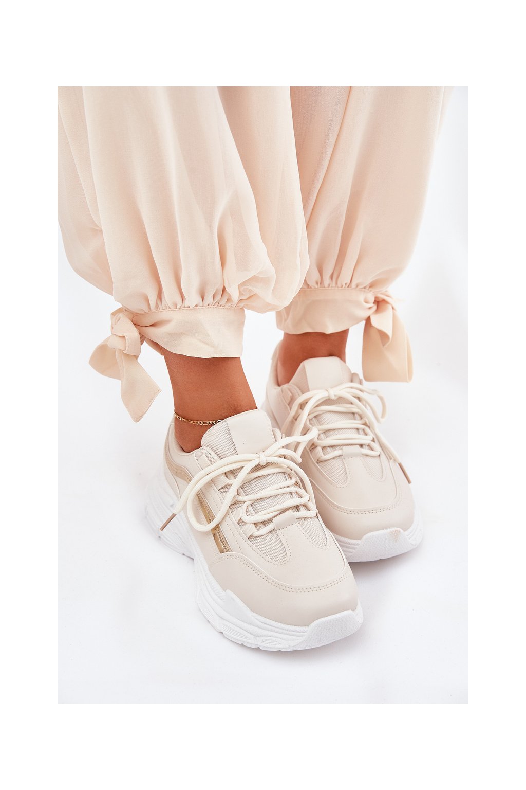 Dámske béžové tenisky z eko kože na rovnej podrážke, kód produktu 9113 BEIGE