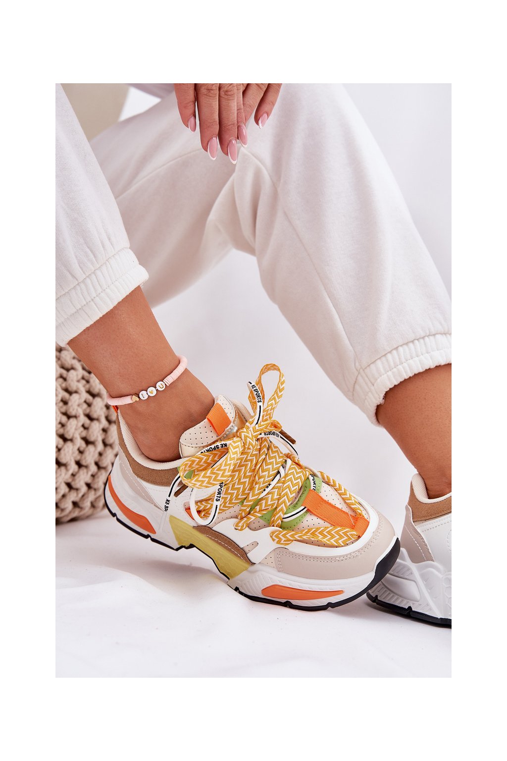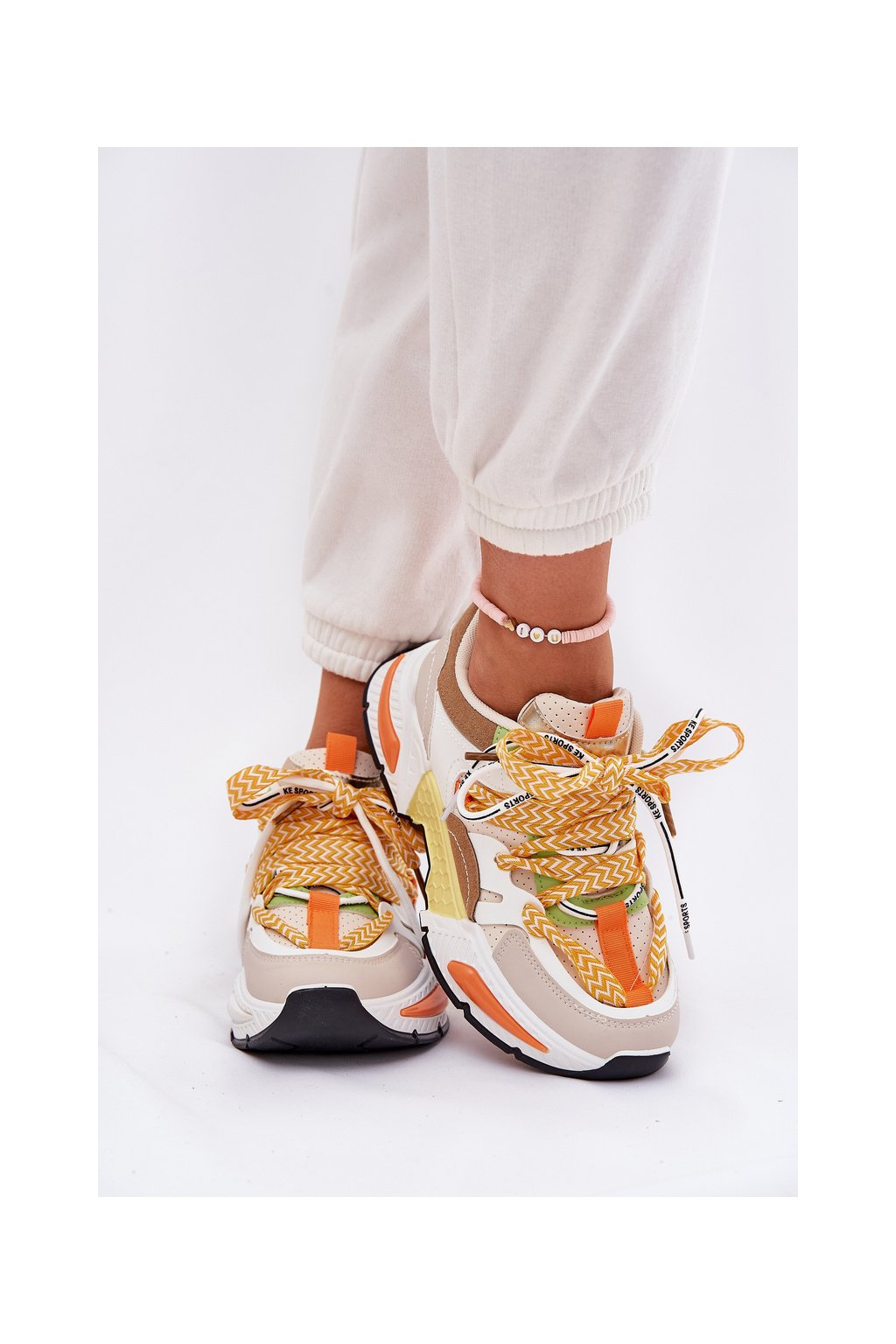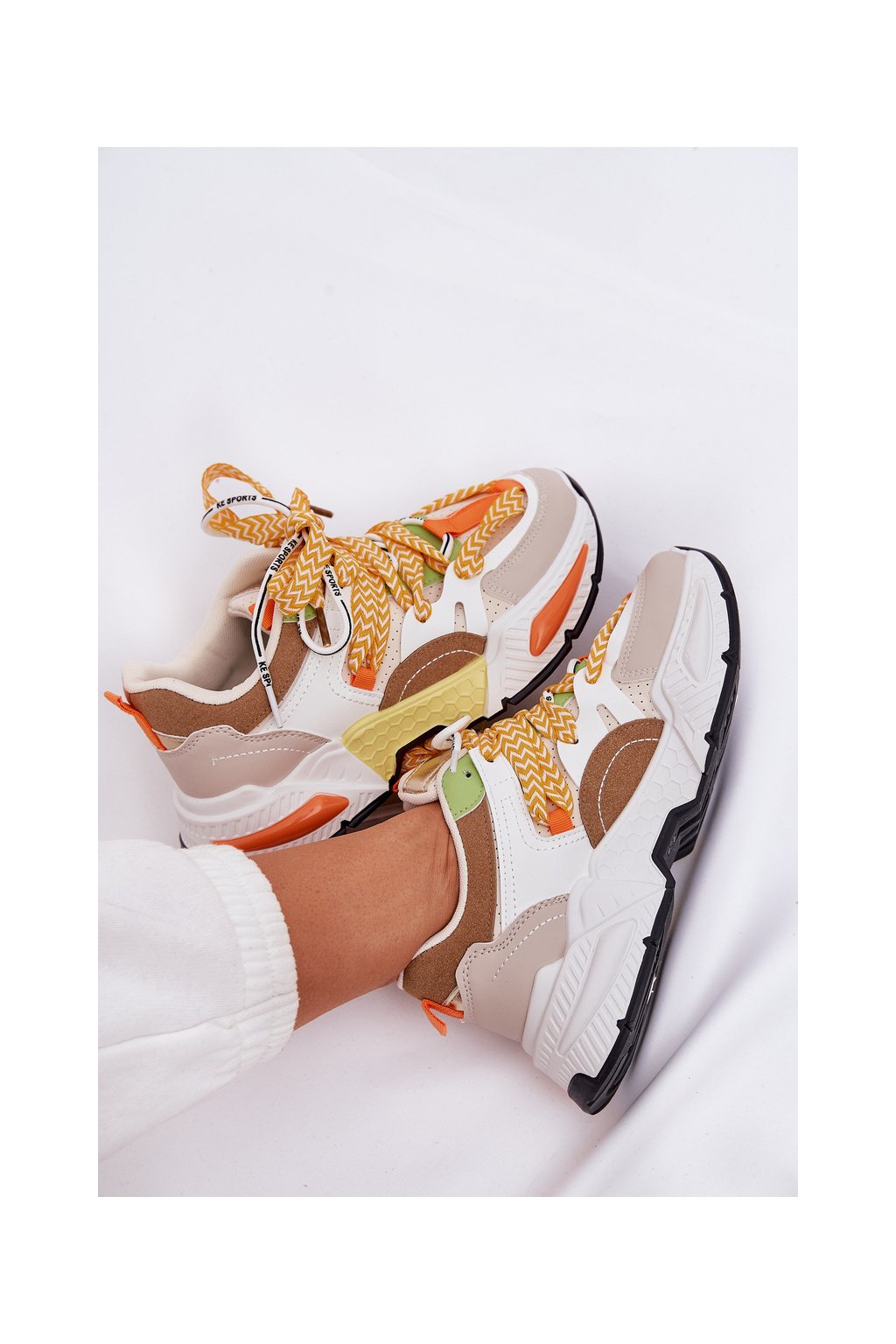 Dámske viacfarebné tenisky z eko kože s dvojitým šnurovaním, kód 21-Q111 BEIGE