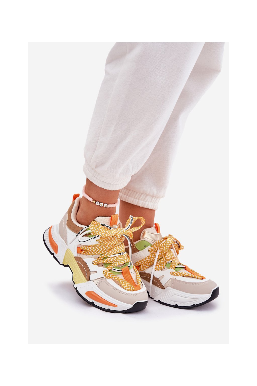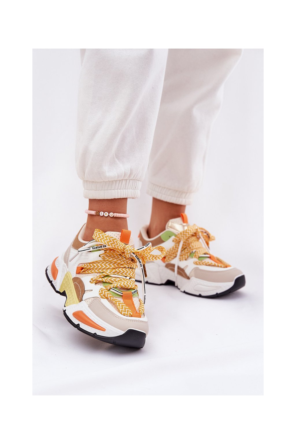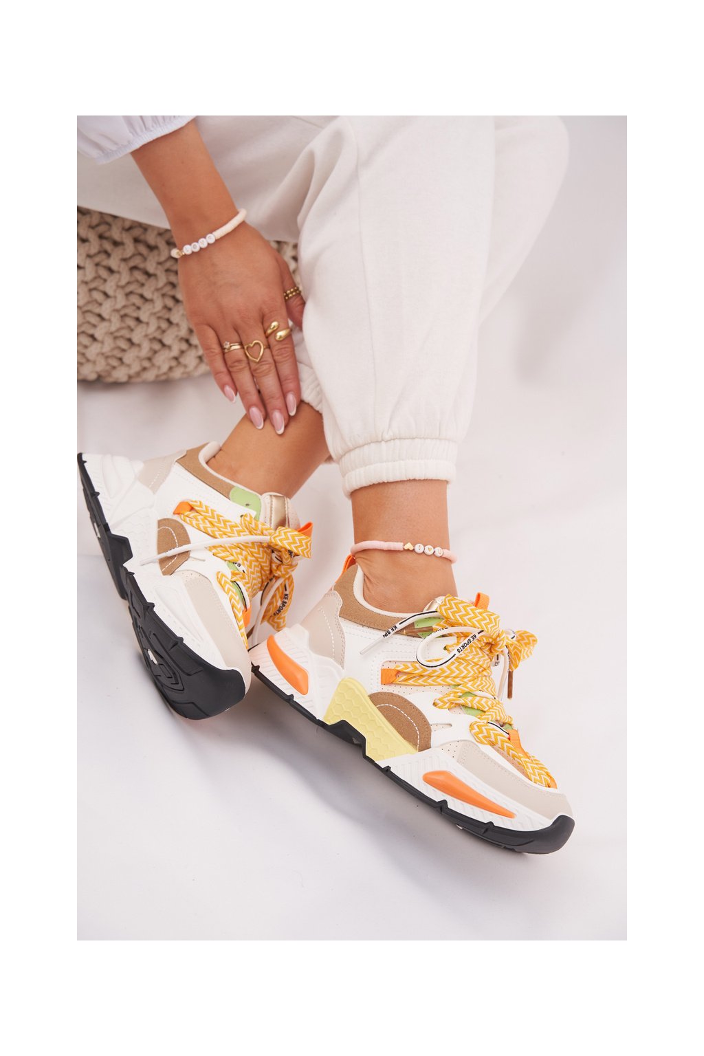 Dámske viacfarebné tenisky z eko kože s dvojitým šnurovaním, kód 21-Q111 BEIGE