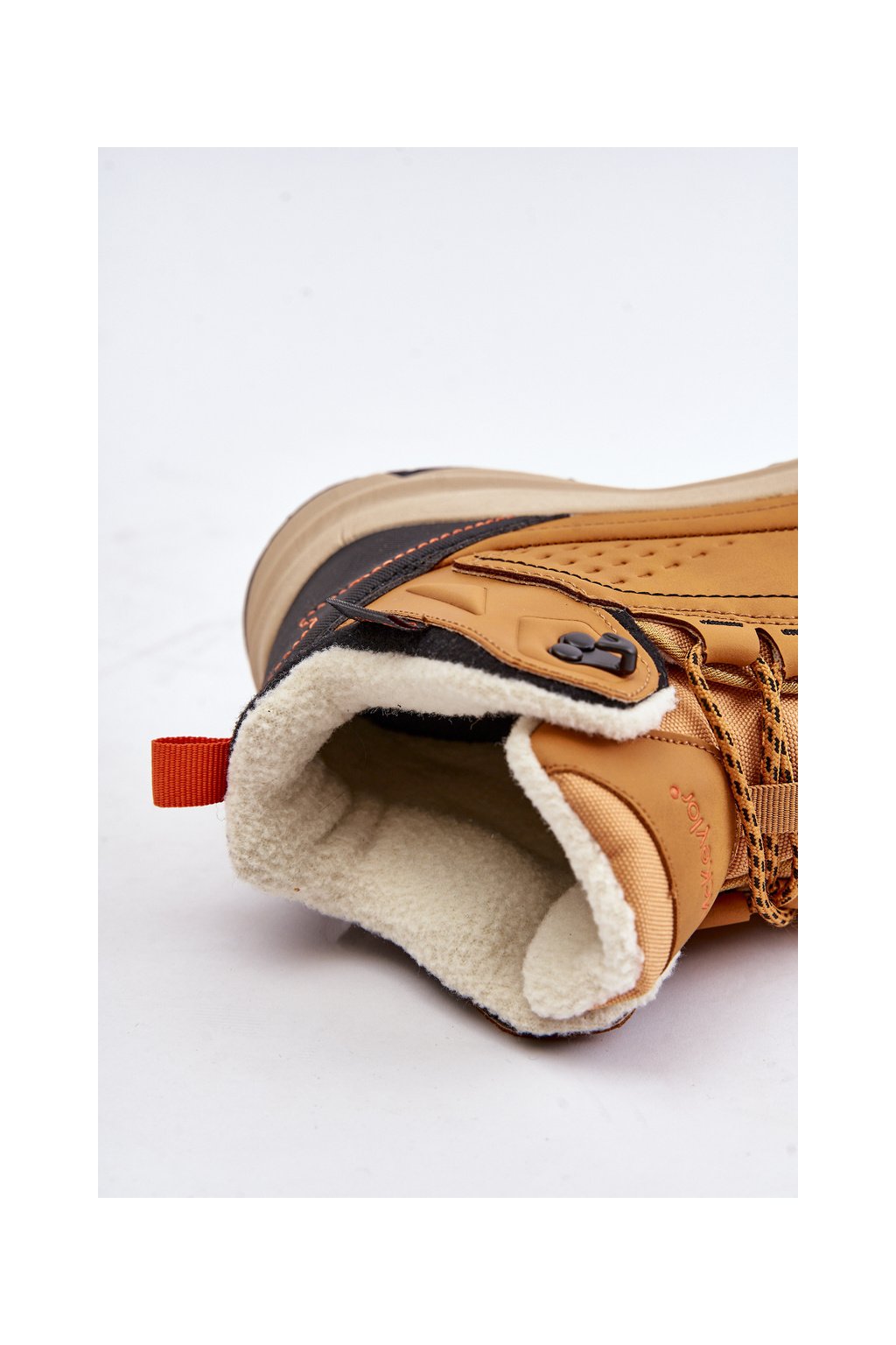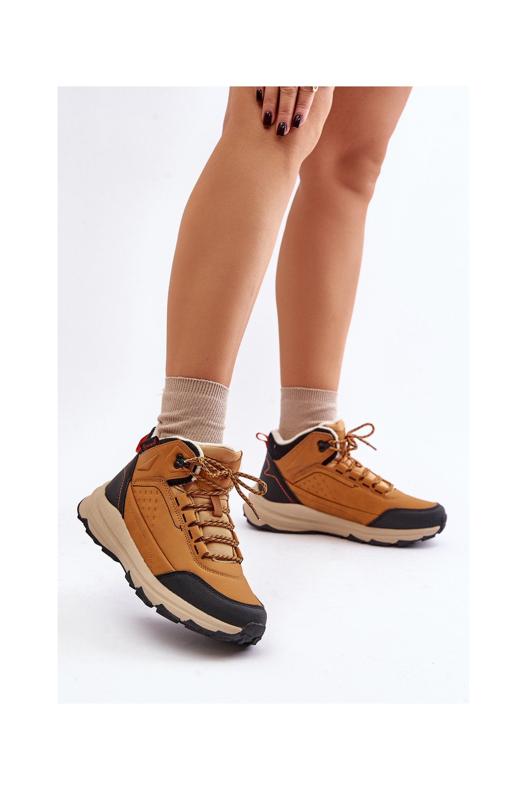 Hnedé dámske trekové topánky z eko kože s rovnou podrážkou, kód produktu 14011 ŻÓŁTY