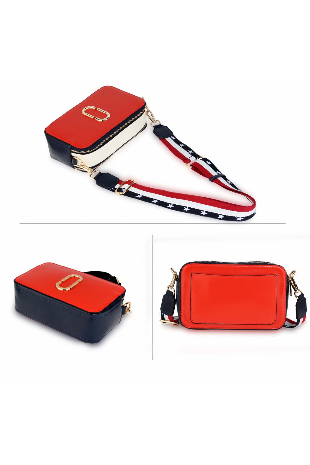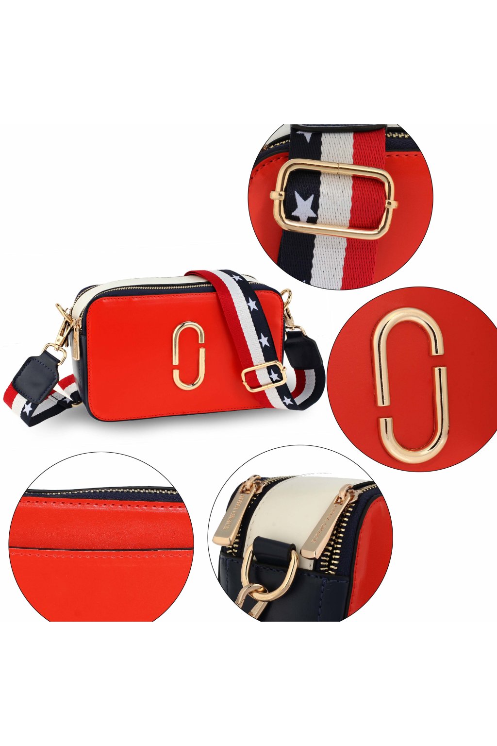 Červená dámska crossbody kabelka z eko kože Alex AG00726 s prídavným ramienkom a zlatým logom.