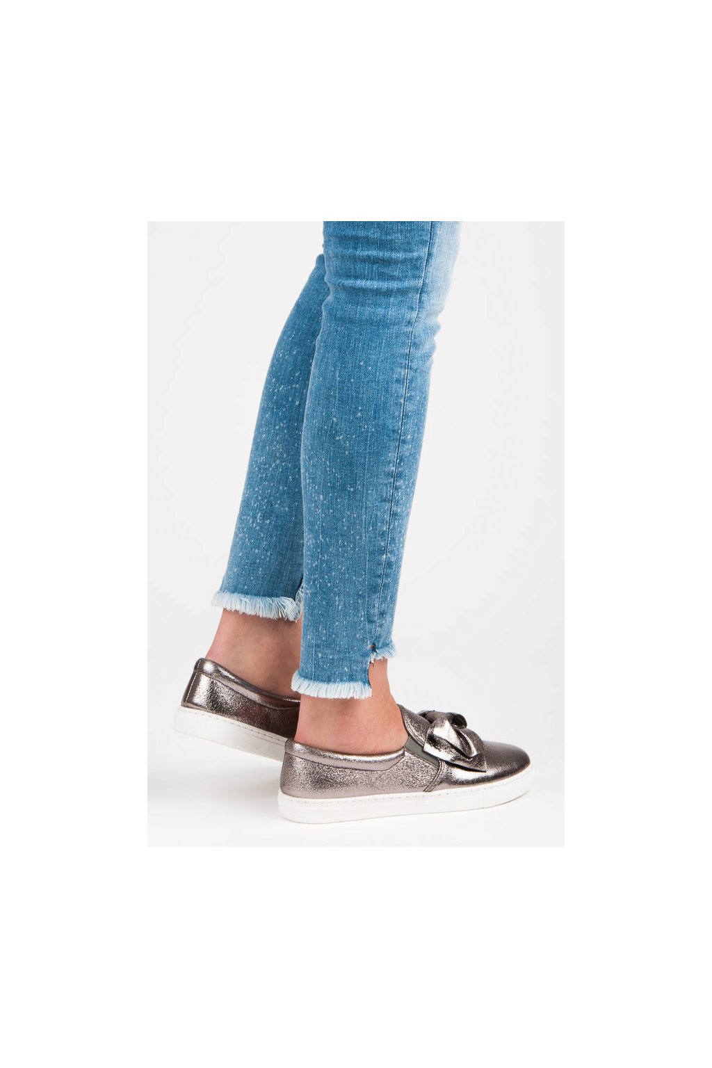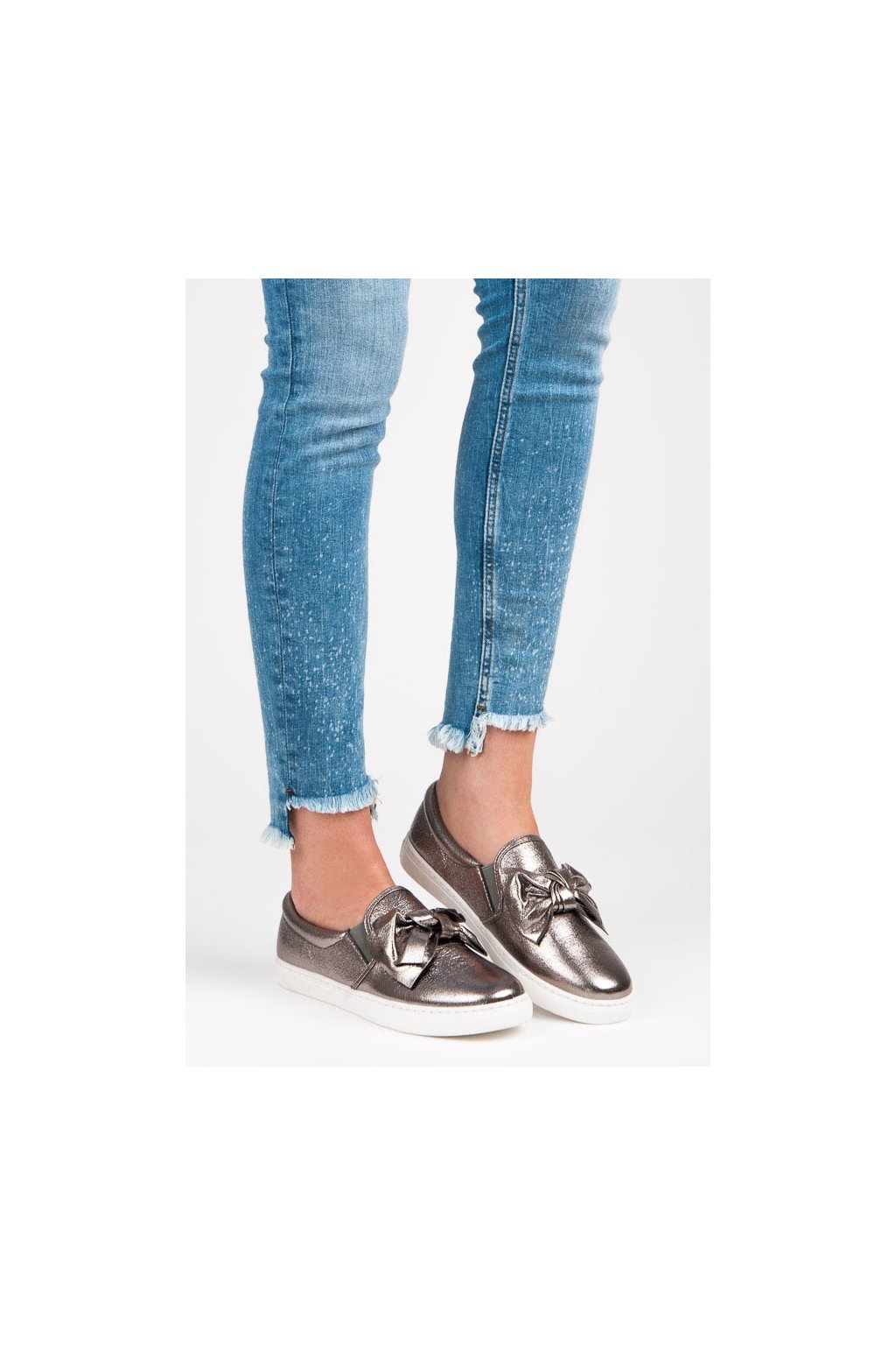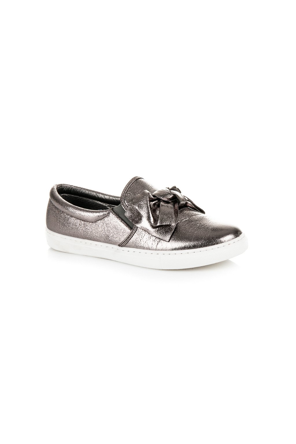 Dámske šľapky s gumičkou a mašľou na plochej podrážke, kód produktu 100-715PE