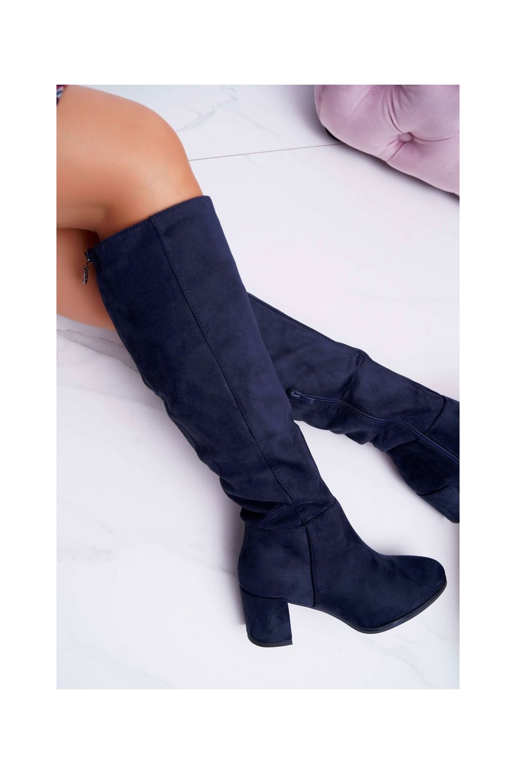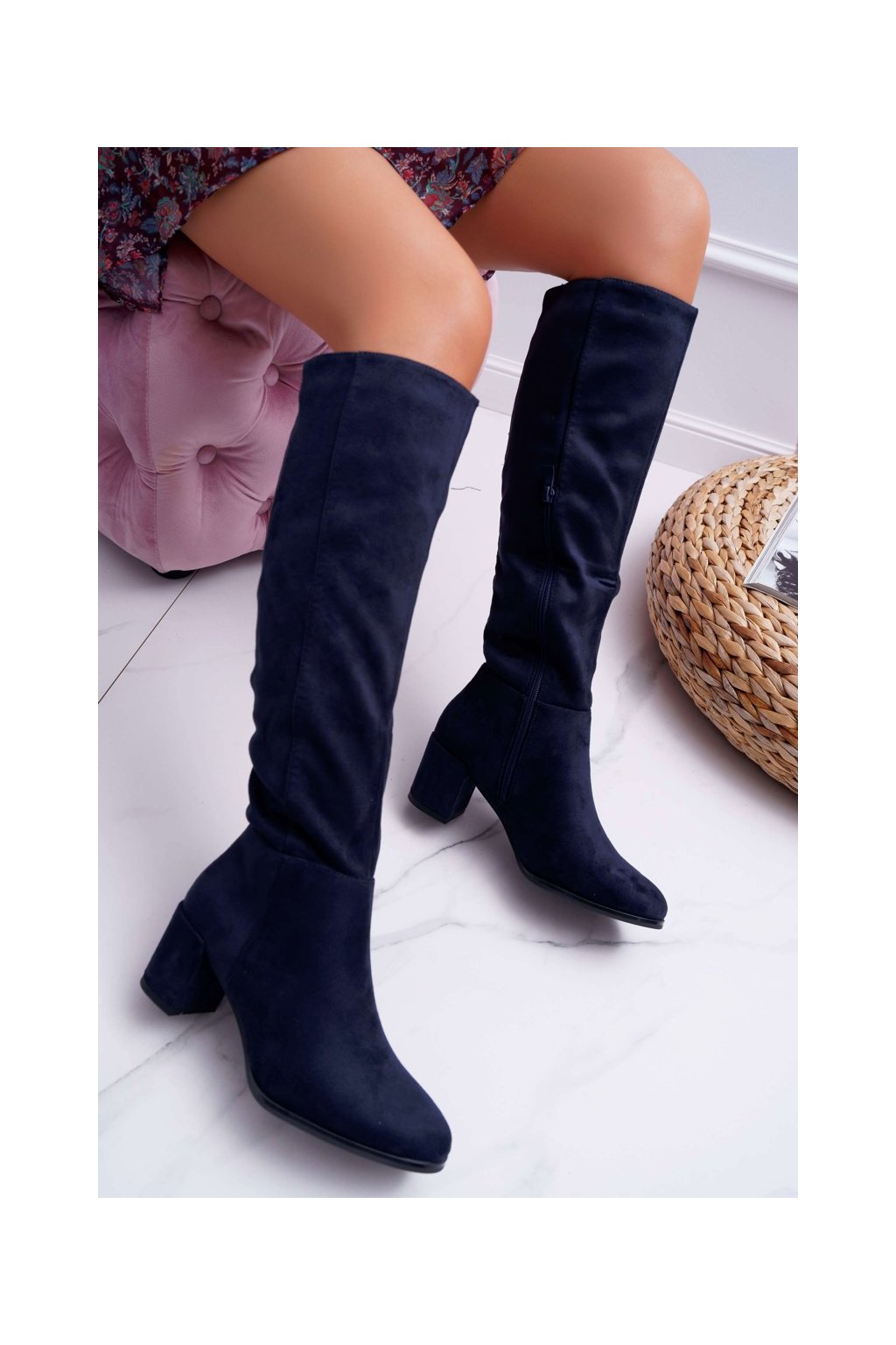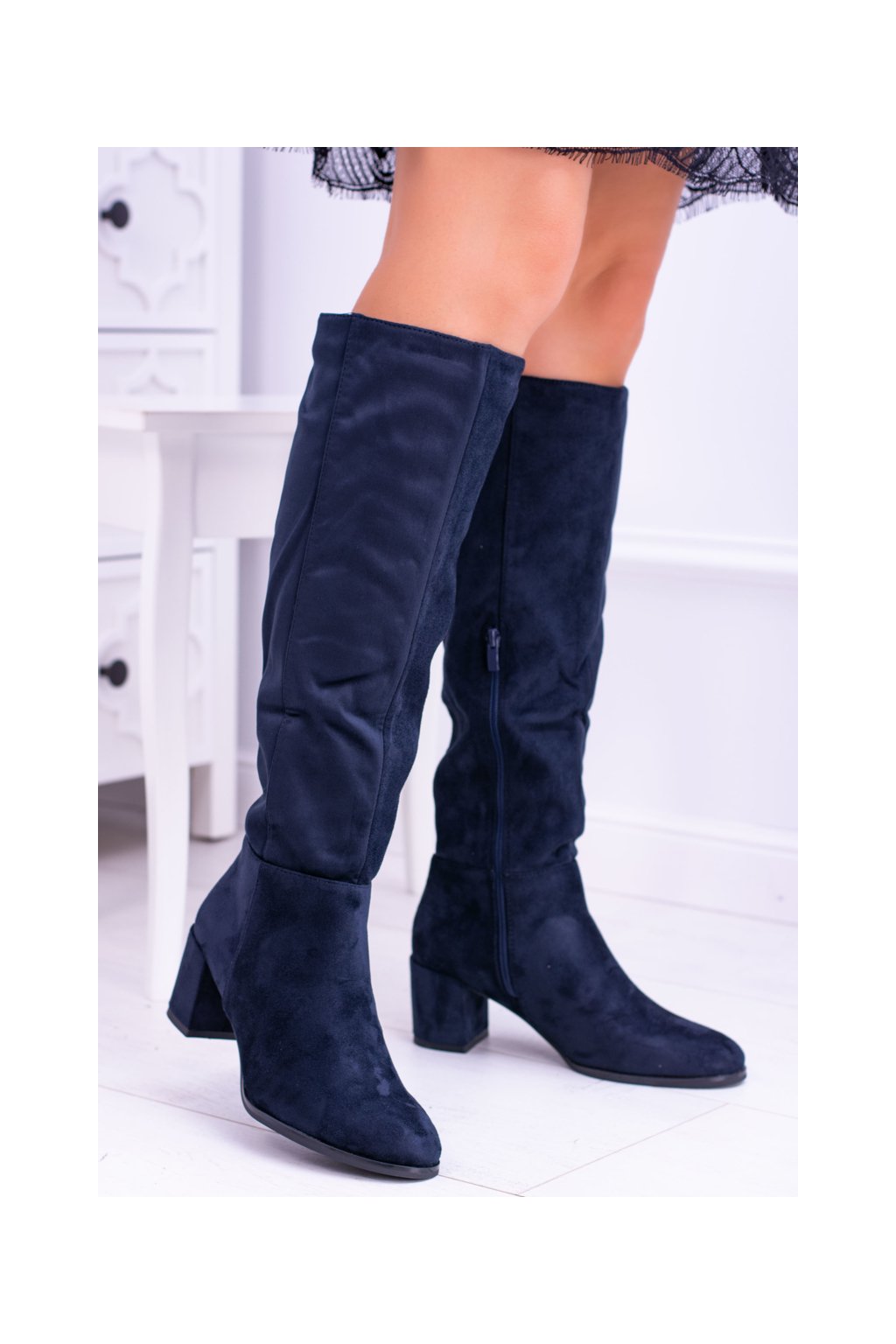 Tmavomodré dámske semišové členkové topánky na stĺpikovej podpätke Sergio Leone KZ273 - GRANAT
